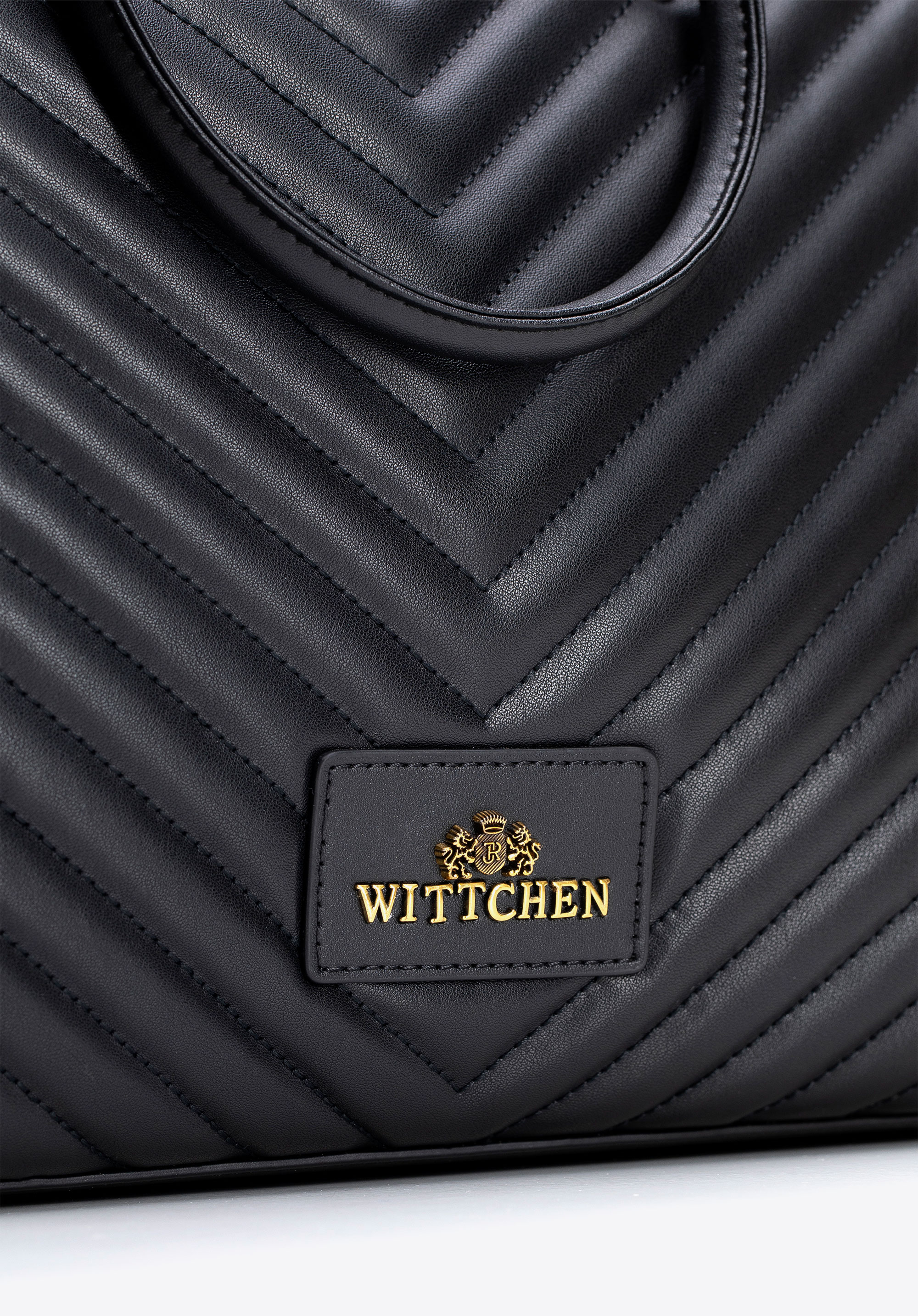 - Logo i detale: Subtelne logo producenta na przodzie i suwakach oraz dekoracyjne przeszycia podkreślają wysoką jakość i dopracowany charakter shopperki.