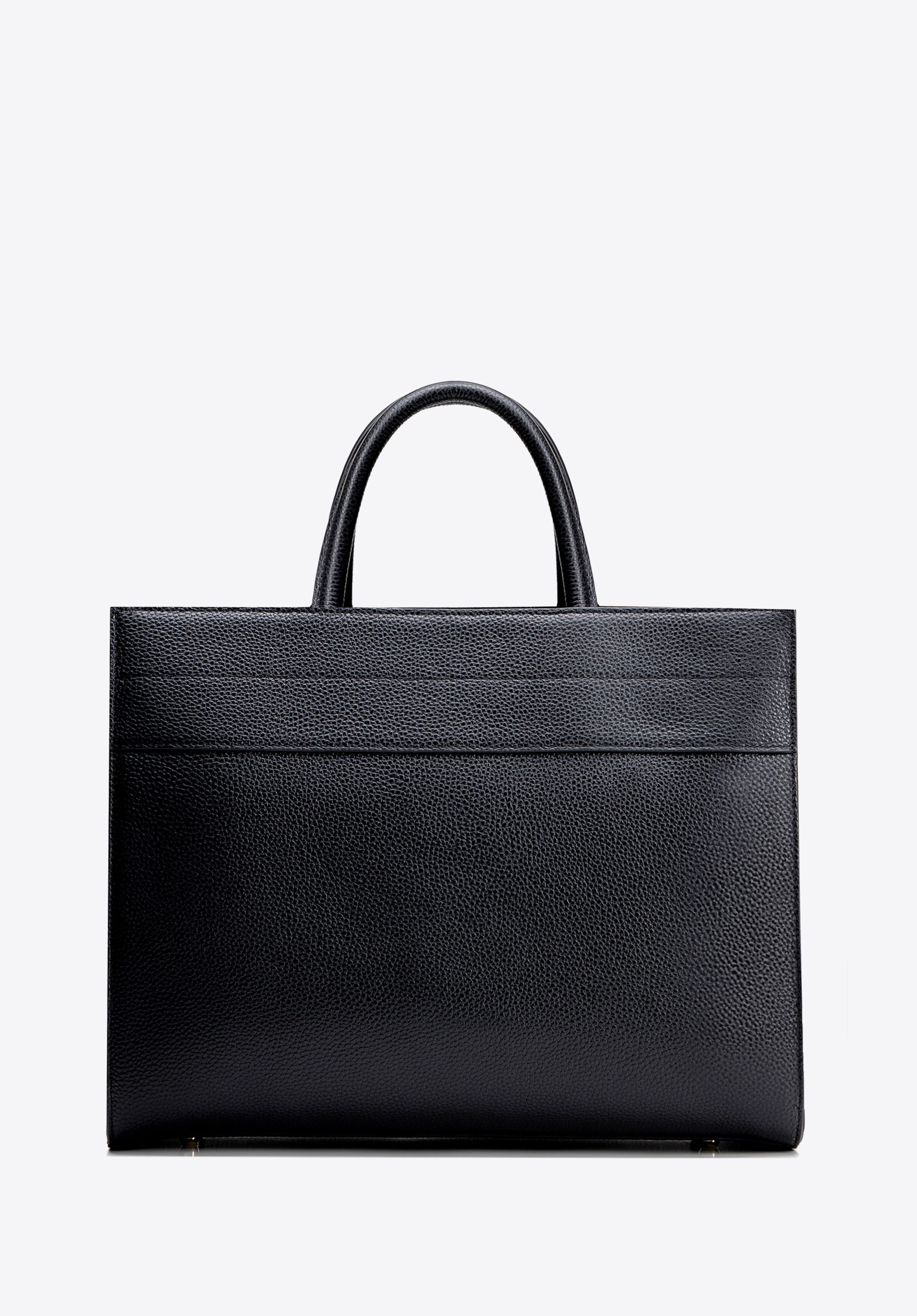 Stylowa i funkcjonalna shopperka wykonana ze skóry naturalnej o eleganckiej fakturze saffiano. Zapinana na zamek, zapewnia bezpieczeństwo Twoim rzeczom, a jej przestronne wnętrze podzielone na dwie komory z dodatkową kieszenią na zamek gwarantuje wygodę organizacji. W środku znajdziesz trzy kieszenie, w tym jedną na suwak, co pozwala na uporządkowanie drobiazgów. Shopperka posiada usztywniane dno z czterema metalowymi nóżkami, dzięki czemu stabilnie stoi na każdej powierzchni.