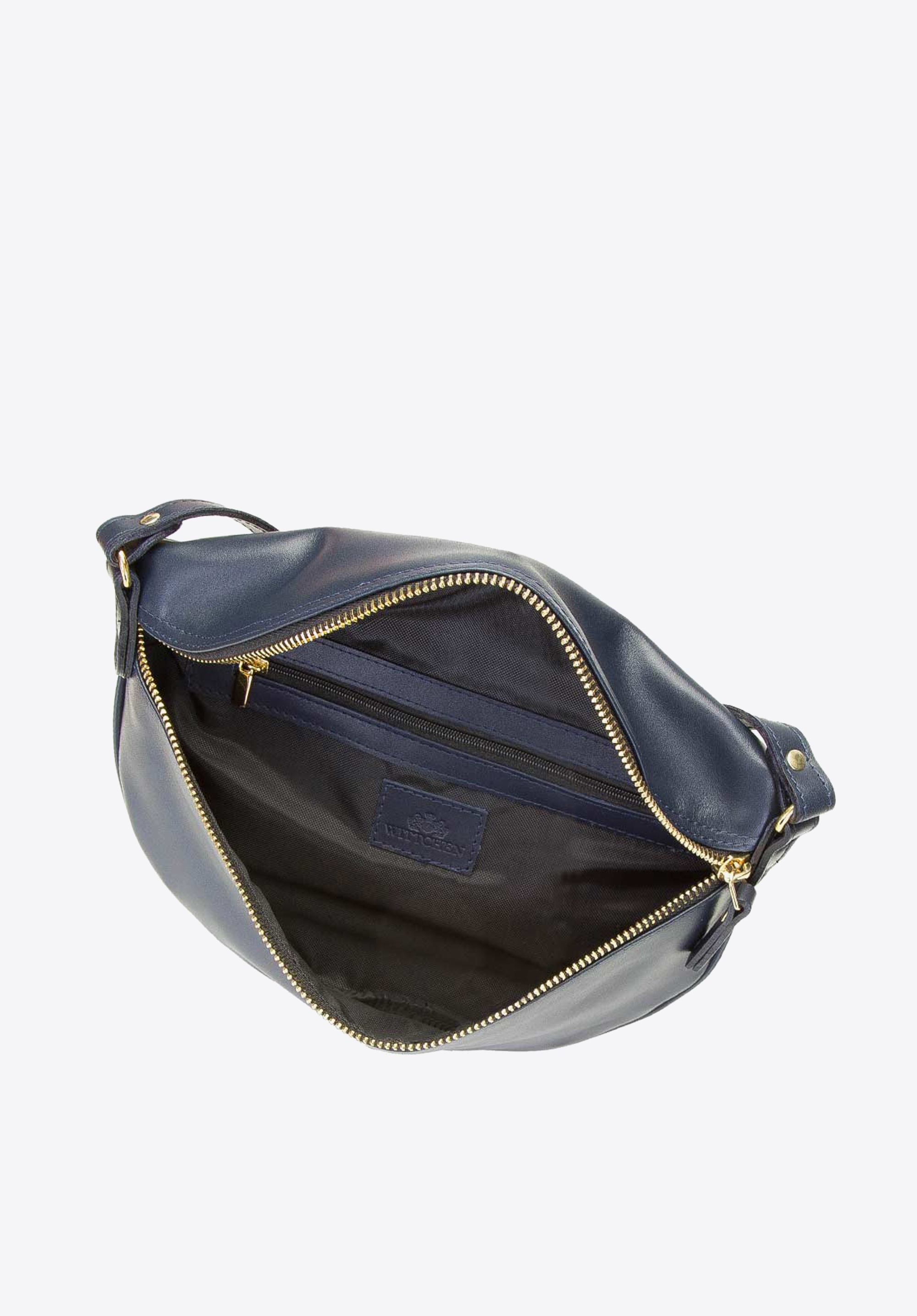 wysokiej jakości skórę naturalną o groszkowanym wykończeniu. Torebka jest niezwykle miękka w dotyku i ładnie się układa. Niezależnie od tego, czy będziesz nosić ją na biodrach, czy przewiesisz przez ramię, będzie Ci bardzo wygodnie. Jest spora: zmieścisz do środka na przykład okulary przeciwsłoneczne, telefon, portfel i krem do rąk.