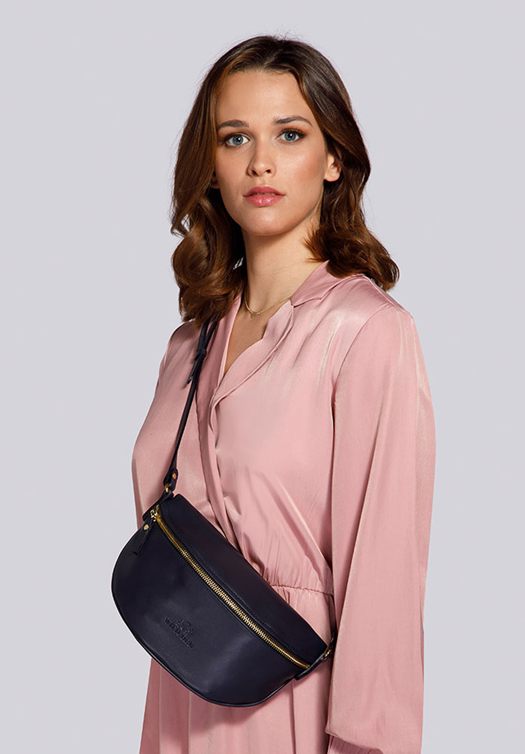 Nasza rada: jeśli odpowiednio wydłużysz skórzany pasek, będziesz mogła nosić tę torebkę nerkę na ukos przez ramię.