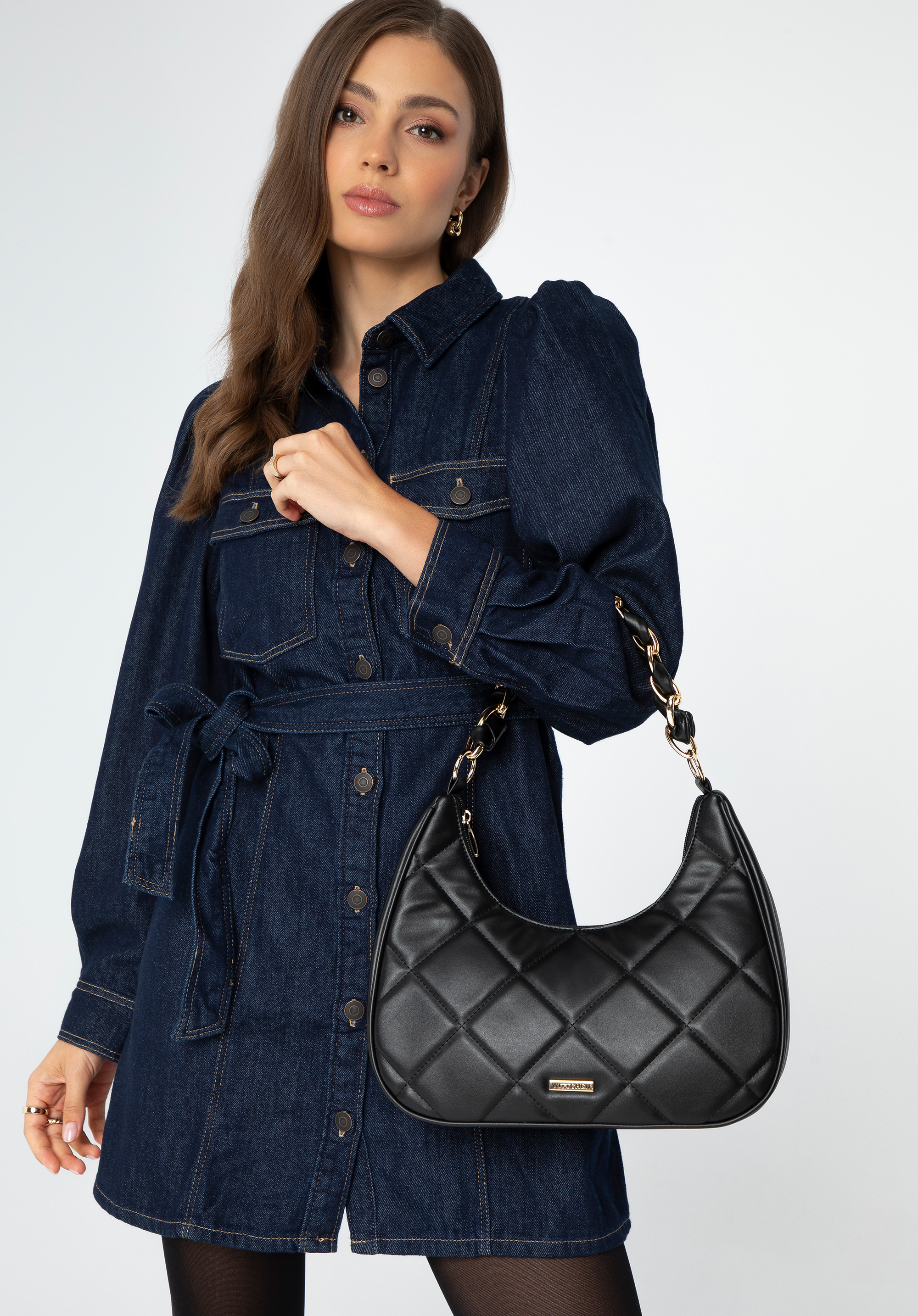 - Design: Pikowana torebka z geometrycznym wzorem przyciąga wzrok i dodaje klasy każdej stylizacji.