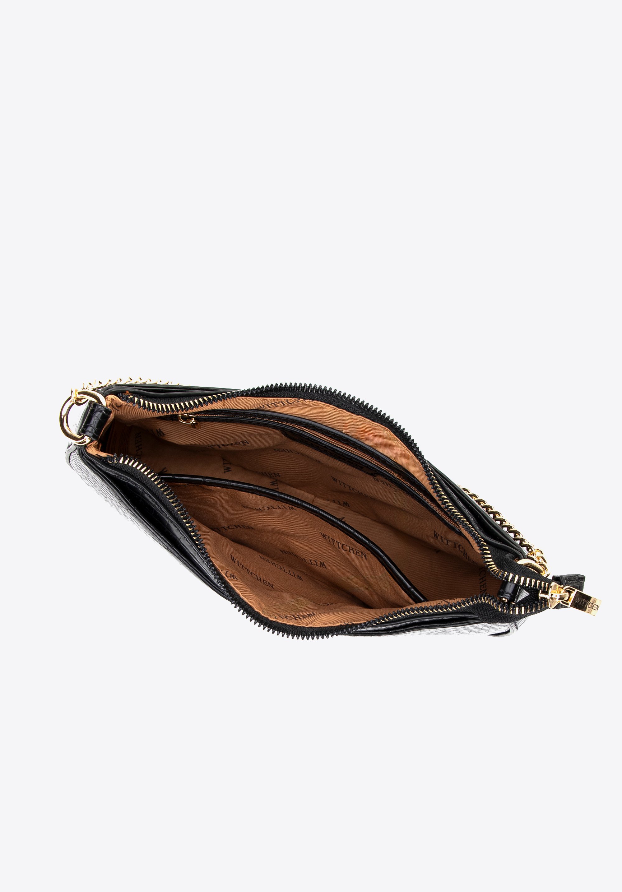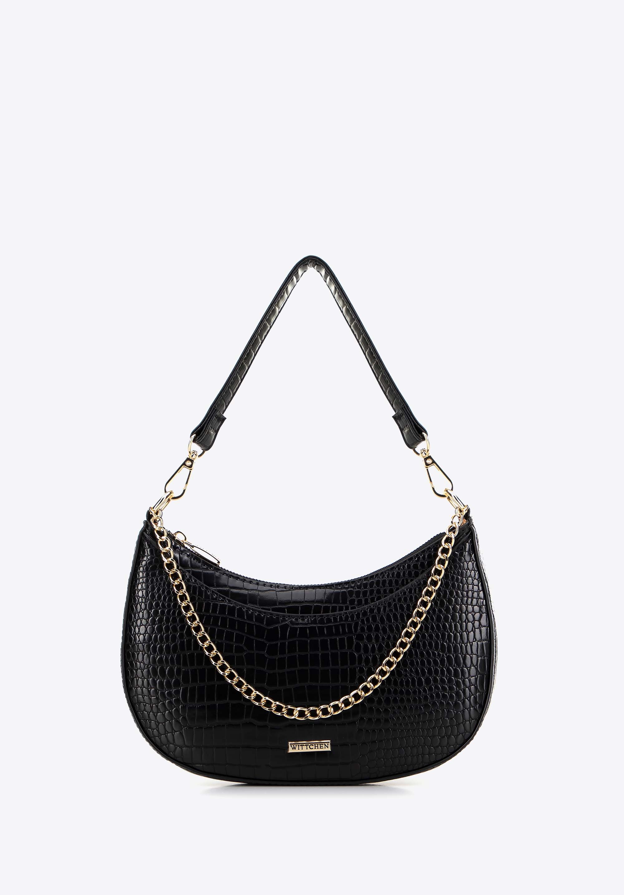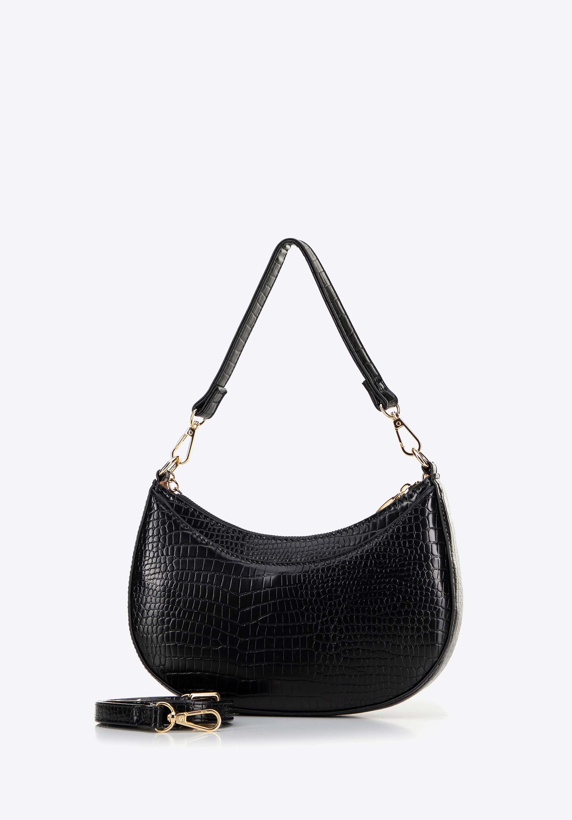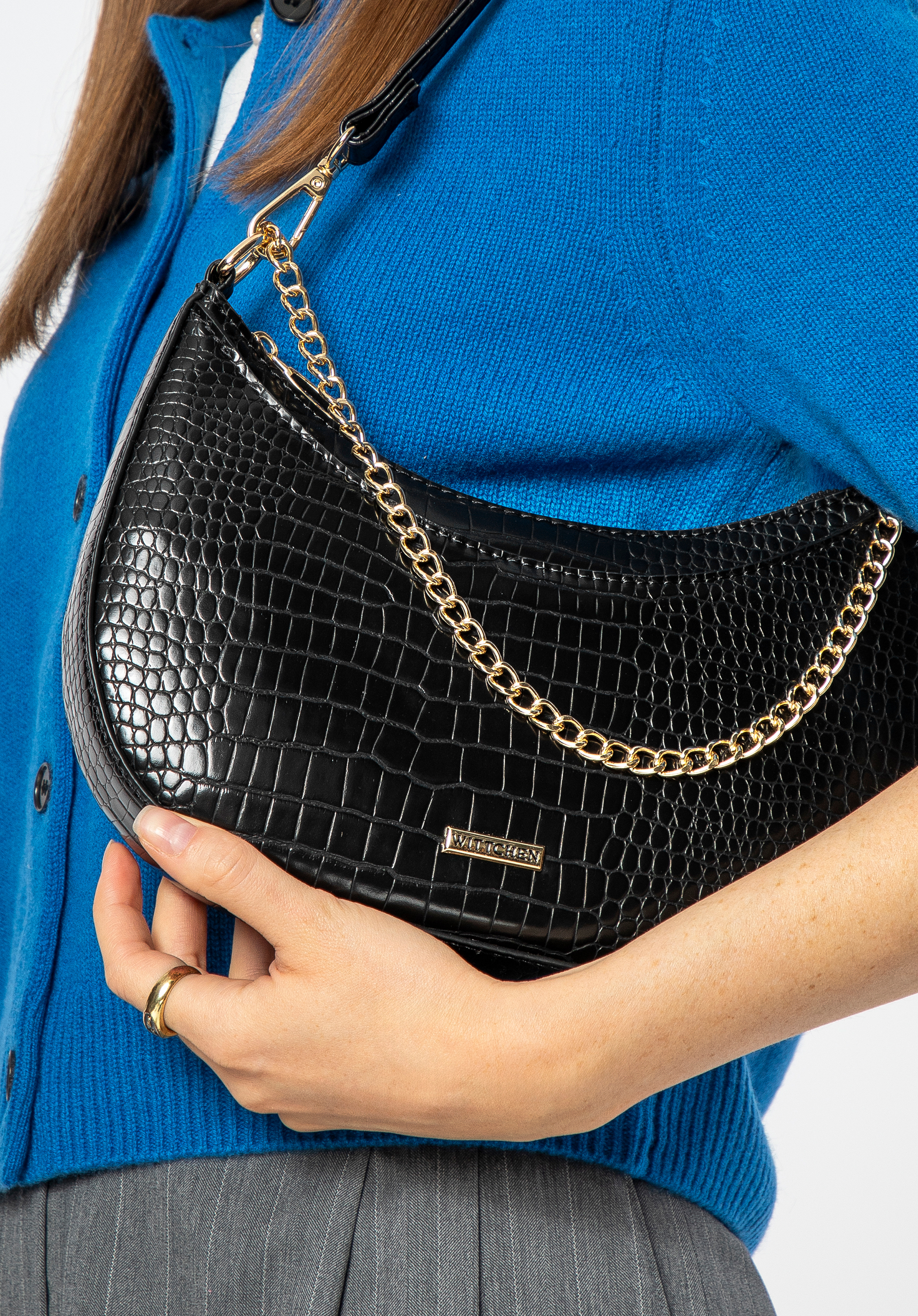 Damska torebka bagietka z łańcuszkiem croco czarno - złota