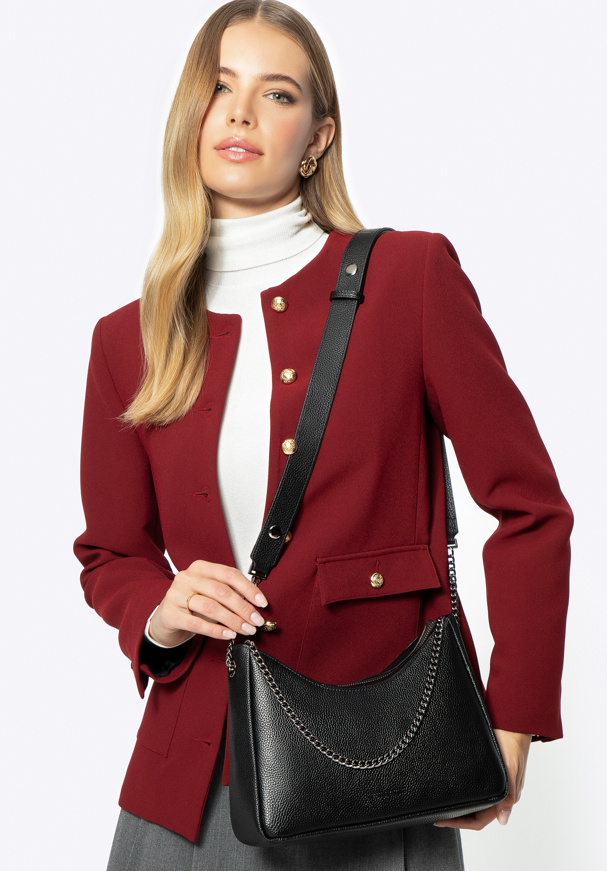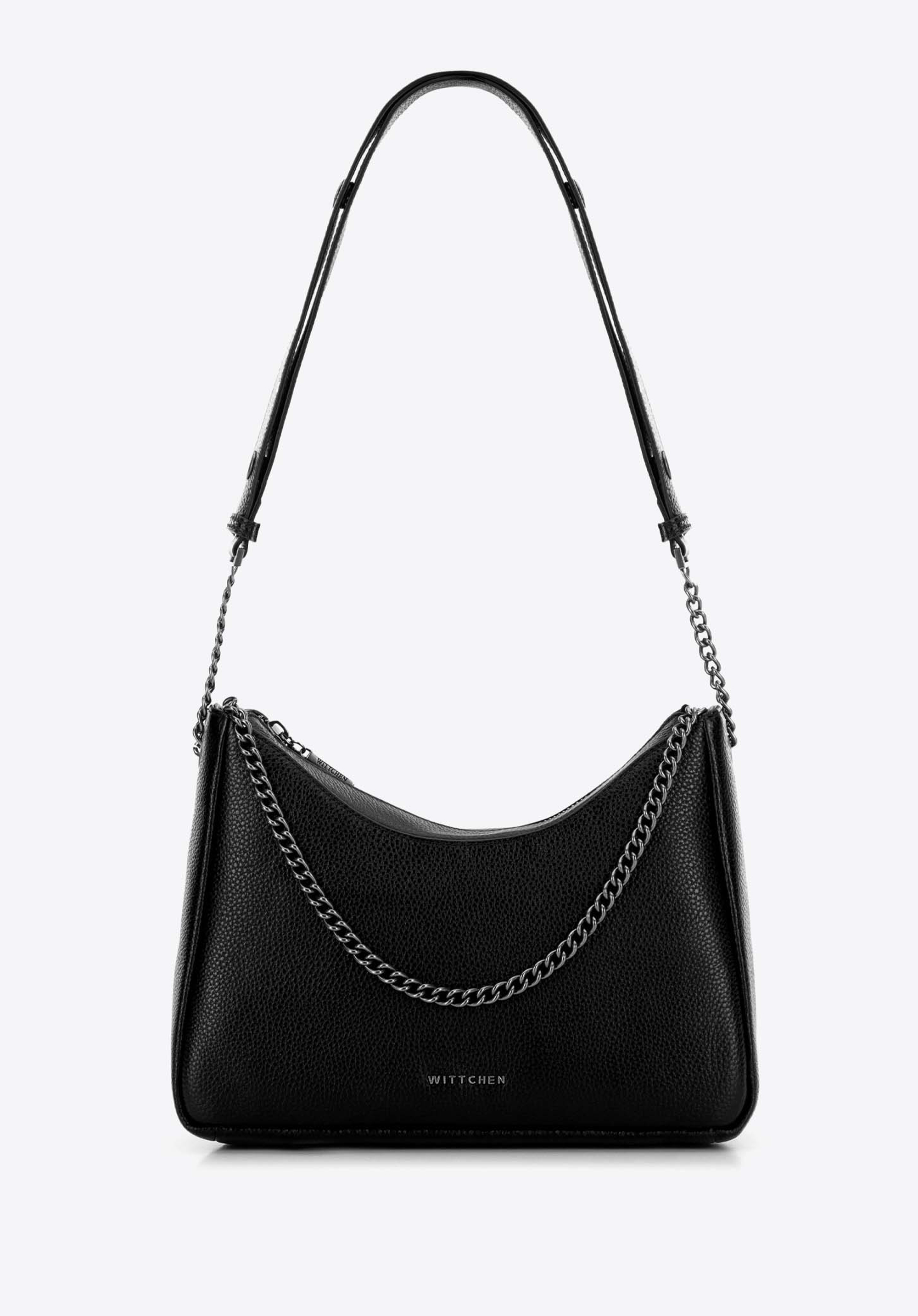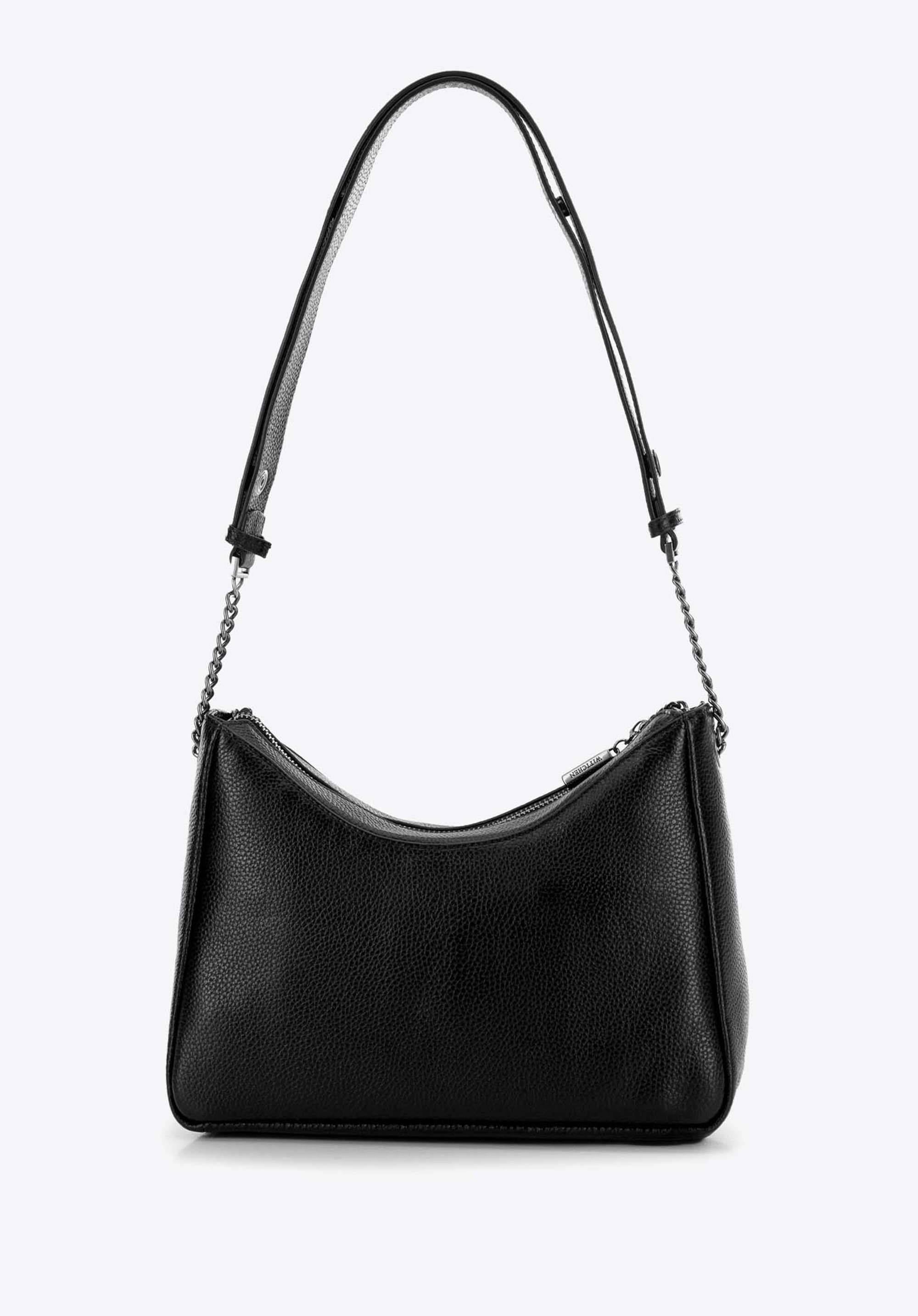 Damska torebka bagietka ze skóry czarno - grafitowa