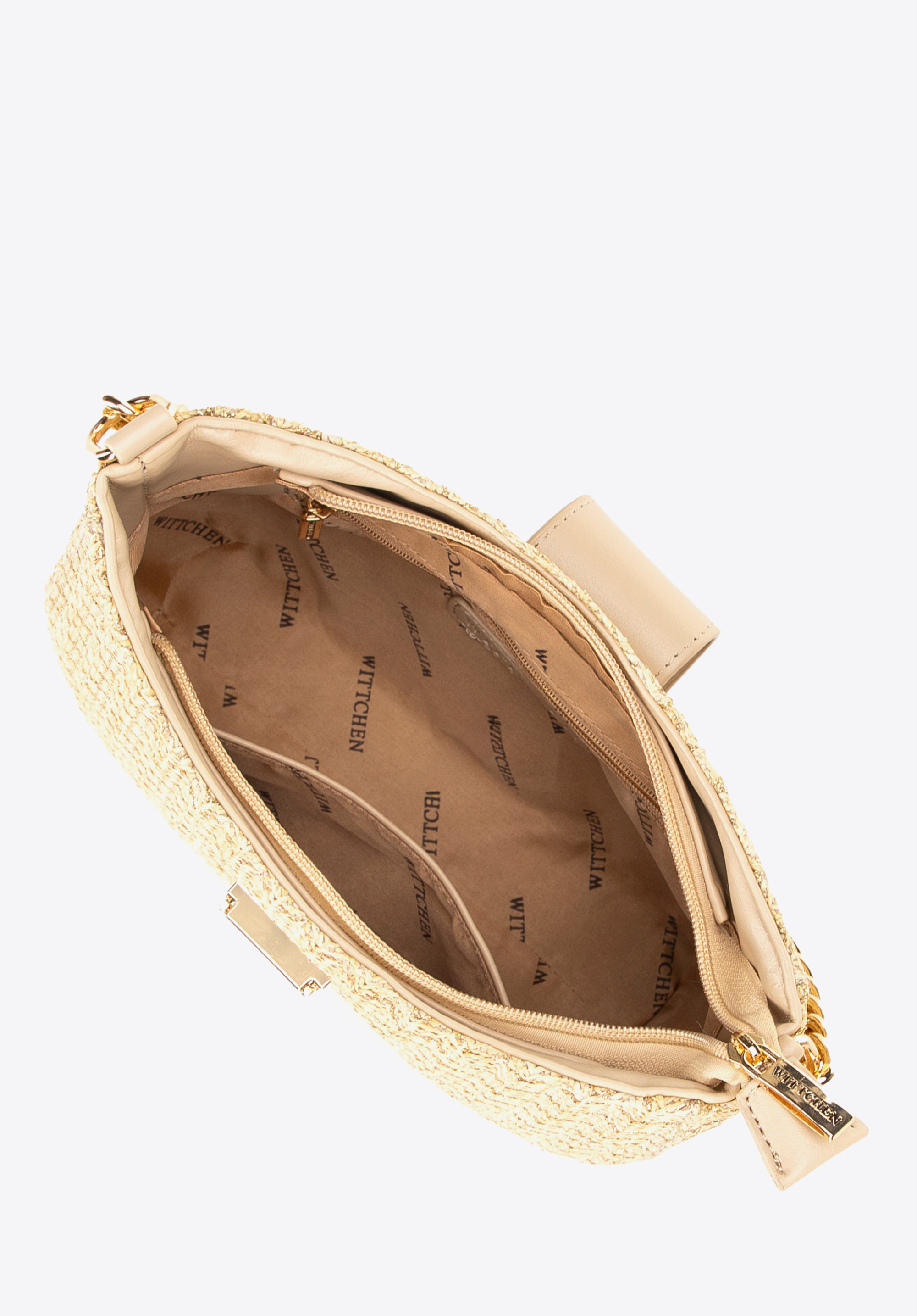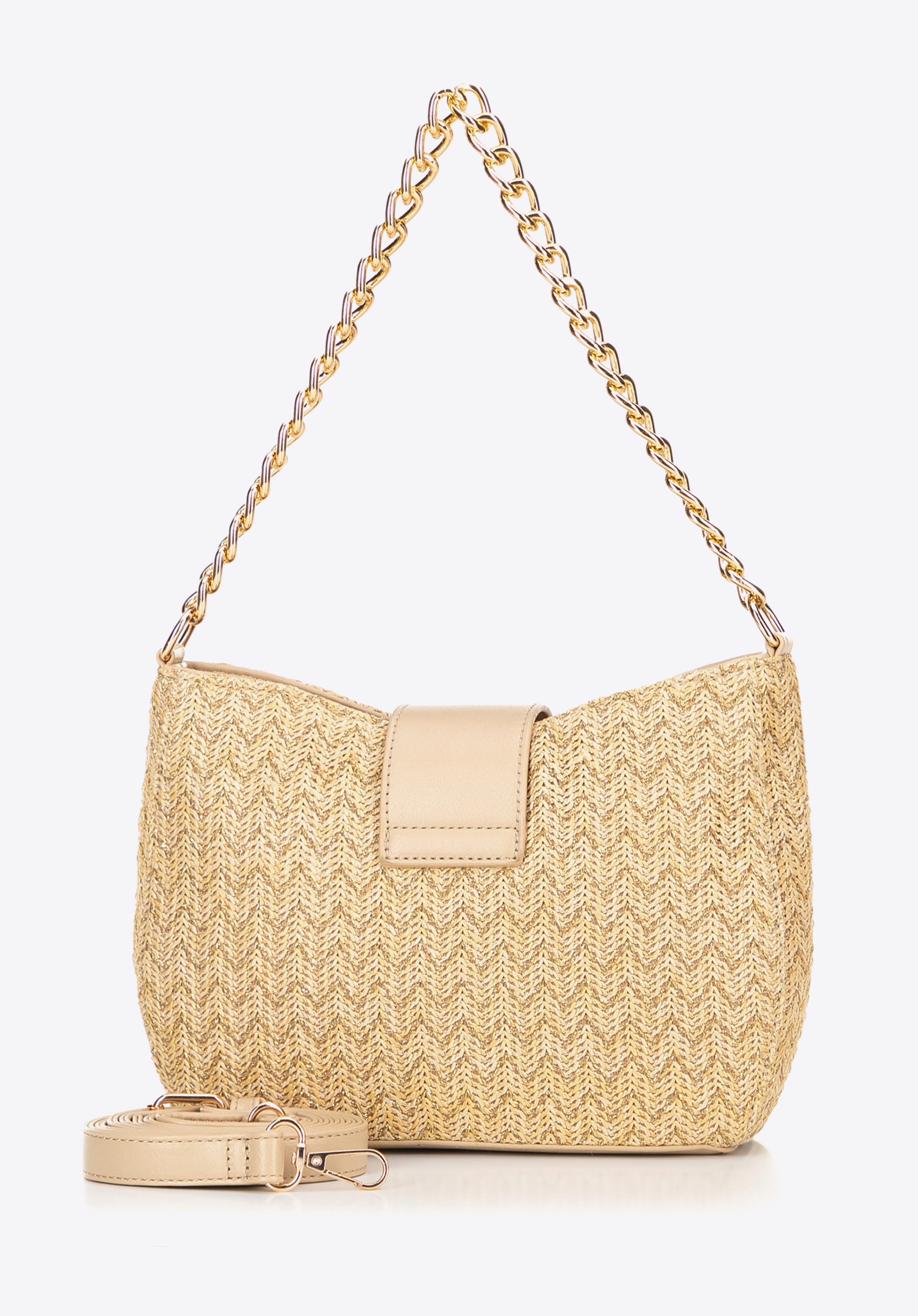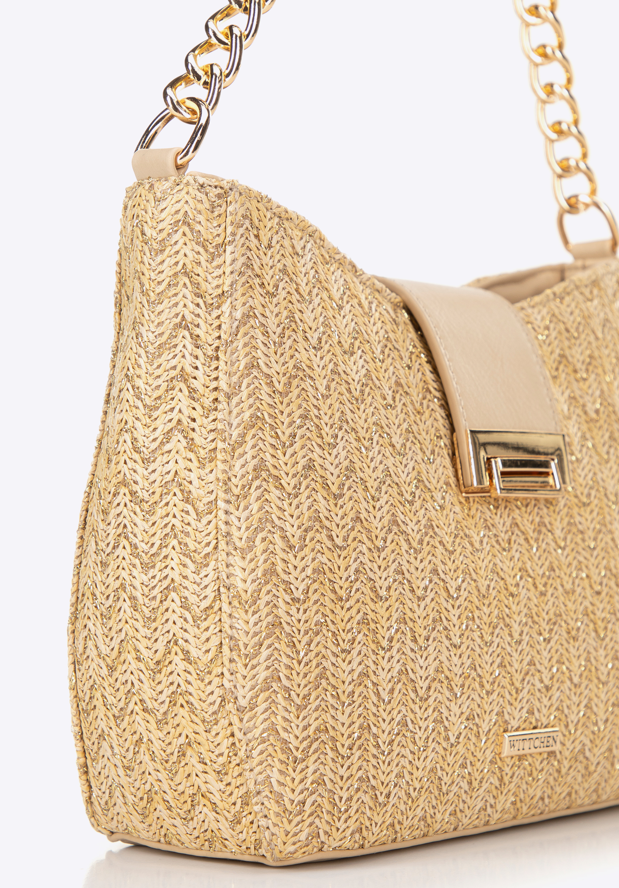 Damska torebka crossbody pleciona beżowo - złota