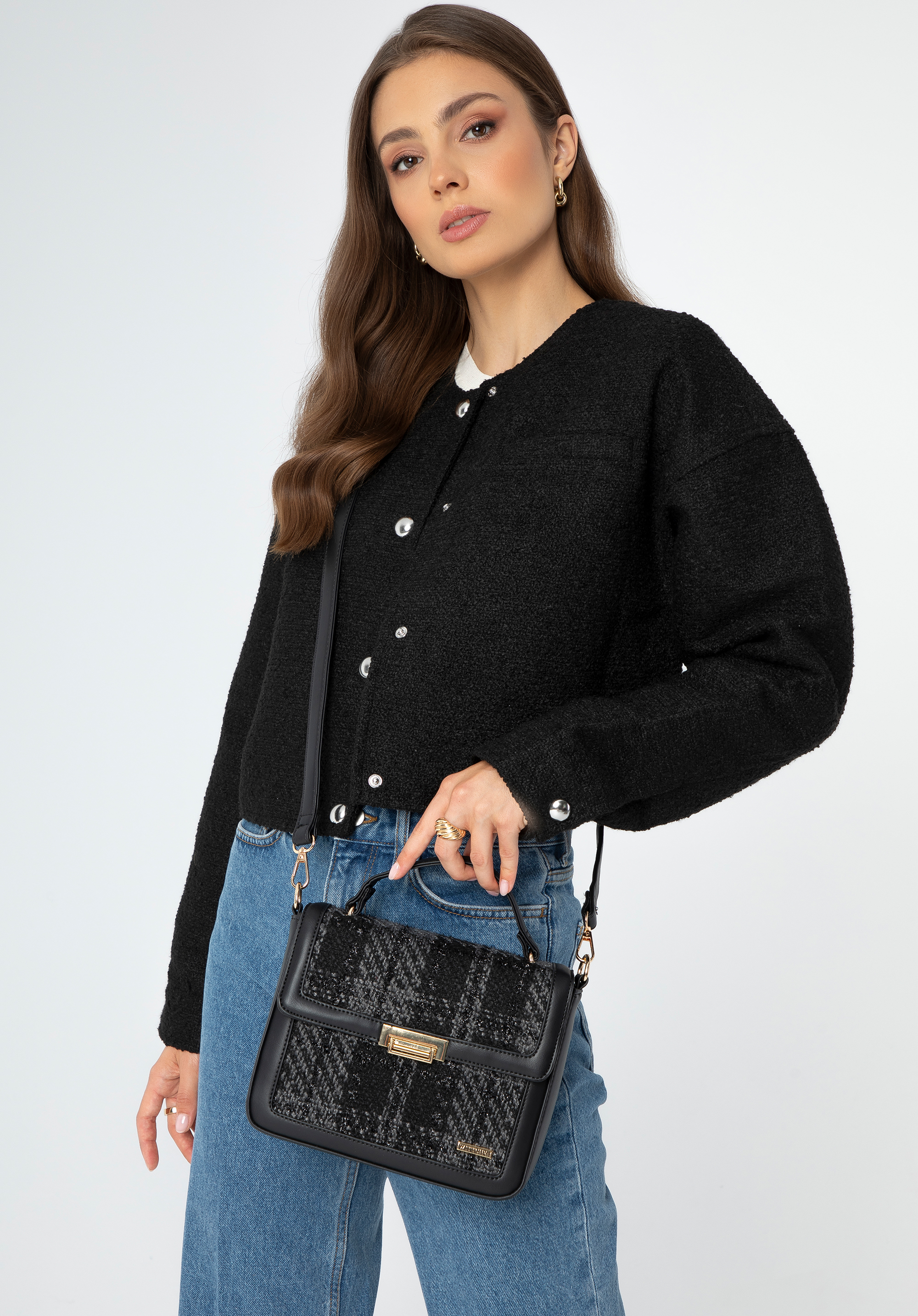 Dodaj odrobinę luksusu do swojej garderoby z damską torebką z tkaniny bouclé.