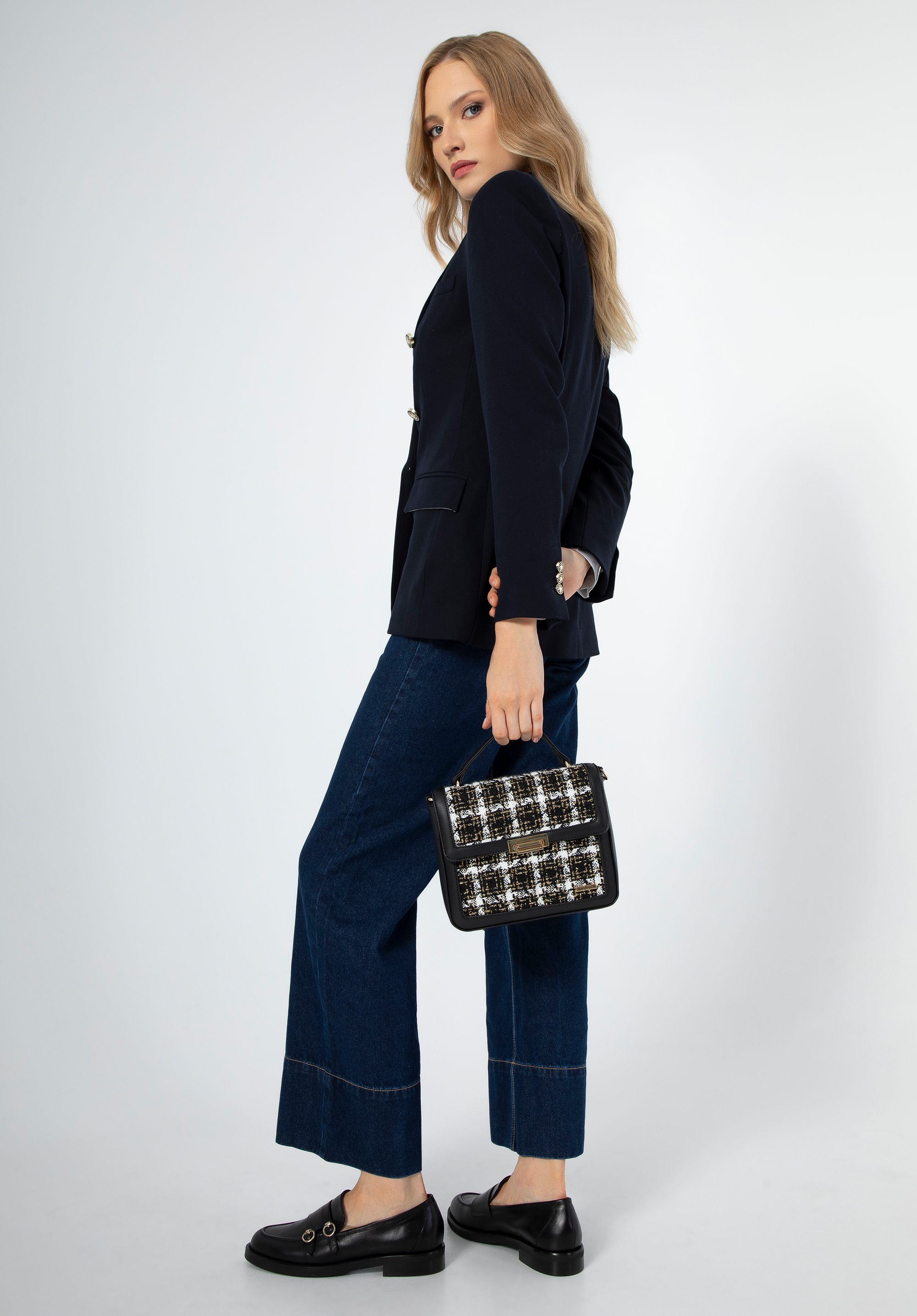 Dodaj odrobinę luksusu do swojej garderoby z damską torebką z tkaniny bouclé.