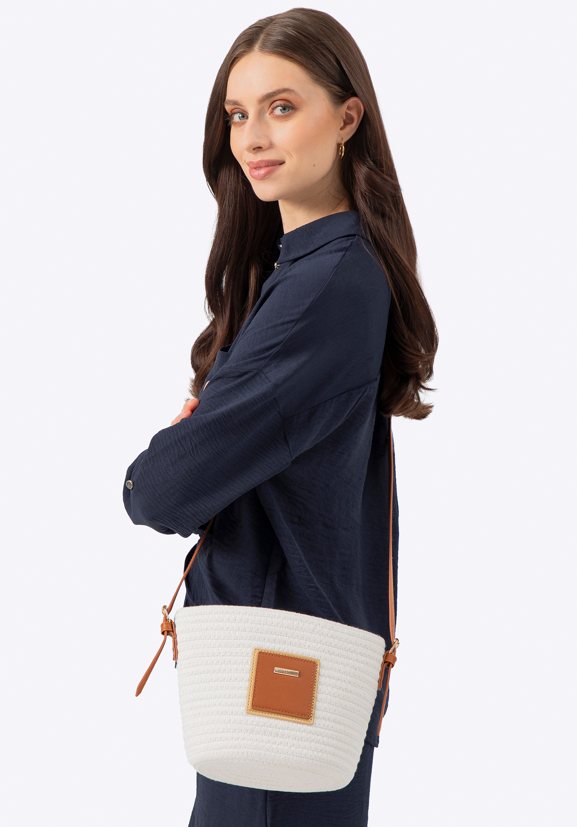 Nasza rada: Torebka typu koszyk świetnie komponuje się z lekkimi, letnimi stylizacjami. W połączeniu z plecionymi balerinami lub sandałami stworzysz idealną wakacyjną stylizację, która zachwyci prostotą i elegancją. Może być noszona także jako crossbody, dzięki regulowanemu paskowi, co zapewnia wygodę i swobodę ruchów w każdej sytuacji.