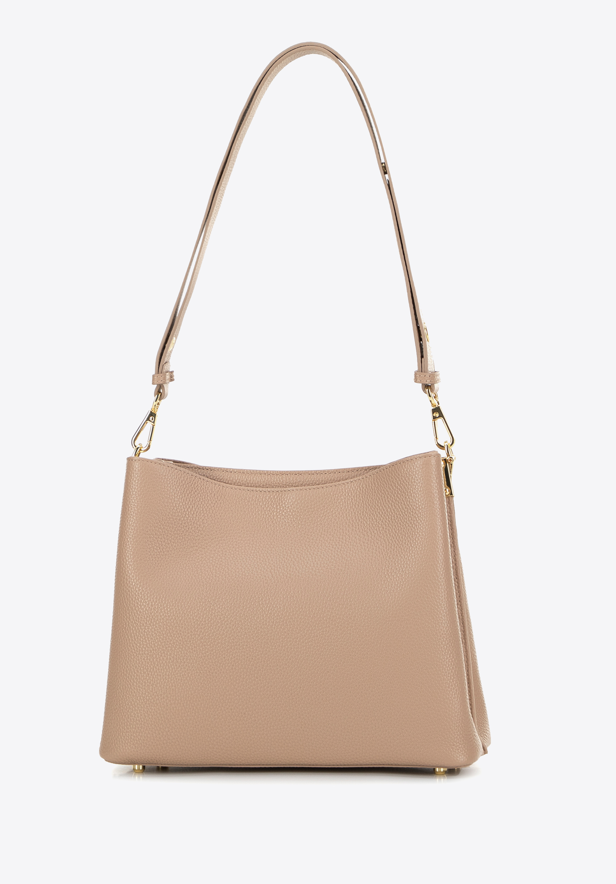 - Cztery metalowe nóżki na spodzie torebki chronią ją przed uszkodzeniami, zapewniając stabilność i dbałość o detale.