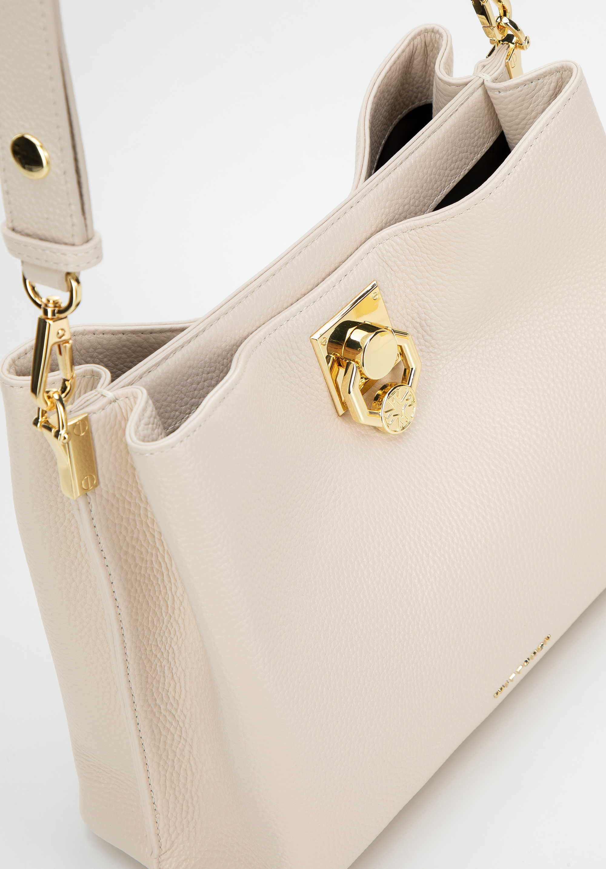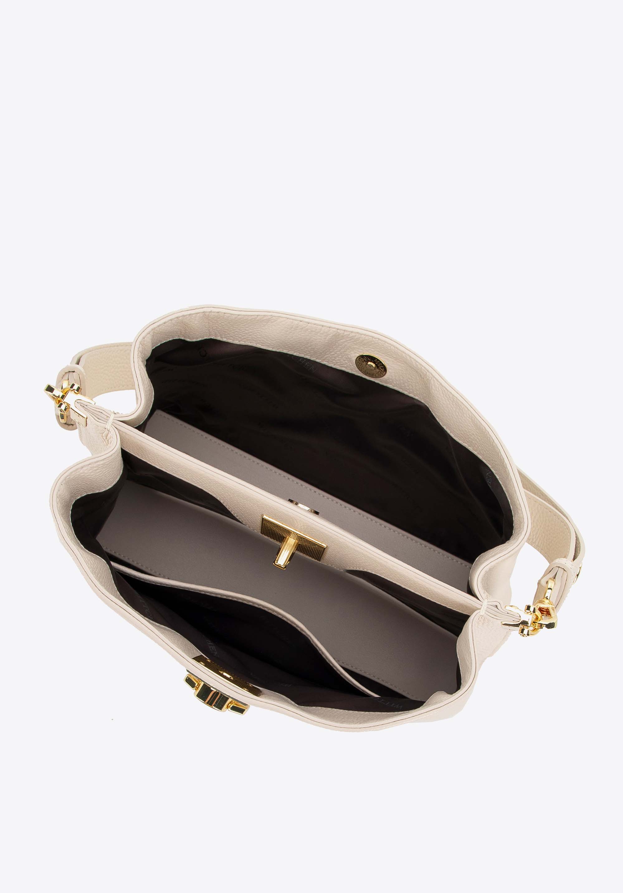 - Cztery metalowe nóżki na spodzie torebki chronią ją przed uszkodzeniami, zapewniając stabilność i dbałość o detale.