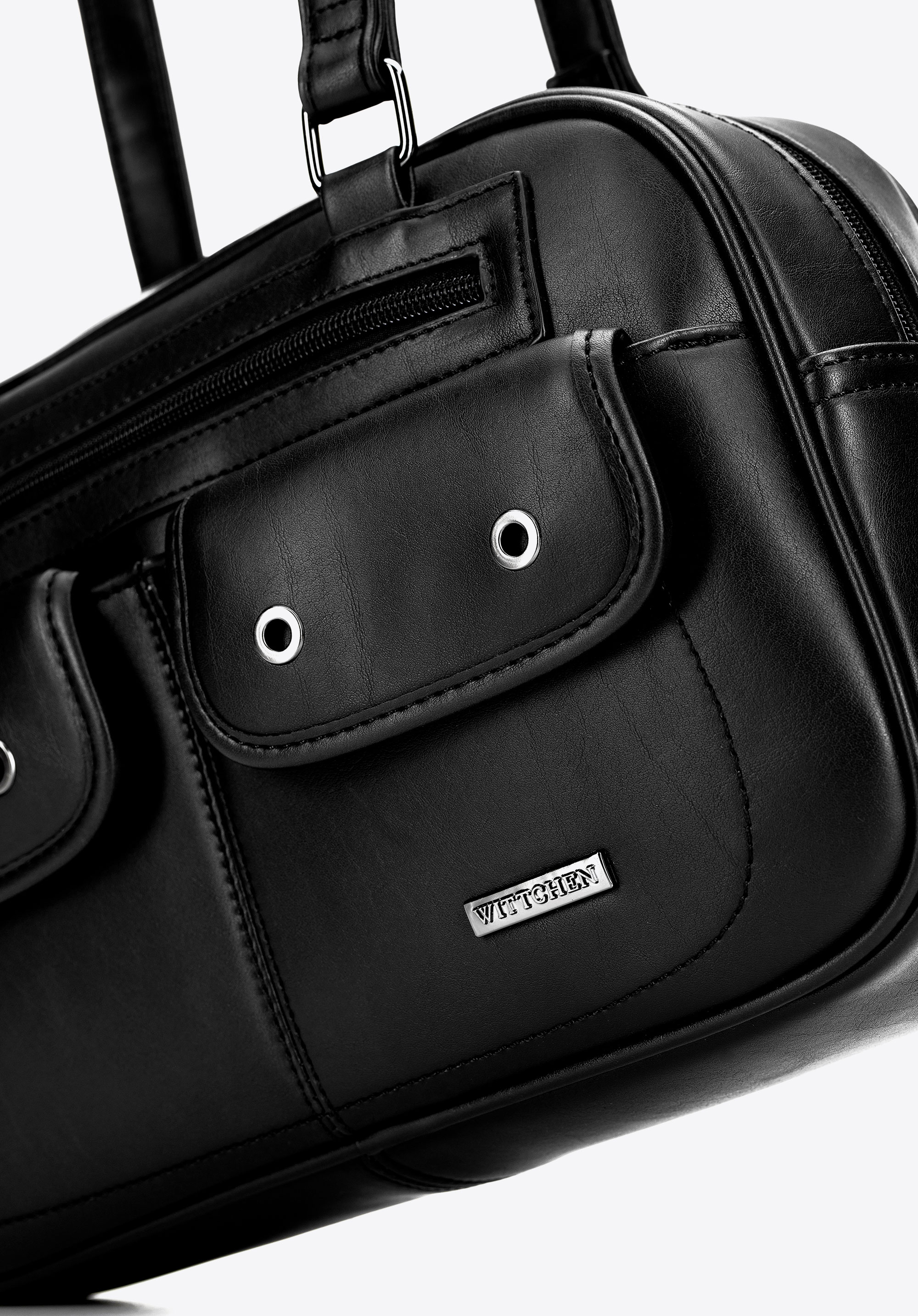 - Skład: 100% ekoskóra; podszewka: 100% poliester.