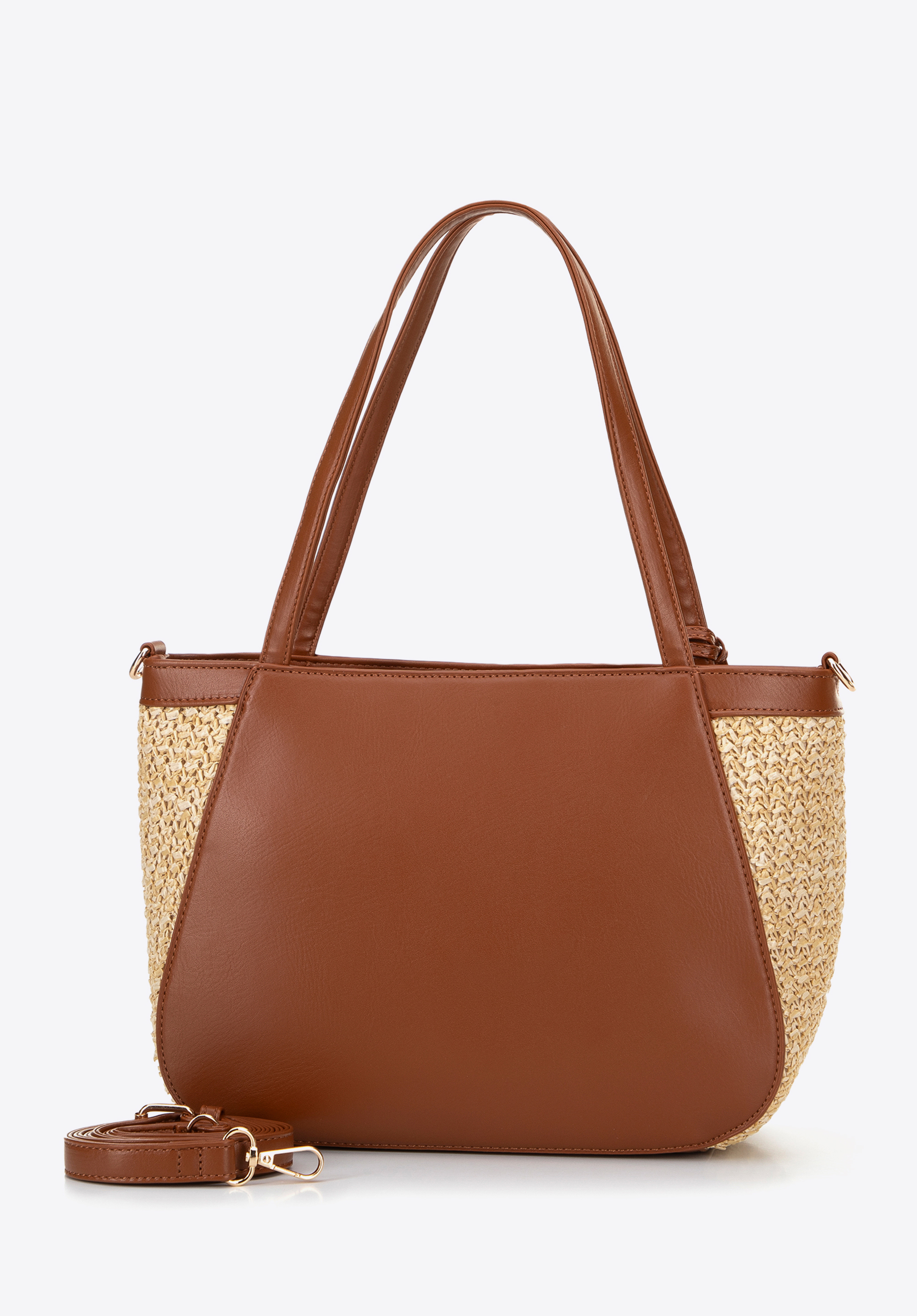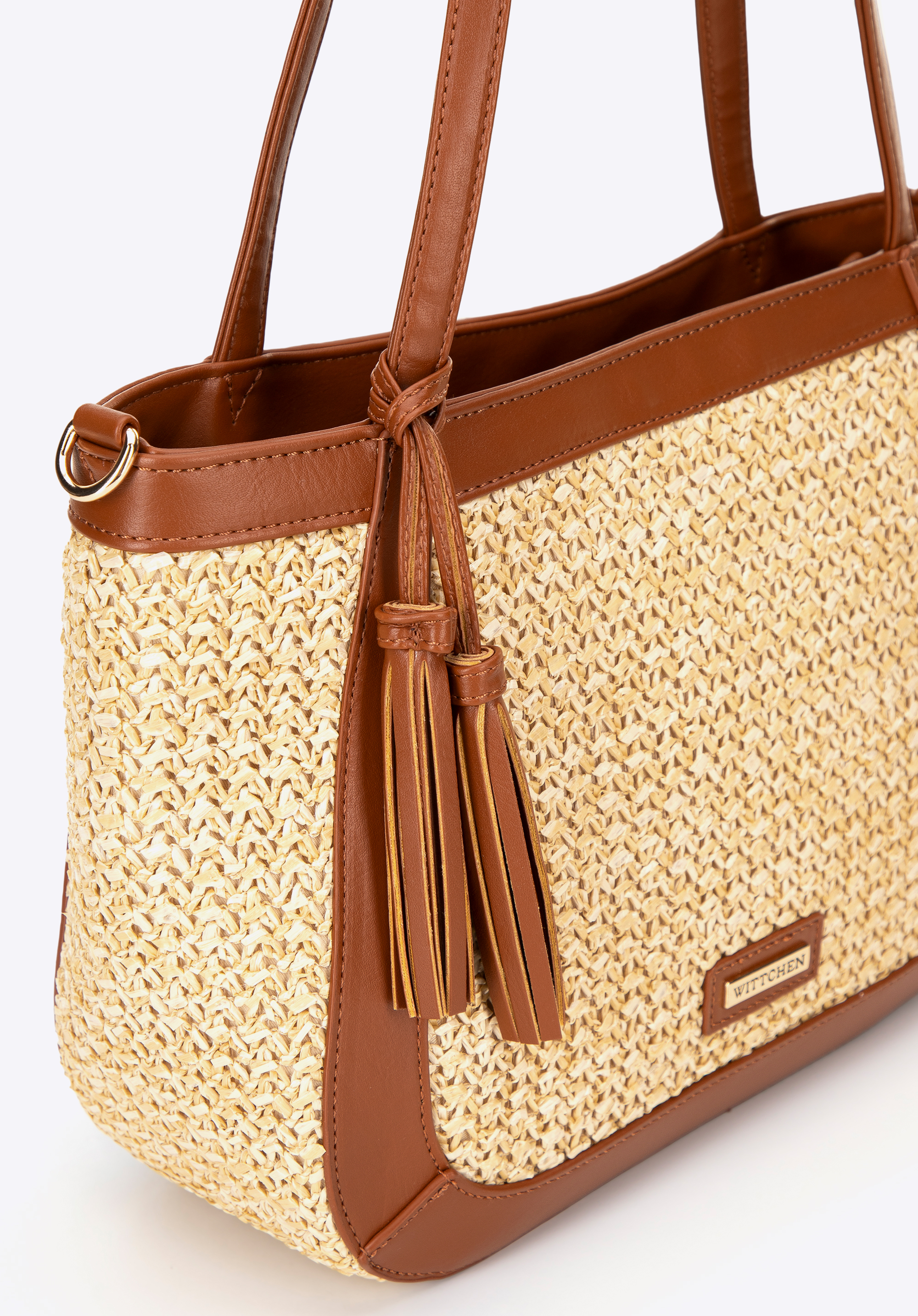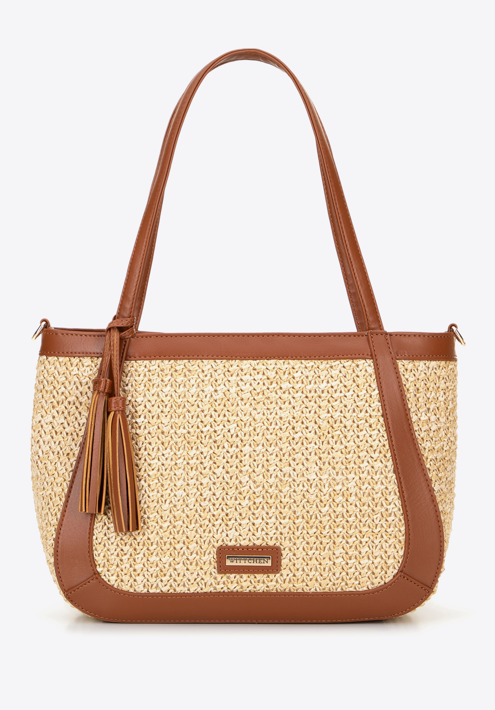 Damska torebka na ramię z plecionki beżowo - brązowa
