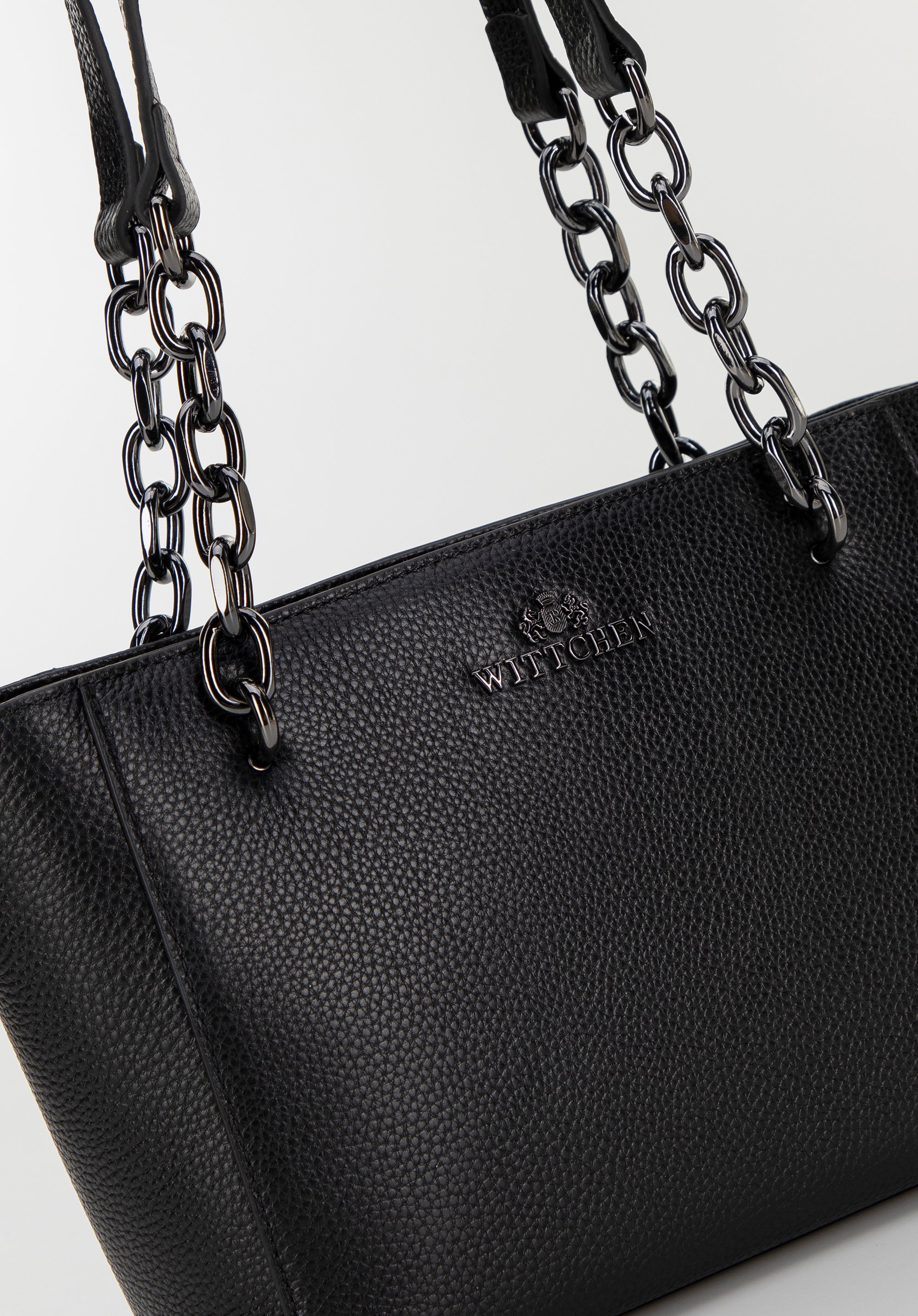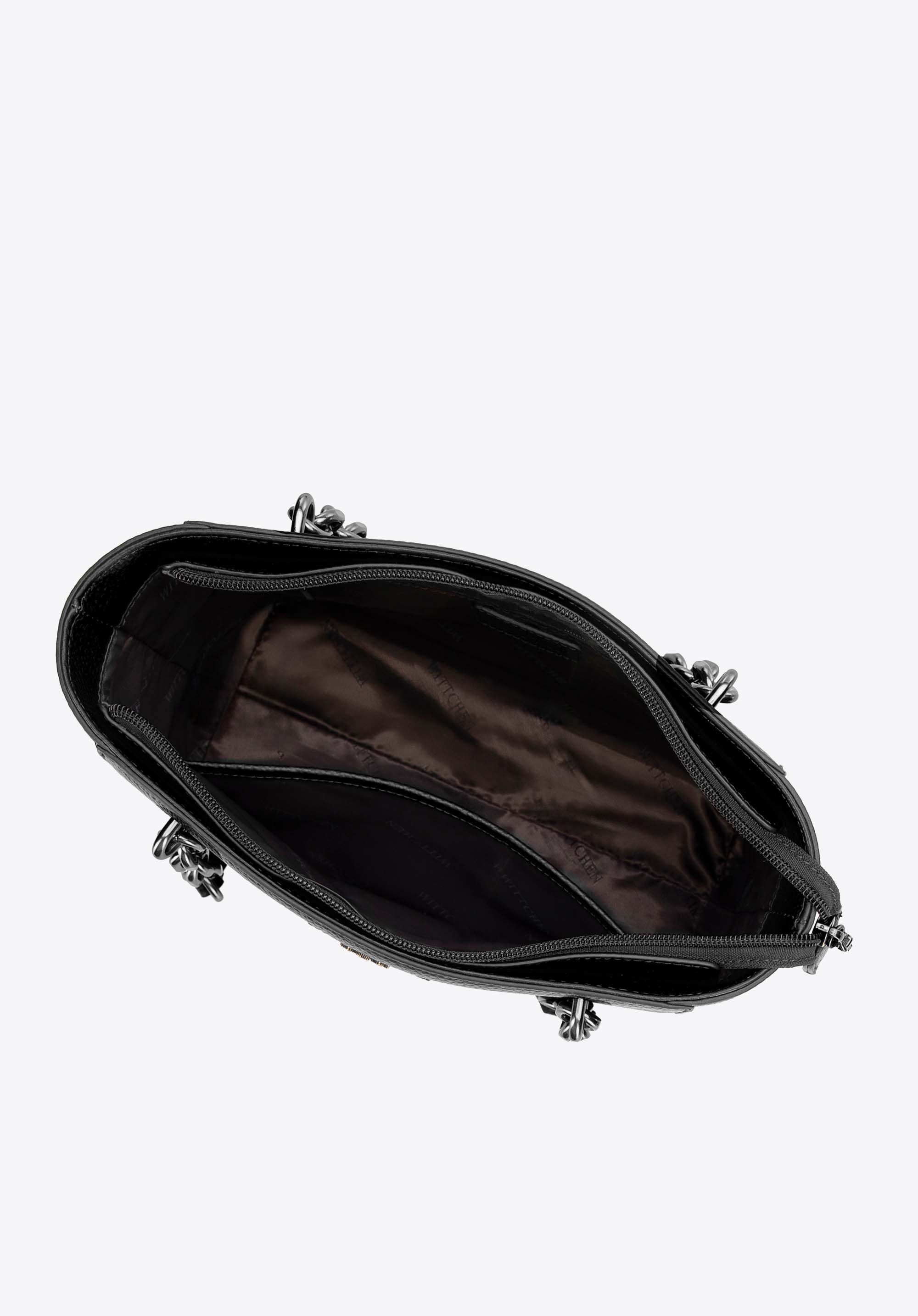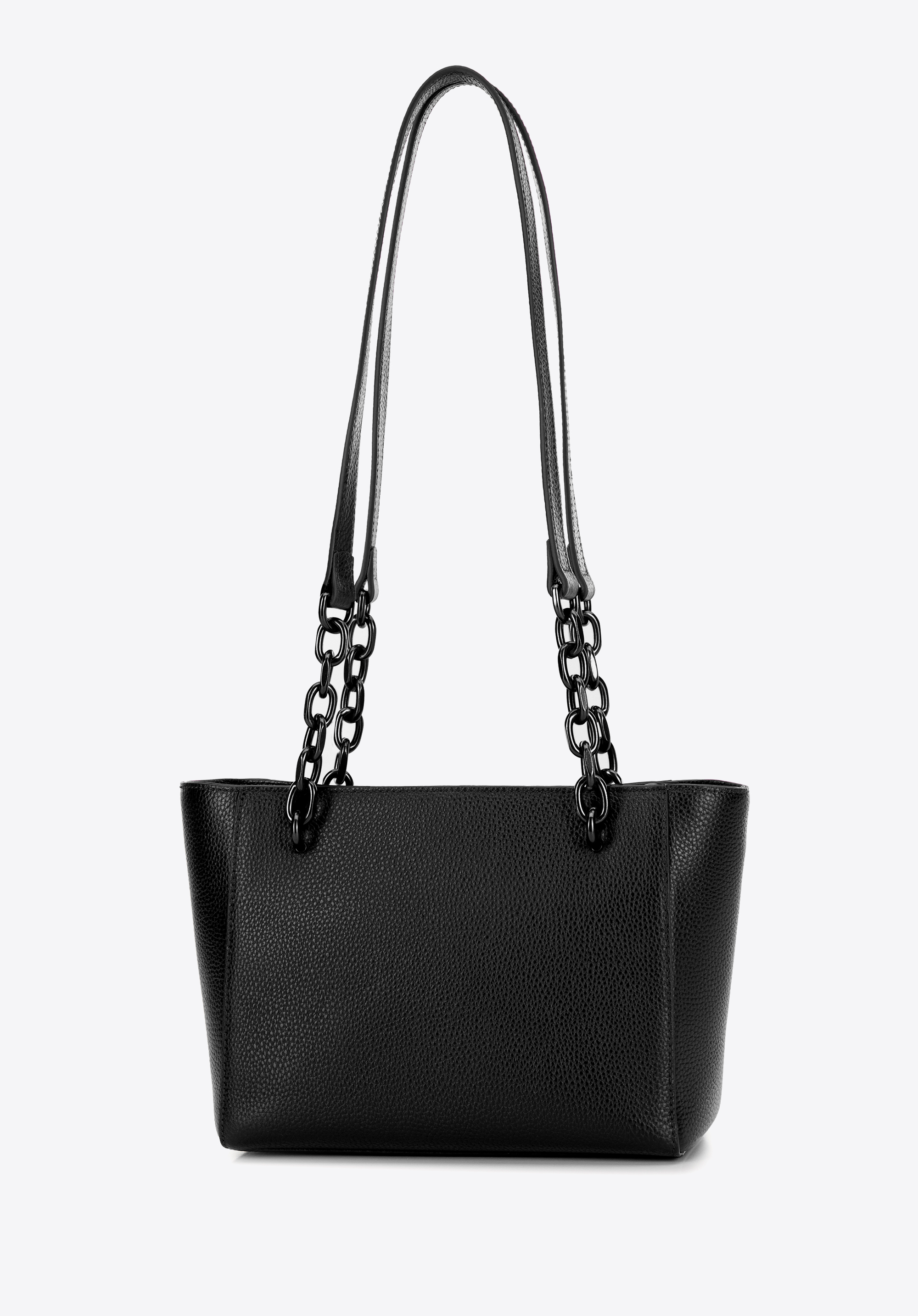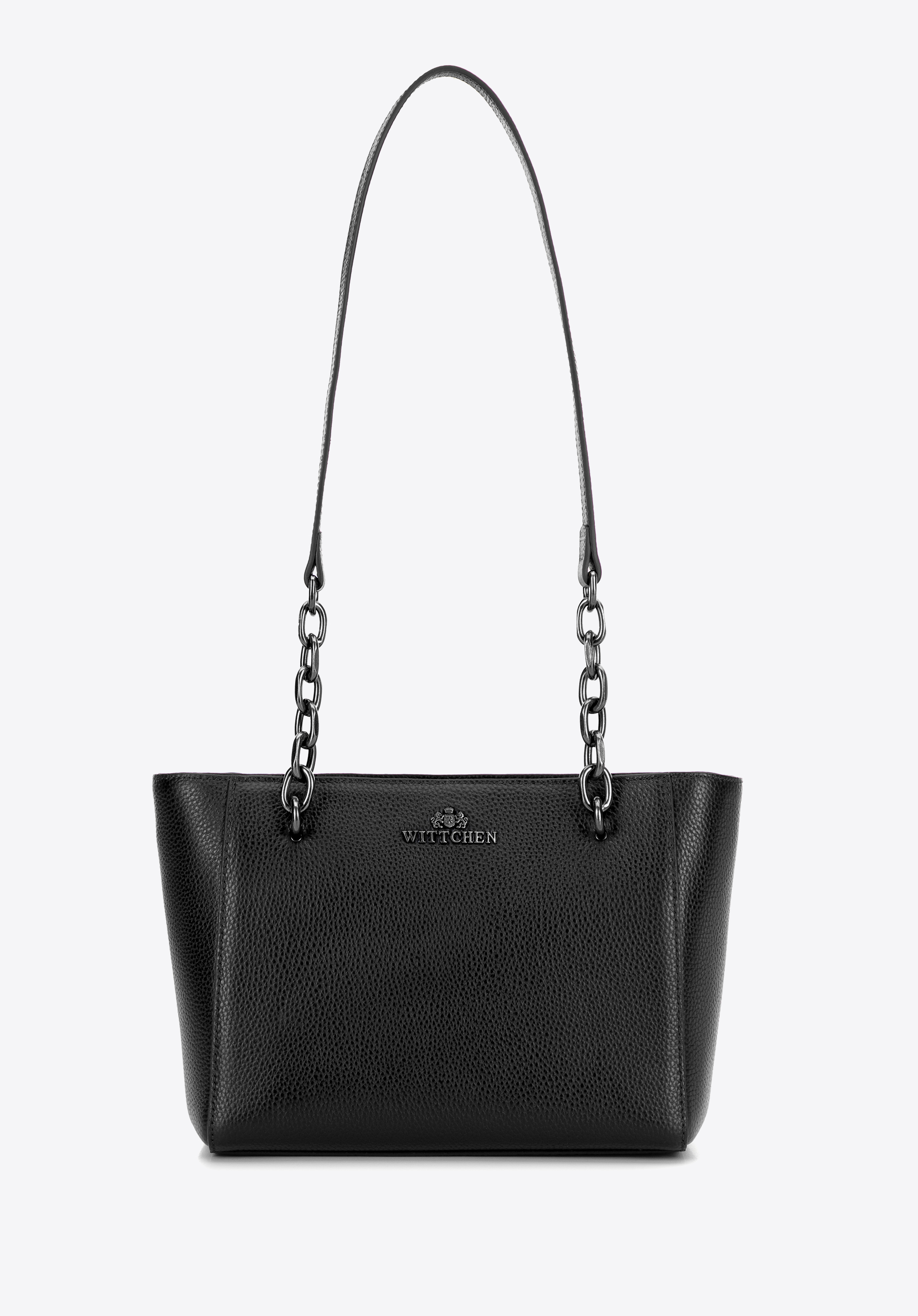 Damska torebka na ramię ze skóry czarno - grafitowa