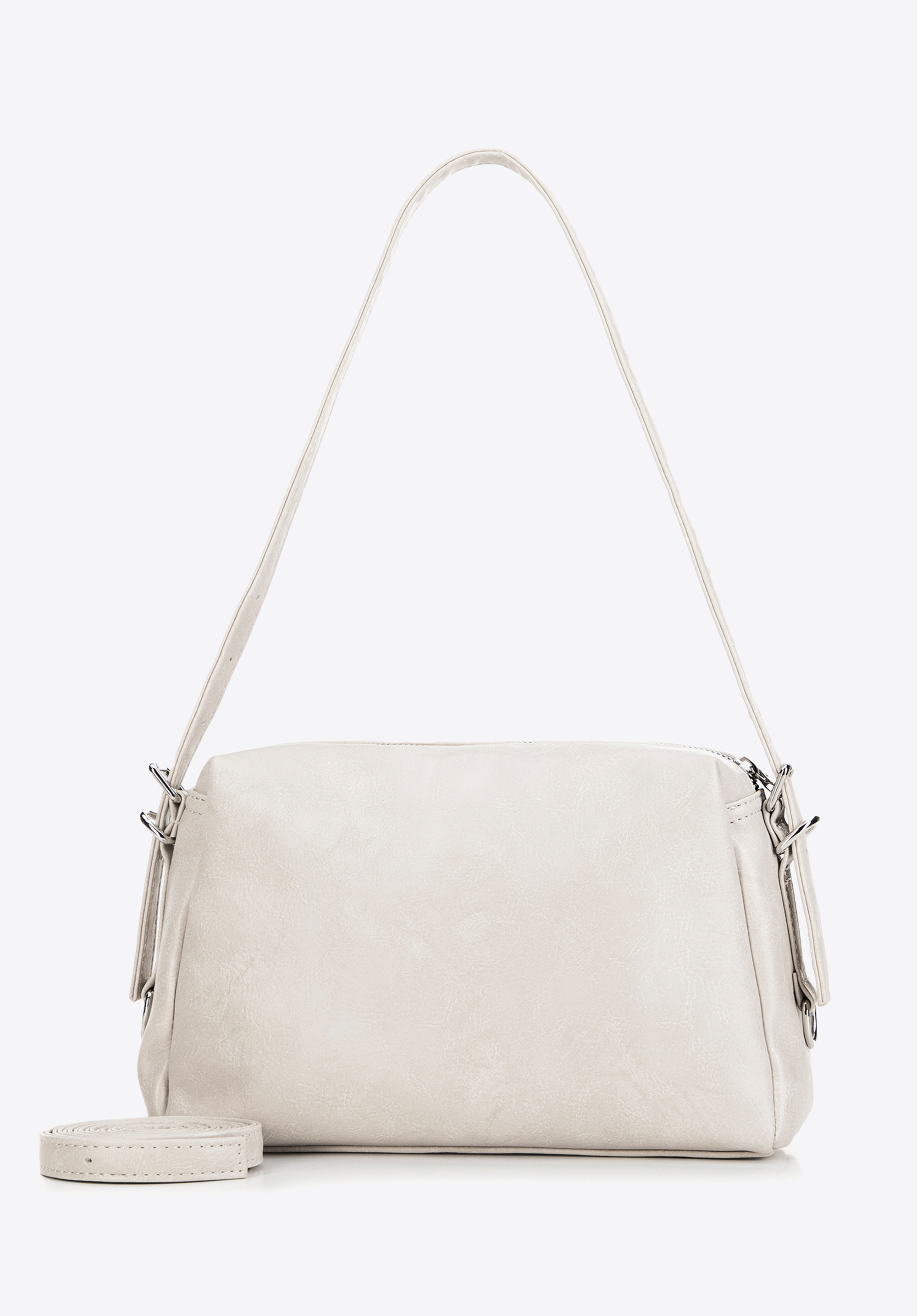 - Materiał: Torebka została wykonana z trwałej, odpornej na zarysowania i łatwej do pielęgnacji ekoskóry.
