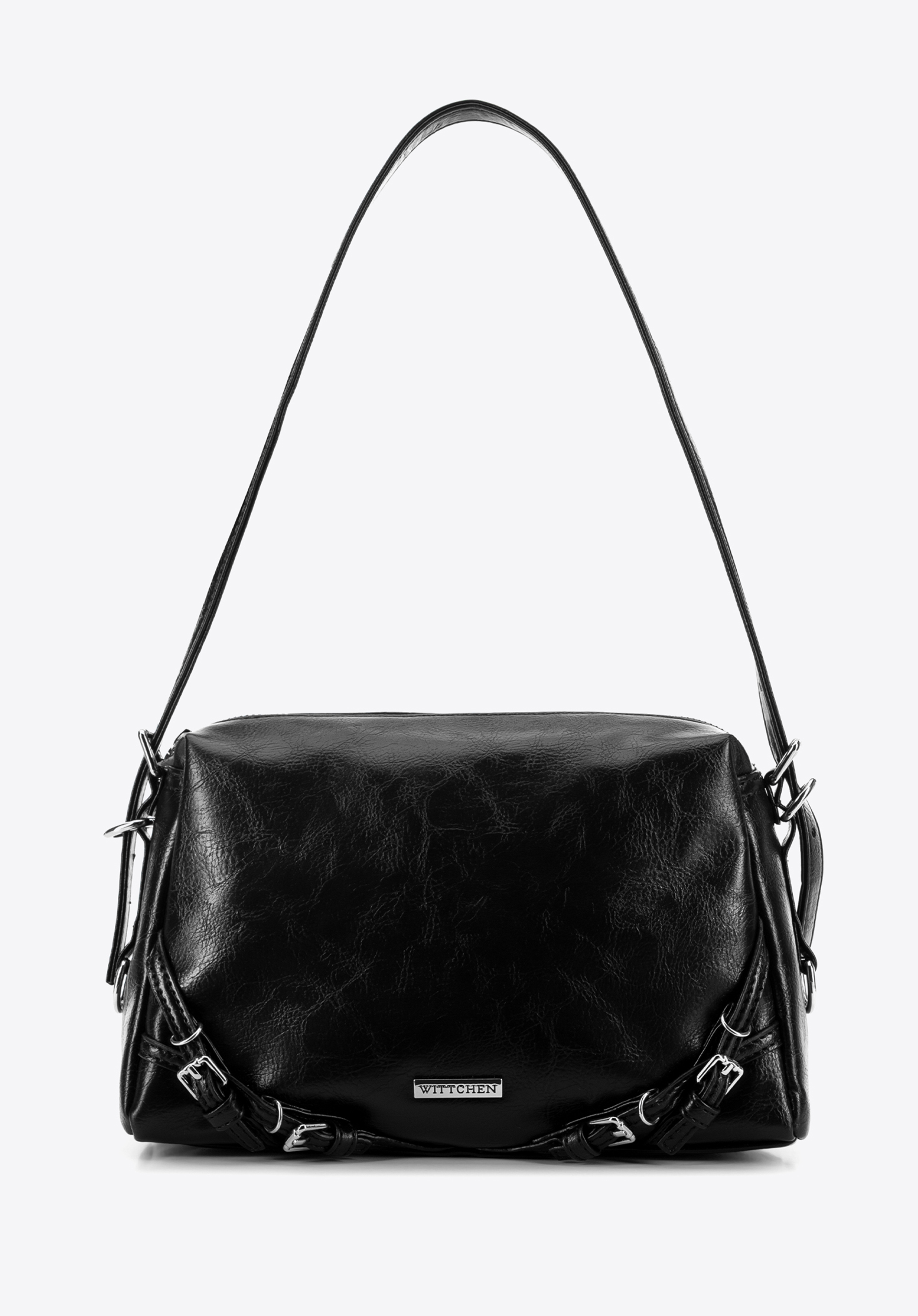 - Materiał: Torebka została wykonana z trwałej, odpornej na zarysowania i łatwej do pielęgnacji ekoskóry.