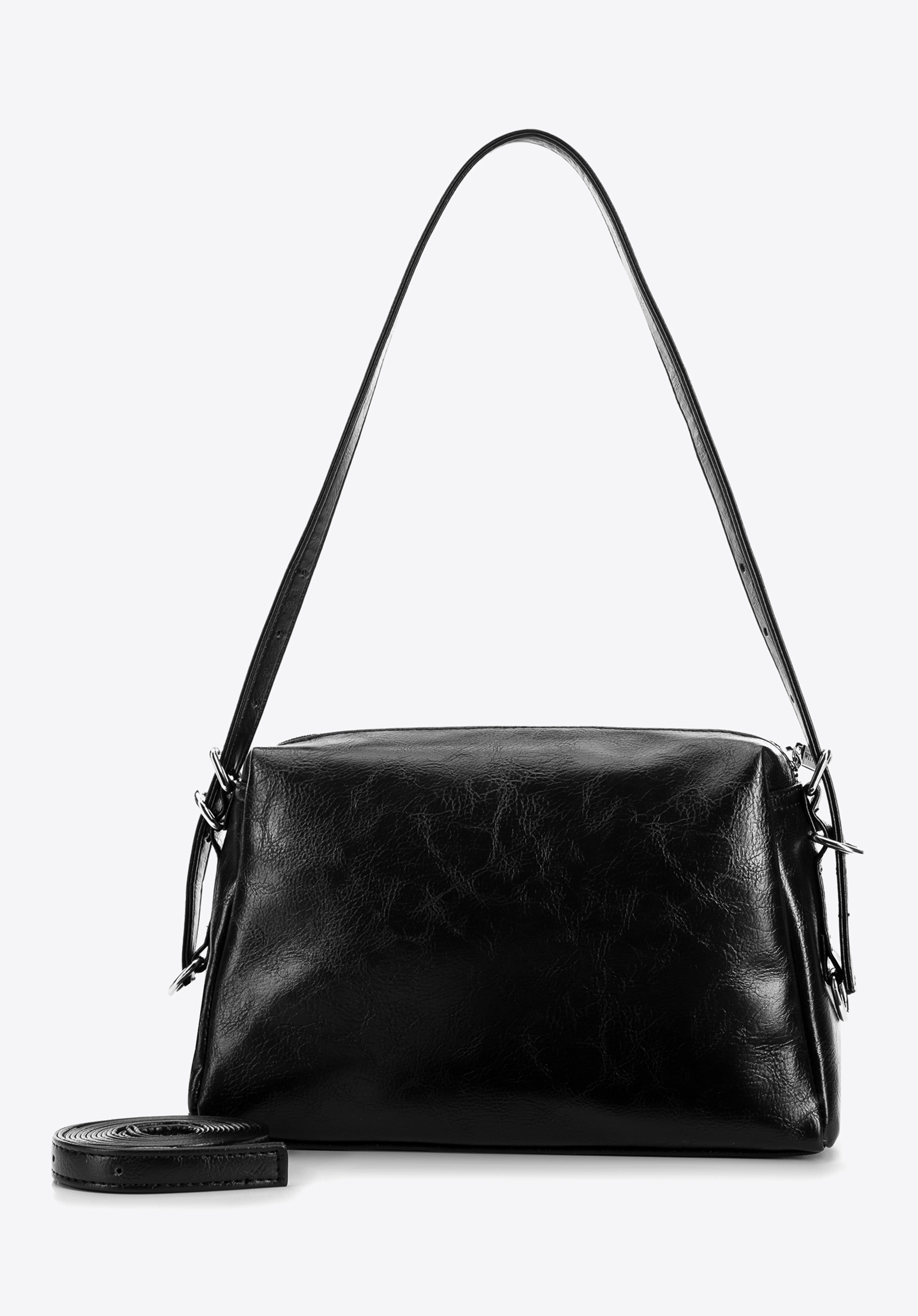 - Komfort noszenia: Torebka wyposażona jest w regulowaną rączkę oraz odpinany, regulowany pasek na ramię, co pozwala na noszenie jej na kilka sposobów, dostosowując się do Twoich potrzeb i preferencji. W komplecie jest dodatkowy pasek.