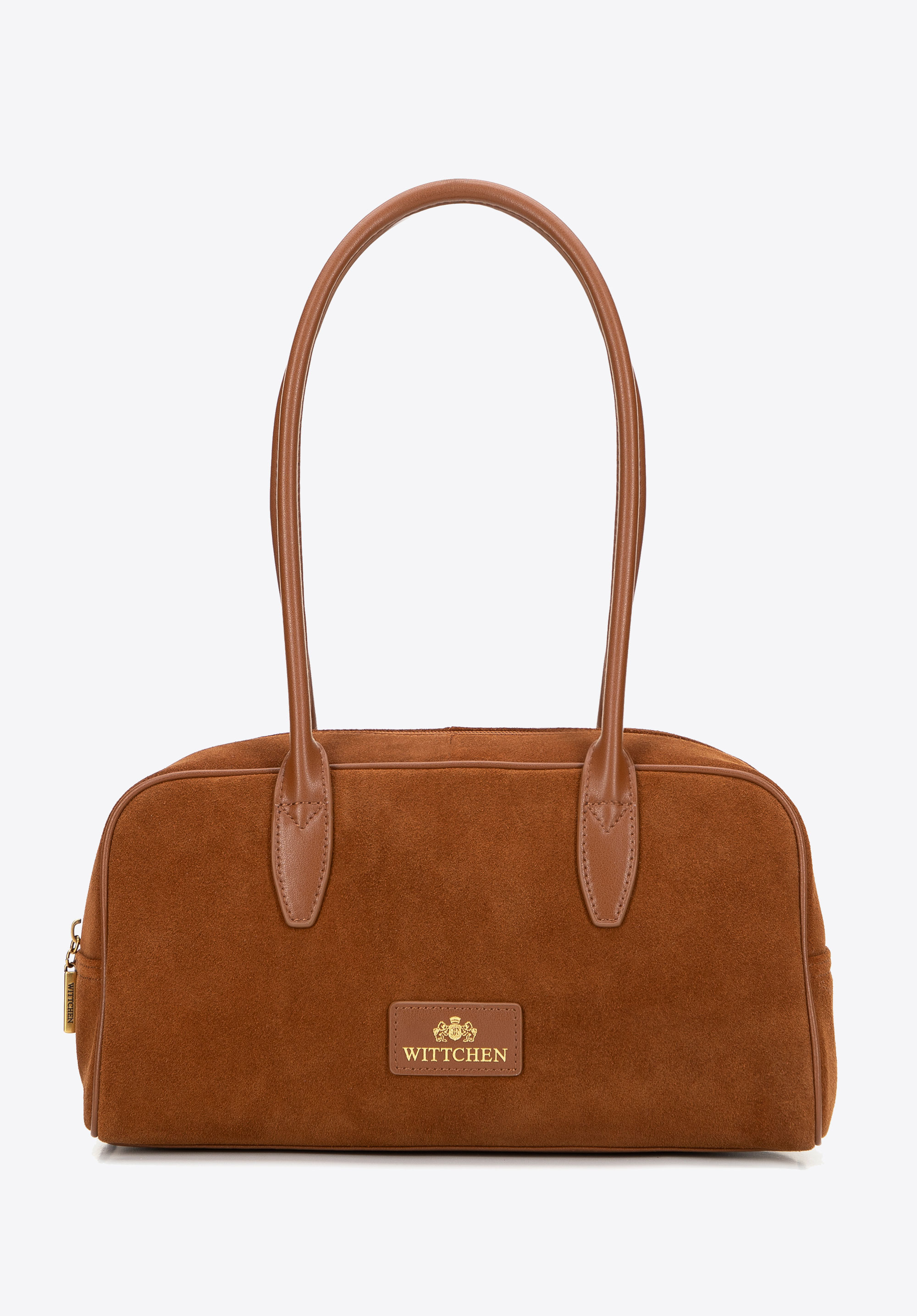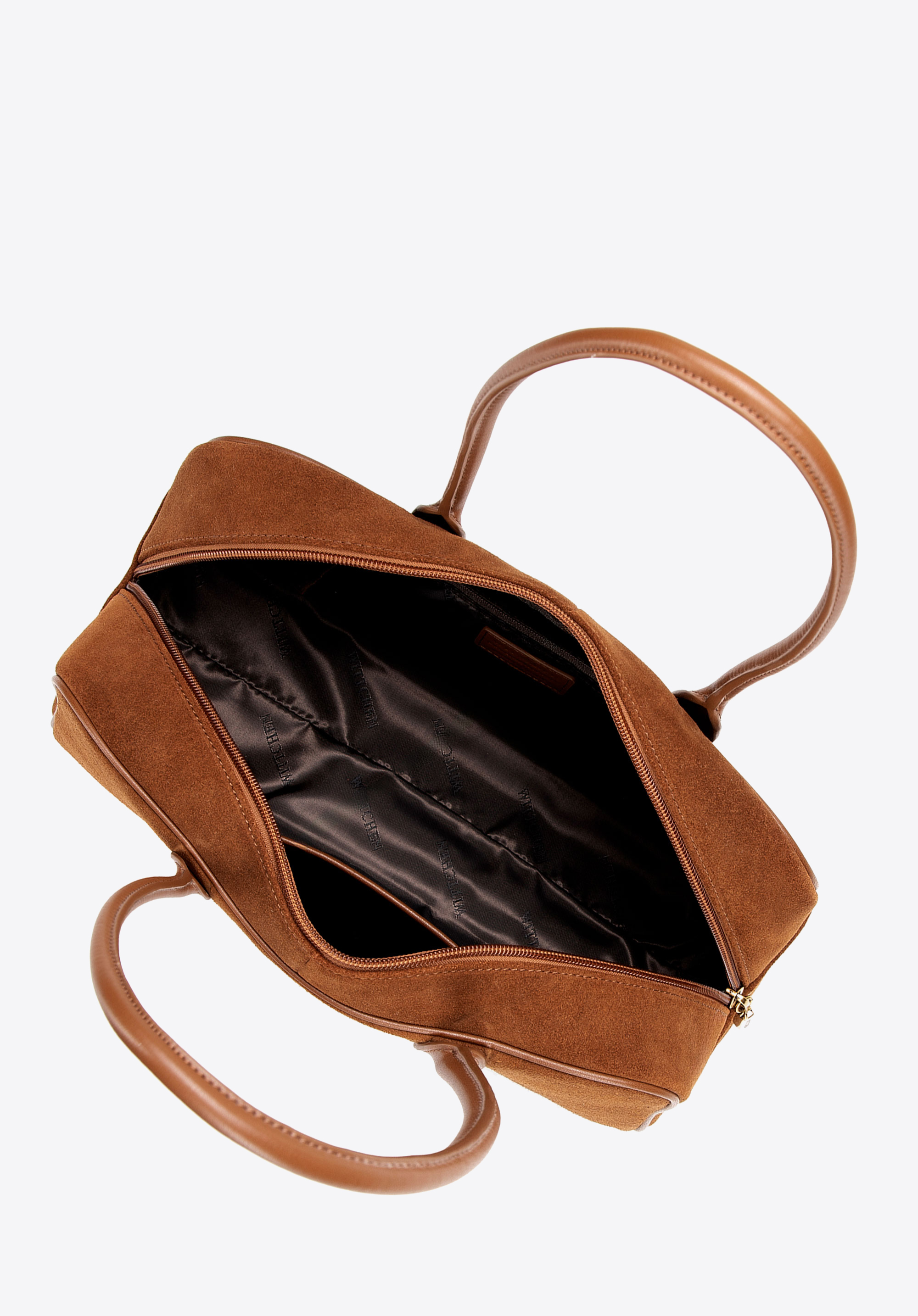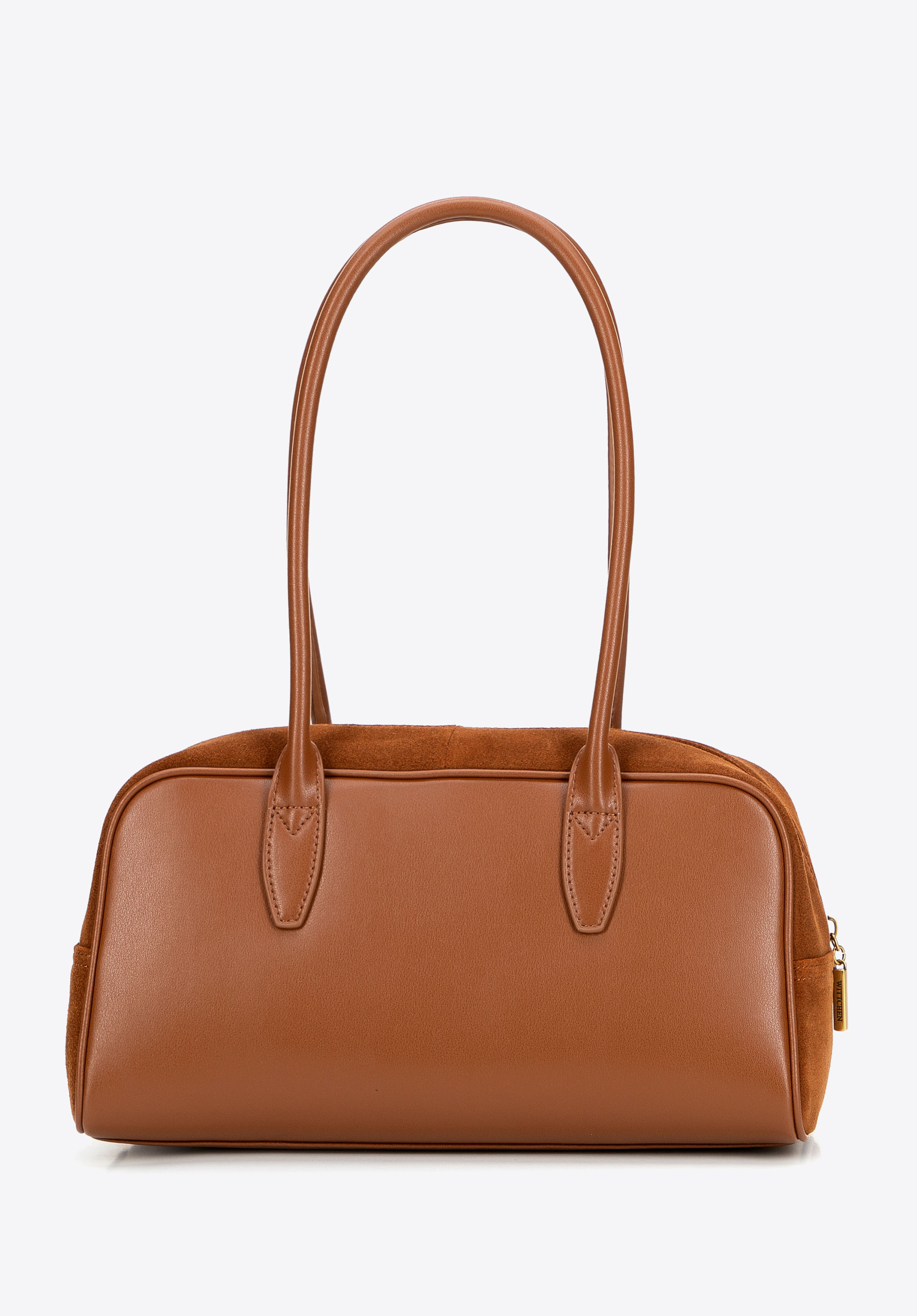- Materiał: Skóra naturalna w korpusie o dwóch fakturach – zamszowej i gładkiej – połączona z rączkami i eleganckimi detalami z imitacji skóry, które dodają szyku.