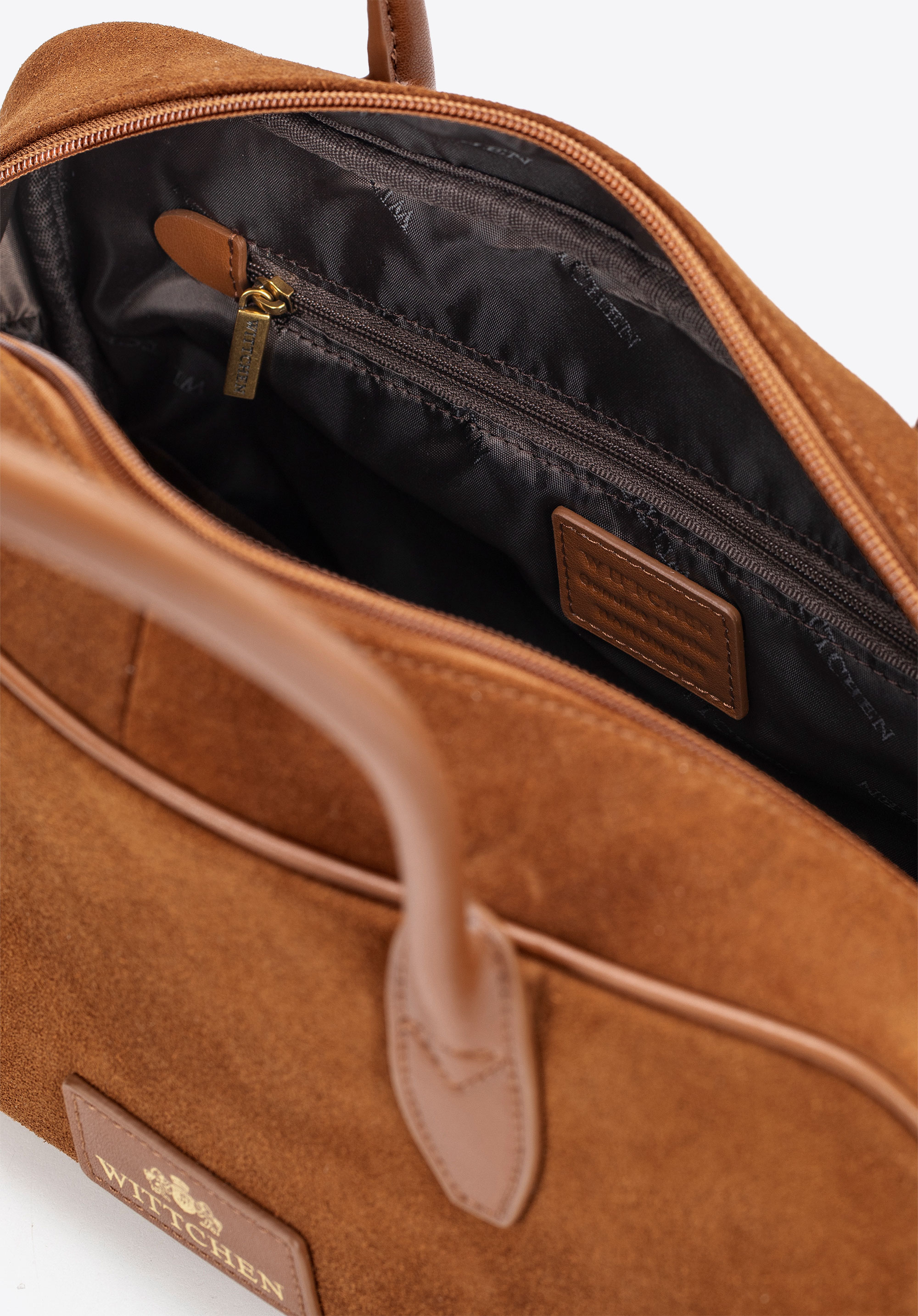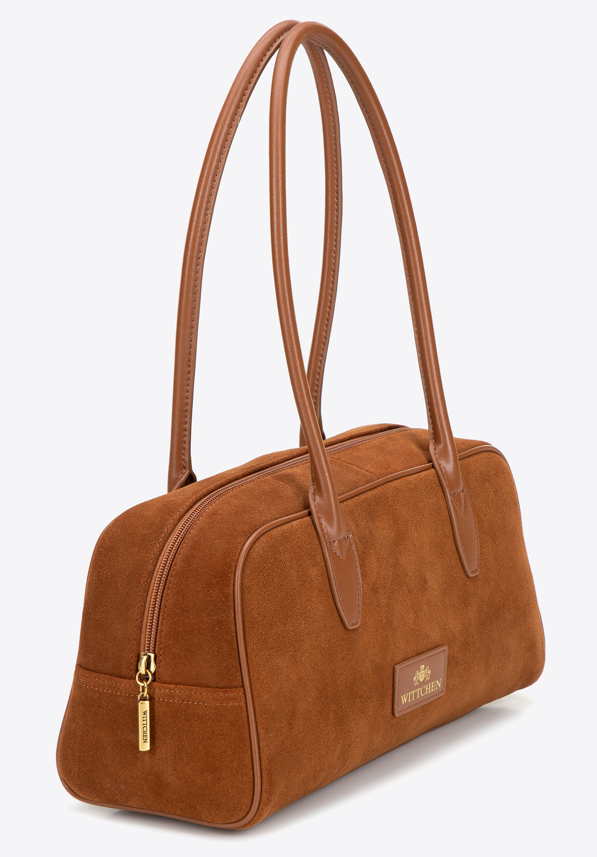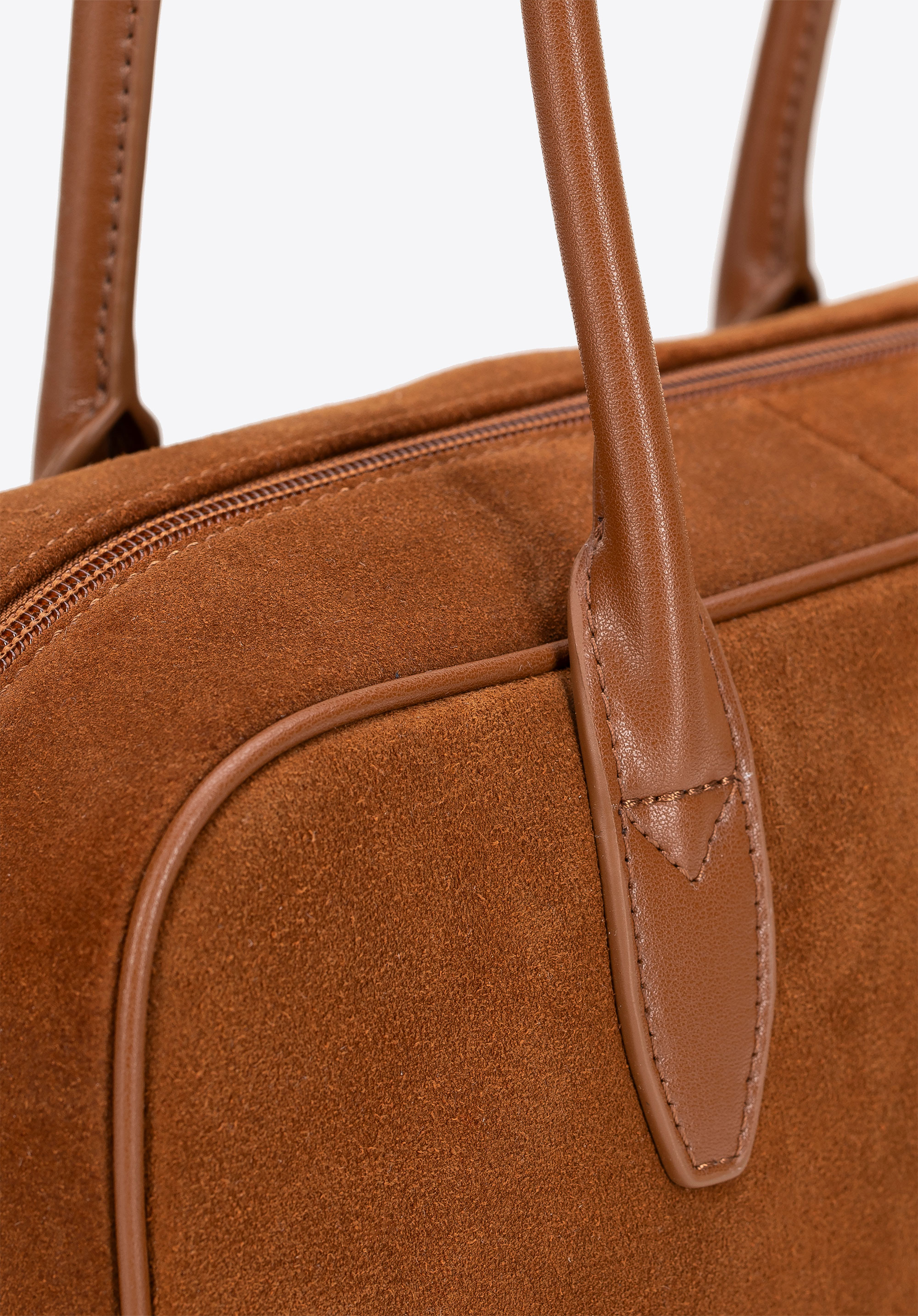 - Materiał: Skóra naturalna w korpusie o dwóch fakturach – zamszowej i gładkiej – połączona z rączkami i eleganckimi detalami z imitacji skóry, które dodają szyku.
