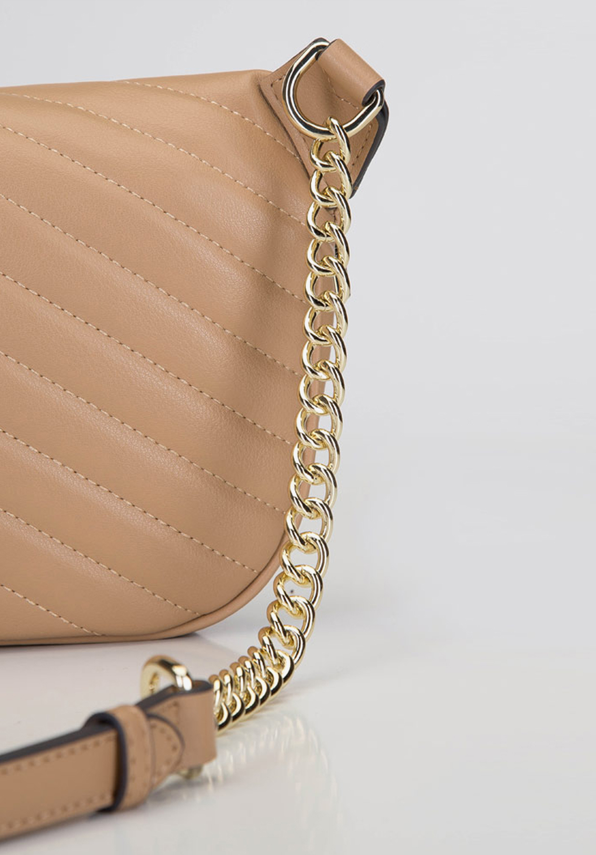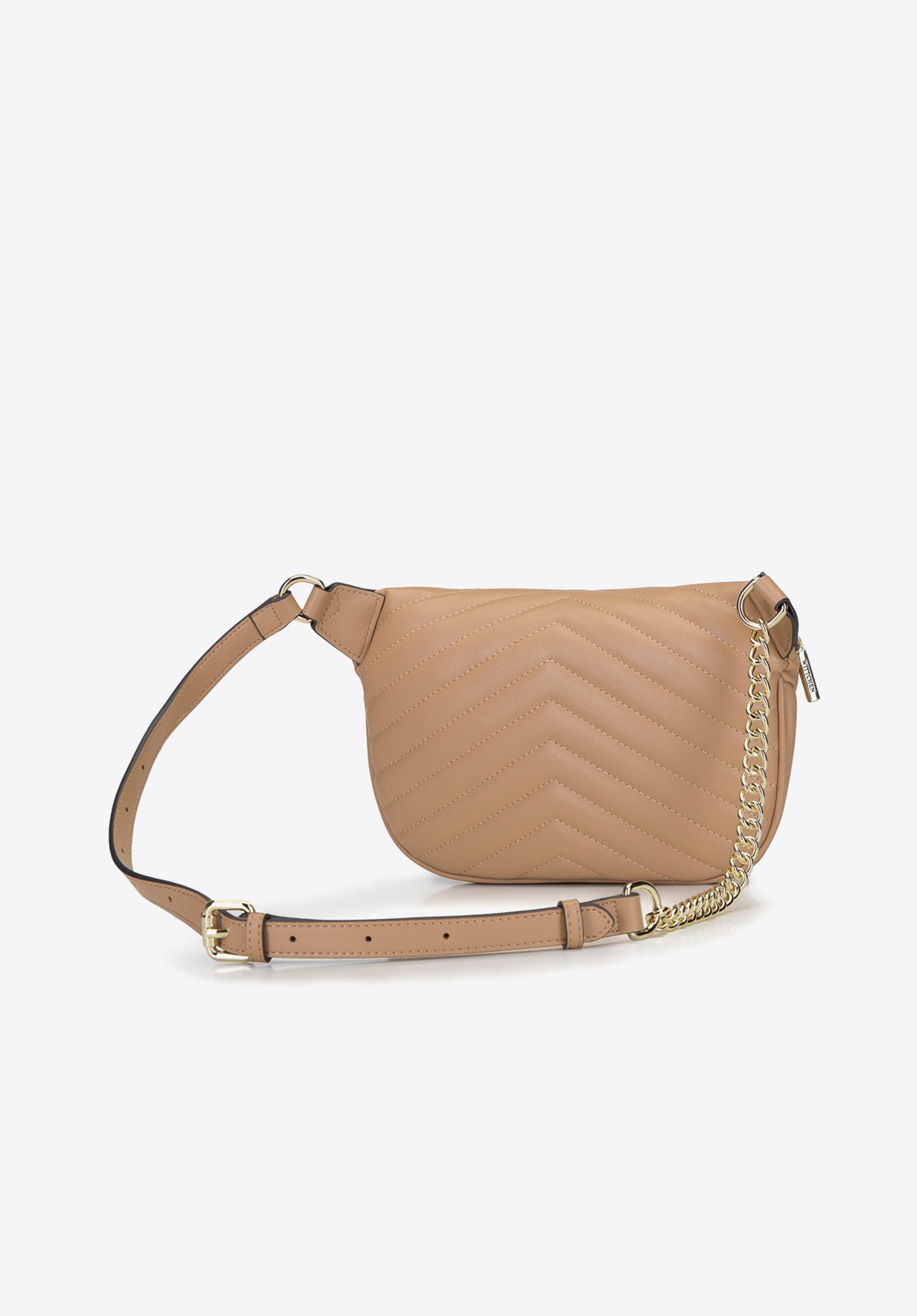 Ta torebka nerka – pomimo sportowego rodowodu – wygląda niezwykle szykownie i może być noszona do eleganckich ubrań. W przeciwieństwie do zwykłej torebki nerki, ten model jest naprawdę pakowny i pomieści dużo: portfel, telefon, klucze i drobne kosmetyki. Torebkę możesz nosić zapiętą wokół talii lub jak klasyczną listonoszkę – na jedno ramię lub na ukos, wystarczy, że wydłużysz pasek. Tak, czy tak, będzie wyglądała świetnie. Uszyta jest w całości z wysokiej jakości, gładkiej skóry, ozdobionej ukośnym pikowaniem. Dodatkowym zdobieniem jest pasek ze wstawką z łańcuszka o drobnych ogniwach. Ta torebka nerka z ukośnym pikowaniem nie tylko modnie wygląda, ale i jest bardzo funkcjonalna.