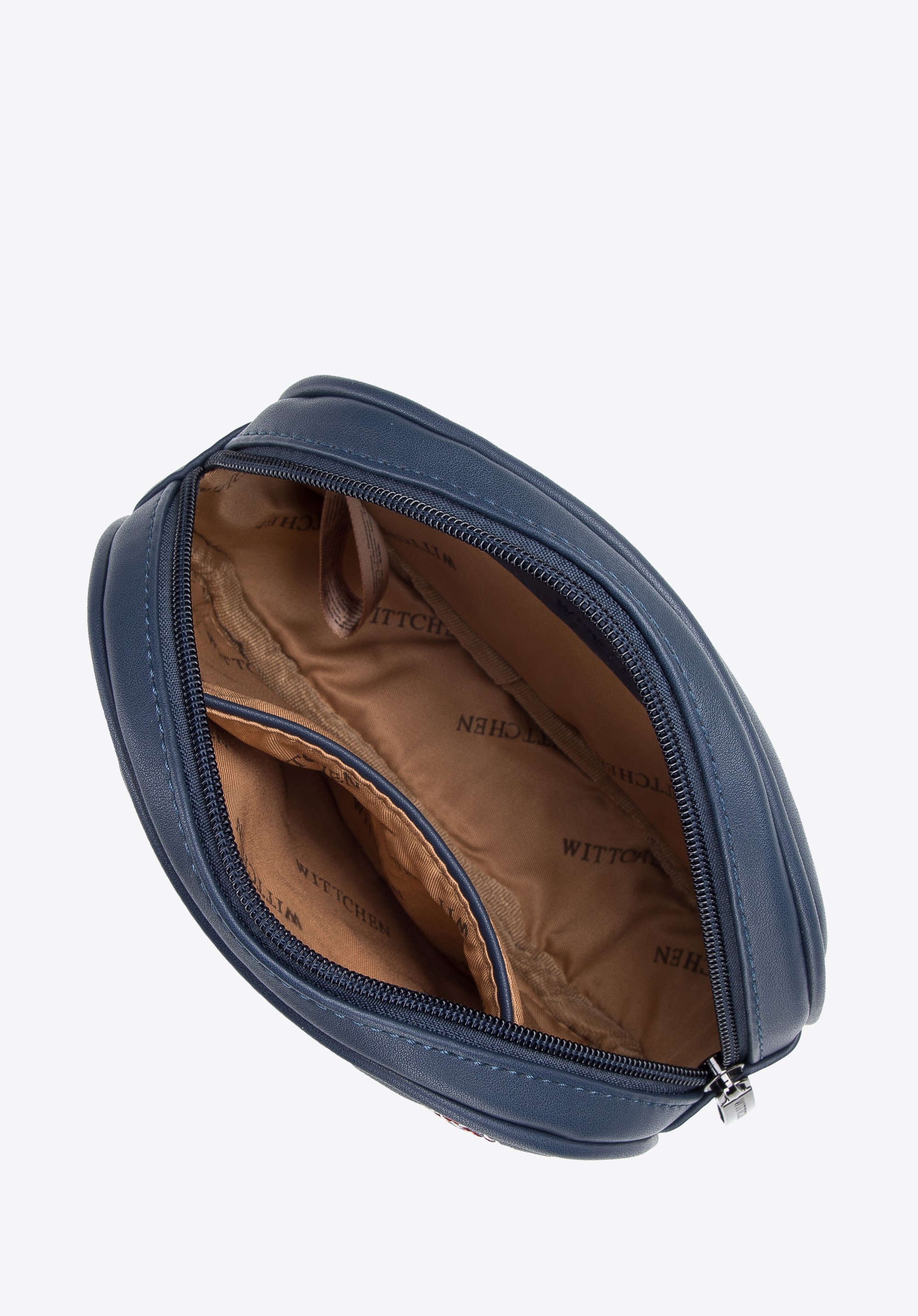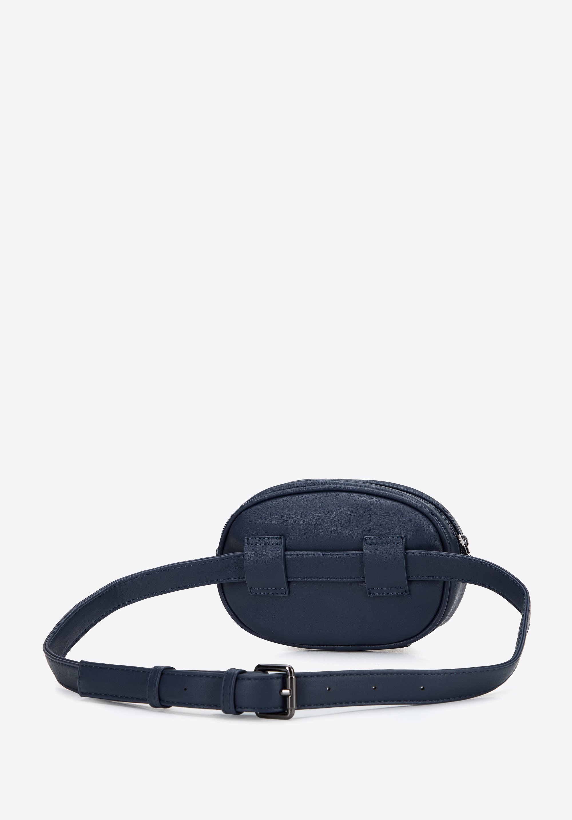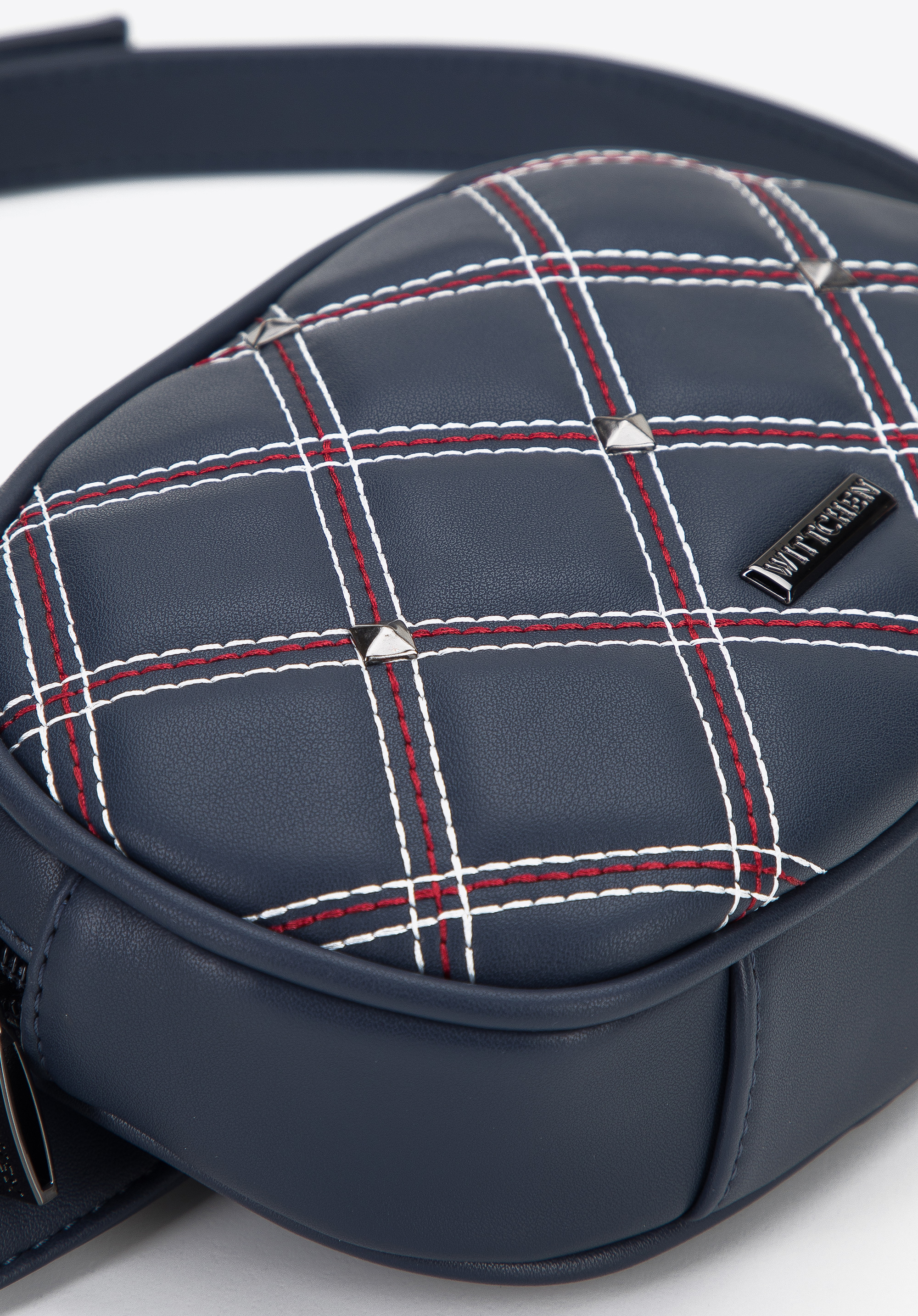 Damska torebka nerka z nitami i ozdobnymi przeszyciami granatowa