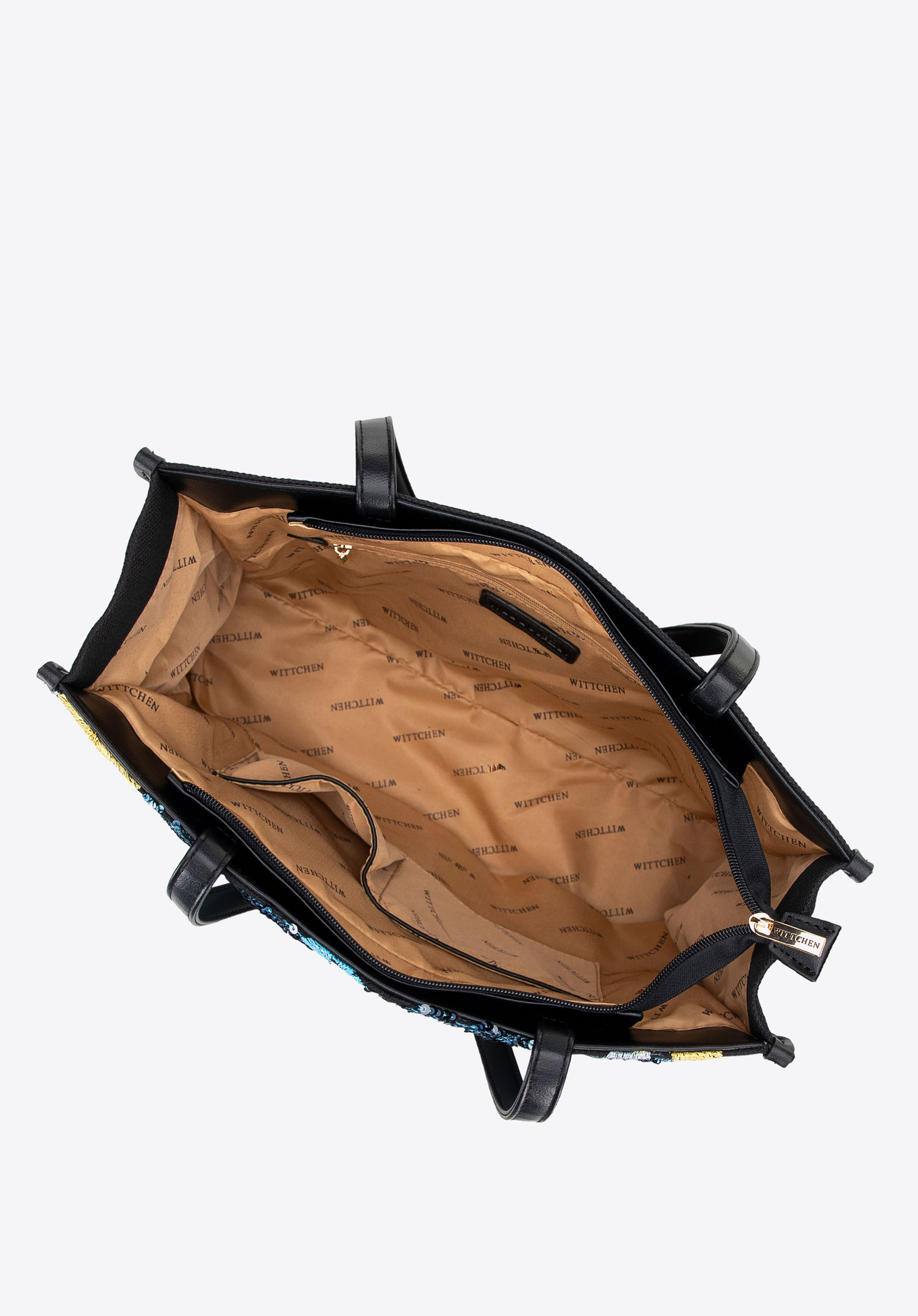 Przedstawiamy torebkę shopper, która wyróżnia się nowoczesnym designem i funkcjonalnością. Dzięki błyszczącemu motywowi w cekiny torebka staje się biżuterią, która dodaje blasku każdemu zestawieniu. Sztywny fason zapewnia elegancki wygląd, a przestronna konstrukcja pomieści format A4, co czyni ją doskonałą do pracy, na zakupy czy na spotkania. Dwie wygodne rączki umożliwiają noszenie torebki w ręce lub na ramieniu.