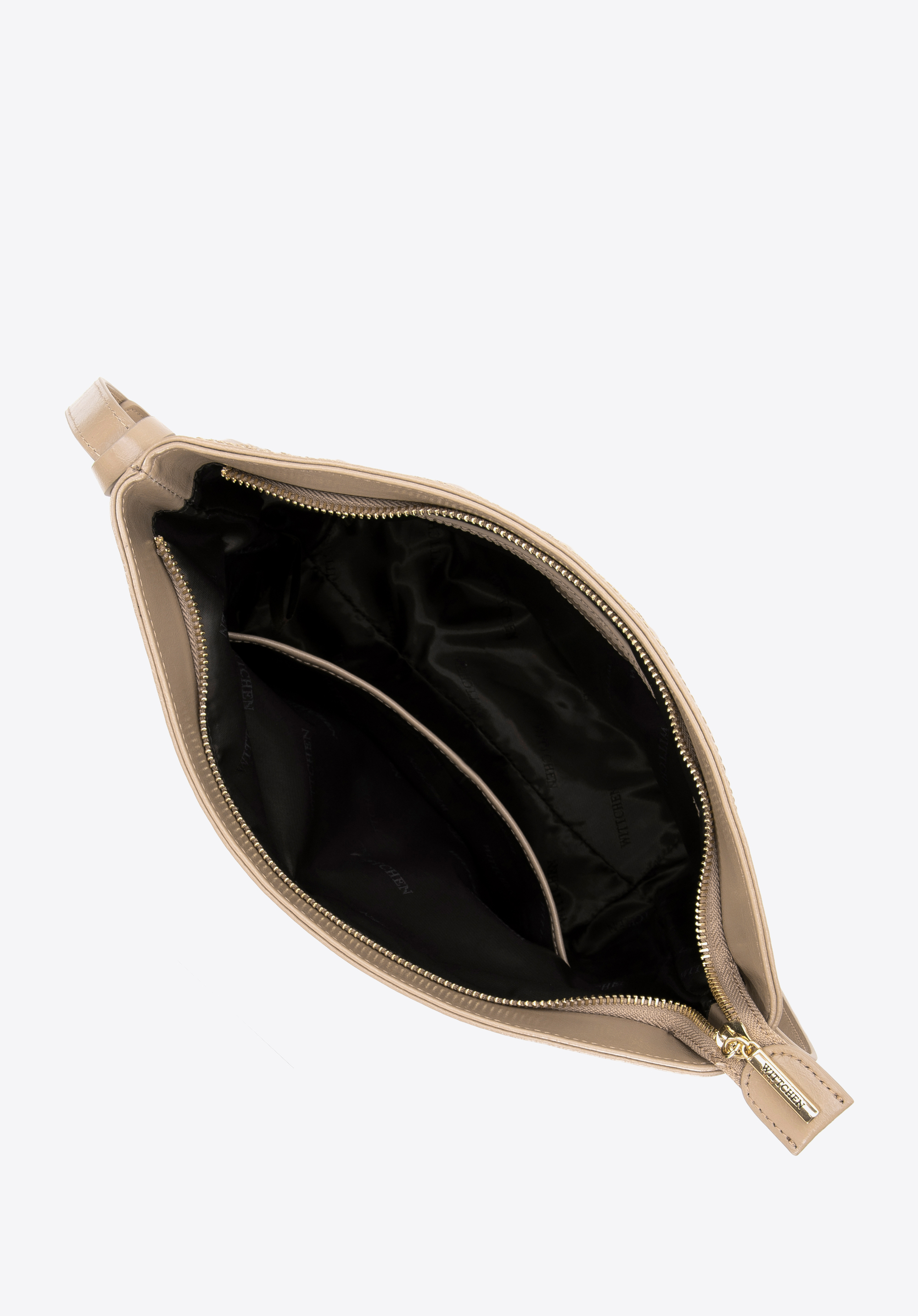 - Wnętrze: Torebka posiada kieszeń zamykaną na zamek i jedną otwartą kieszonkę na drobiazgi.