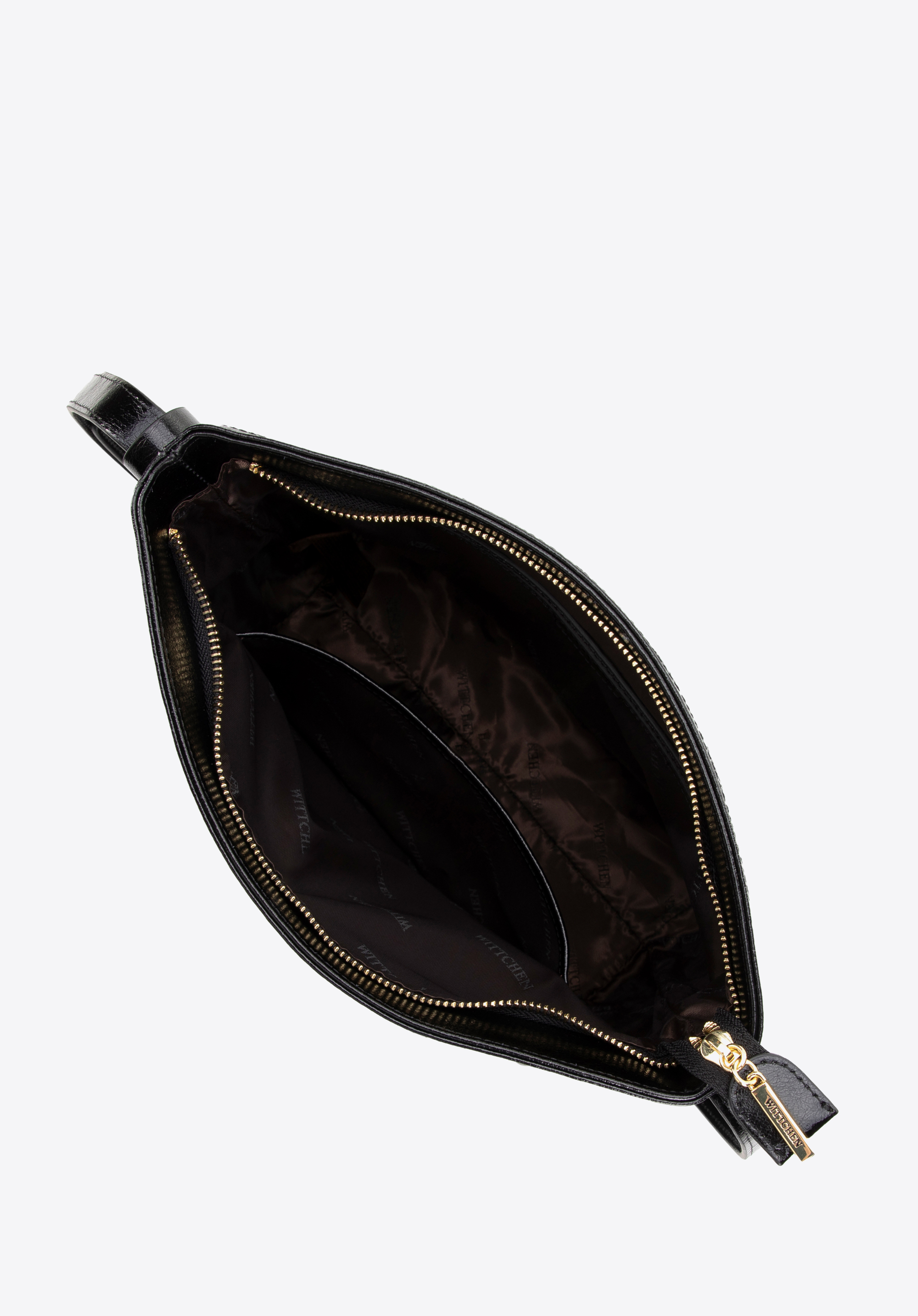 - Wnętrze: Torebka posiada kieszeń zamykaną na zamek i jedną otwartą kieszonkę na drobiazgi.