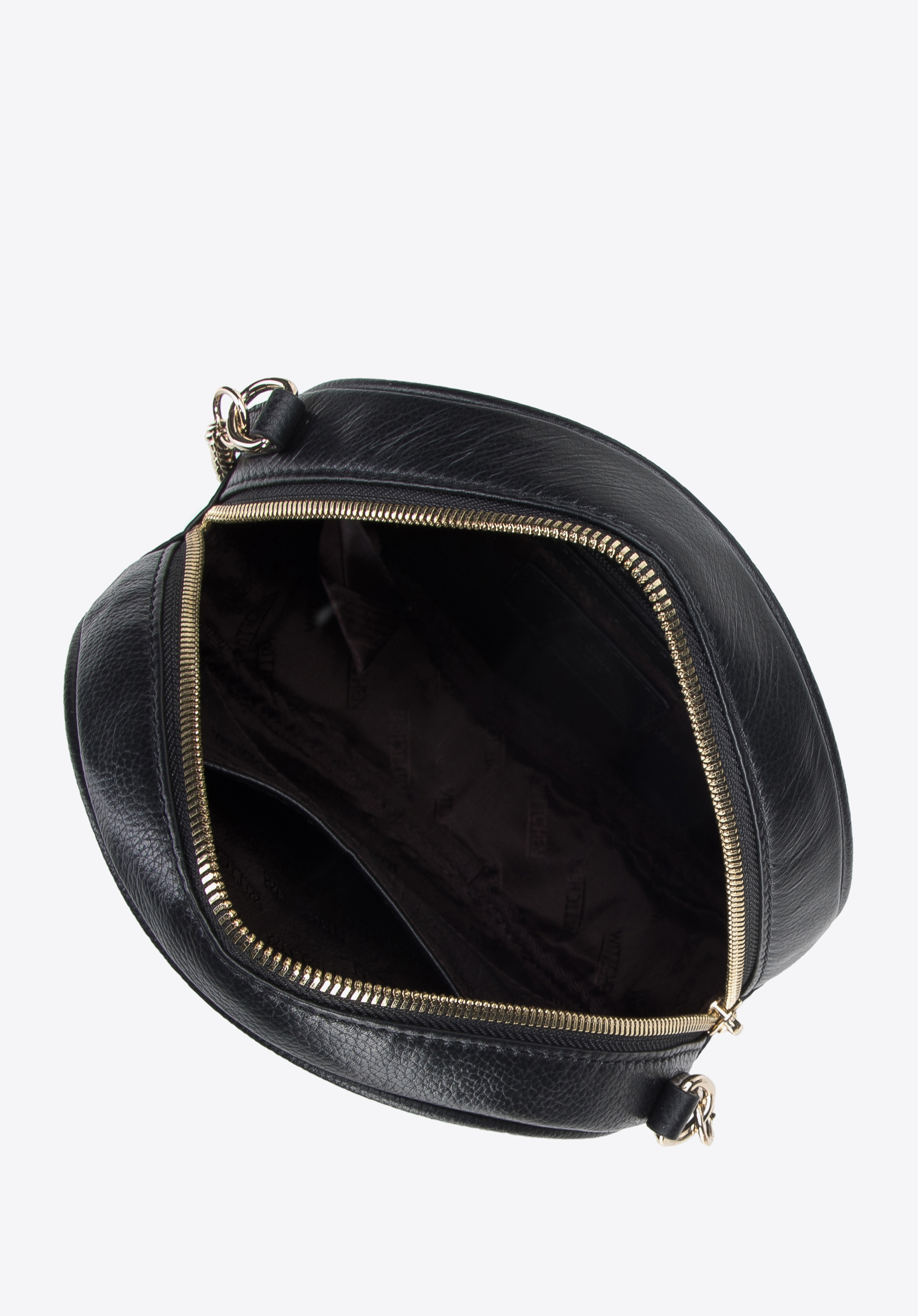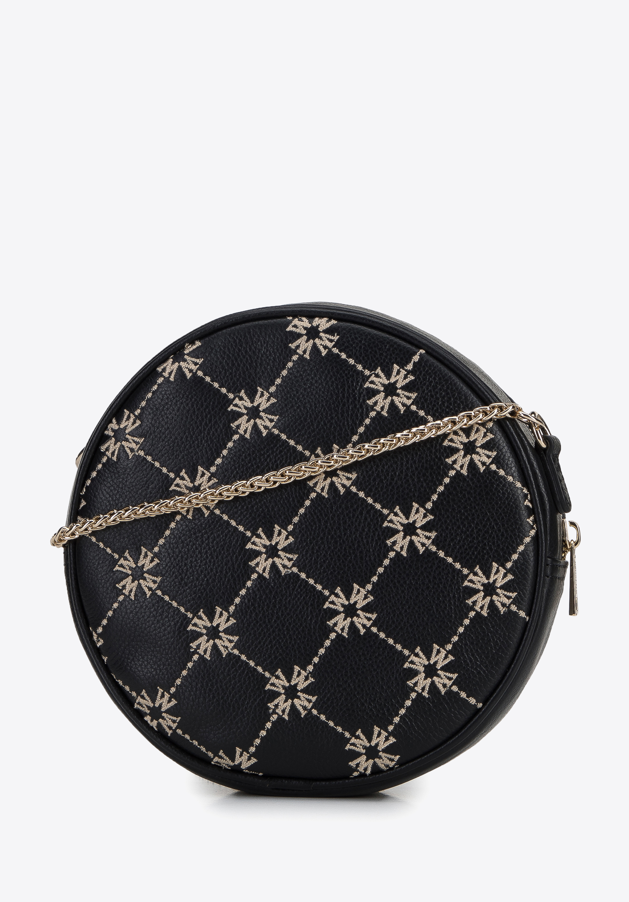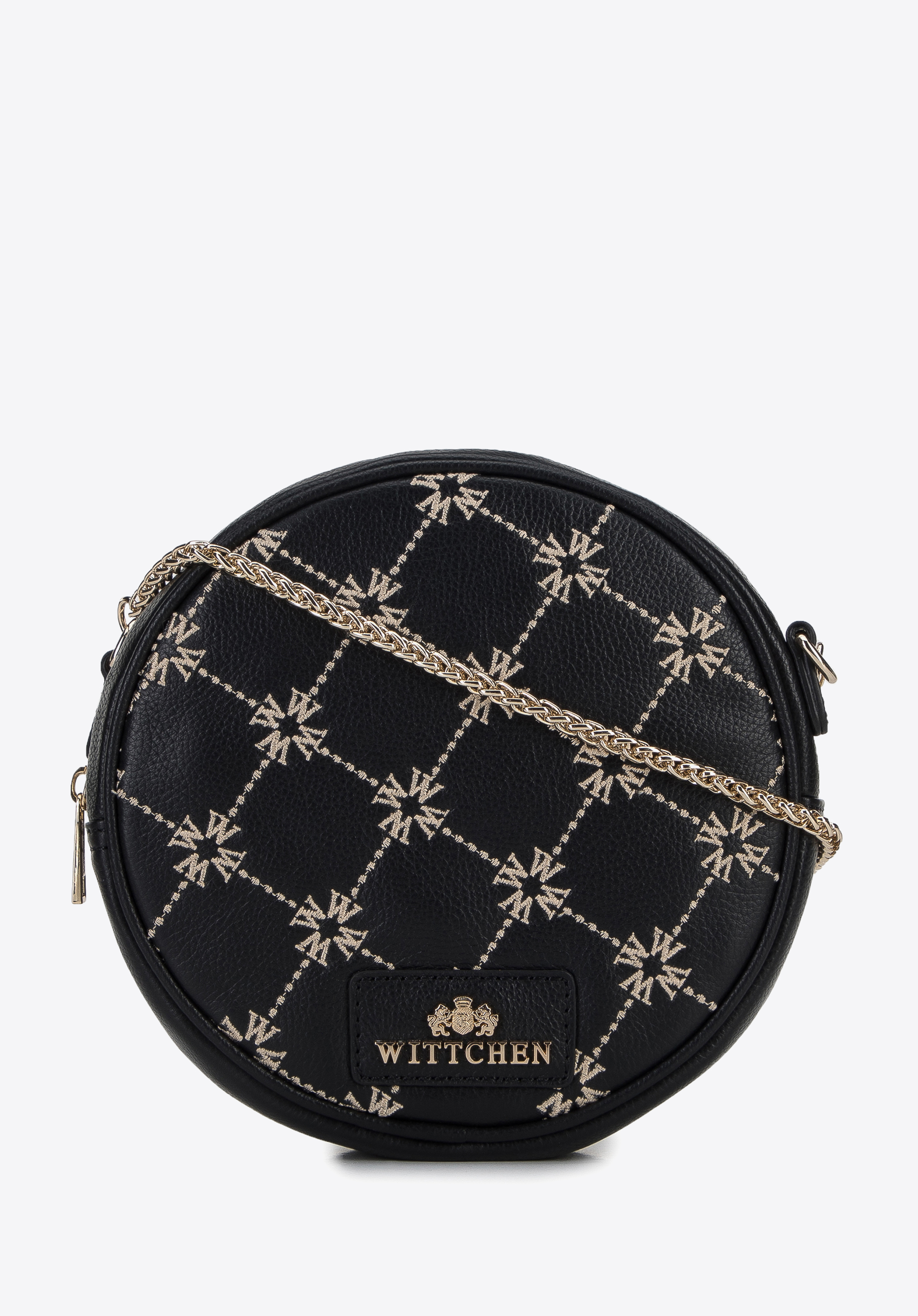 zdobi ją haftowany monogram WITTCHEN w kolorze beżowym, który nadaje całości eleganckiego charakteru. W środku zmieścisz portfel, telefon, zapasowe rękawiczki i kilka drobiazgów. Ten model będzie świetnym dopełnieniem koronkowej sukienki na eleganckie przyjęcia, możesz go również nosić do ulubionych dżinsów i koszuli. Okrągła