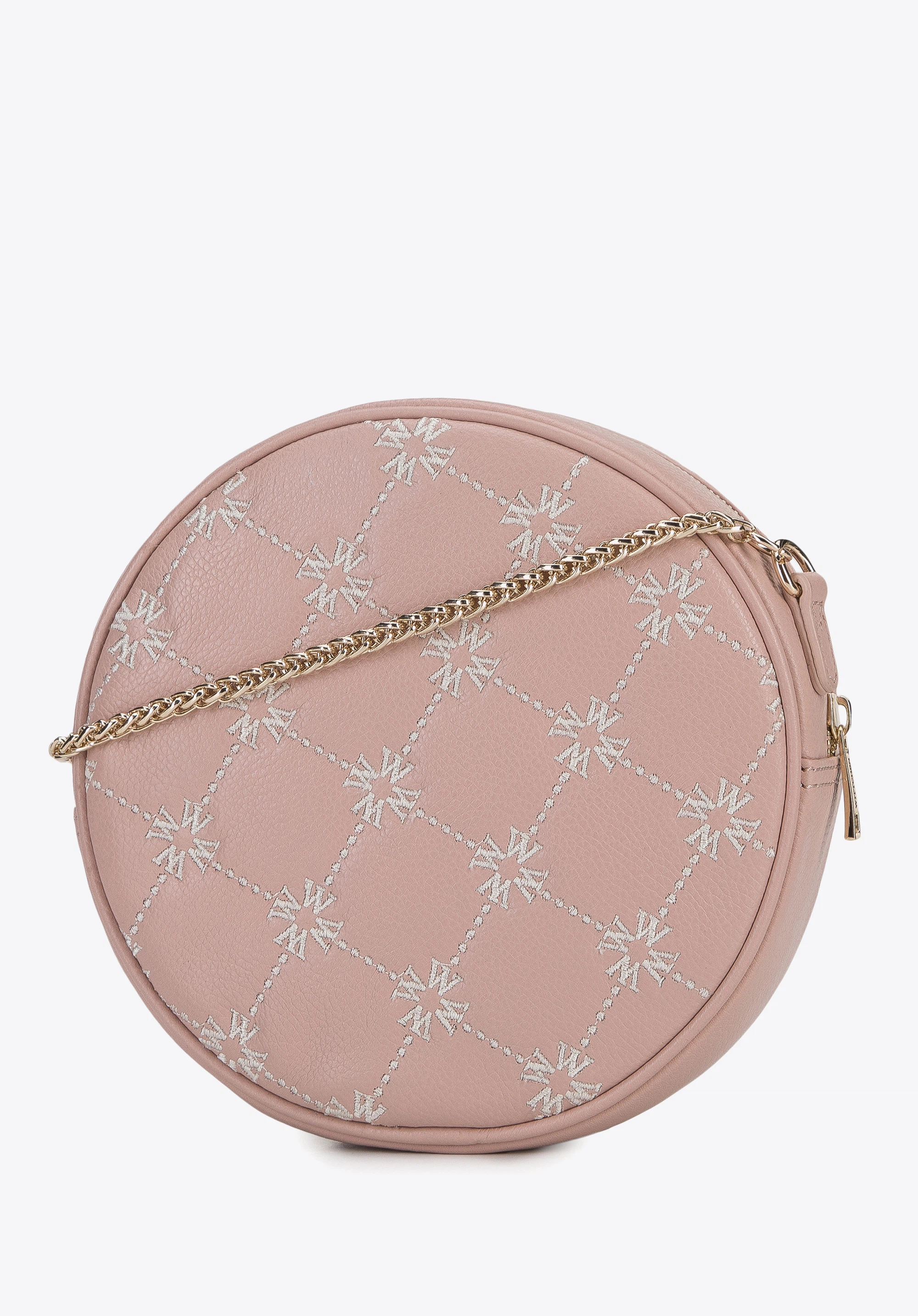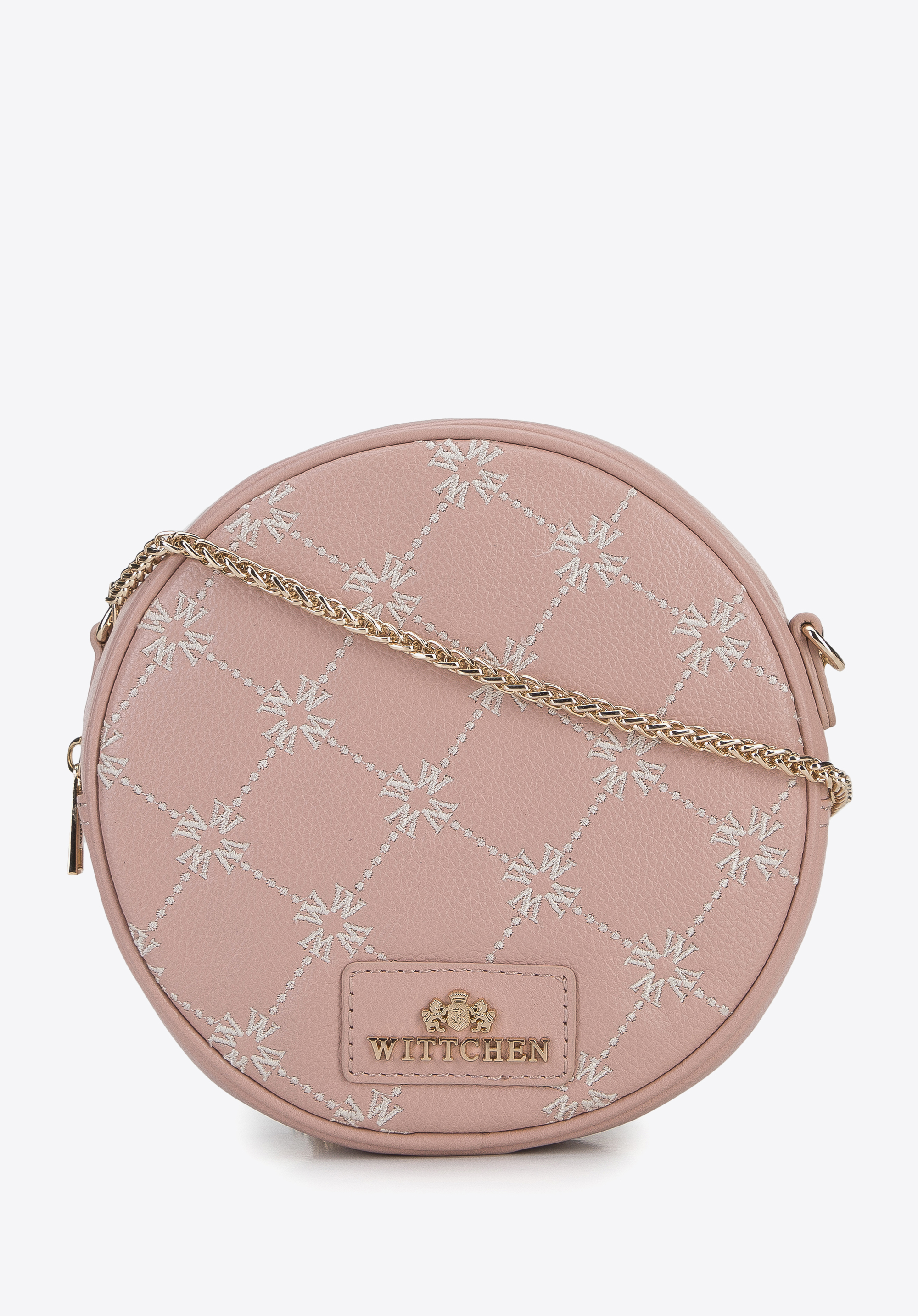 zdobi ją haftowany monogram WITTCHEN w kolorze beżowym, który nadaje całości eleganckiego charakteru. W środku zmieścisz portfel, telefon, zapasowe rękawiczki i kilka drobiazgów. Ten model będzie świetnym dopełnieniem koronkowej sukienki na eleganckie przyjęcia, możesz go również nosić do ulubionych dżinsów i koszuli. Okrągła