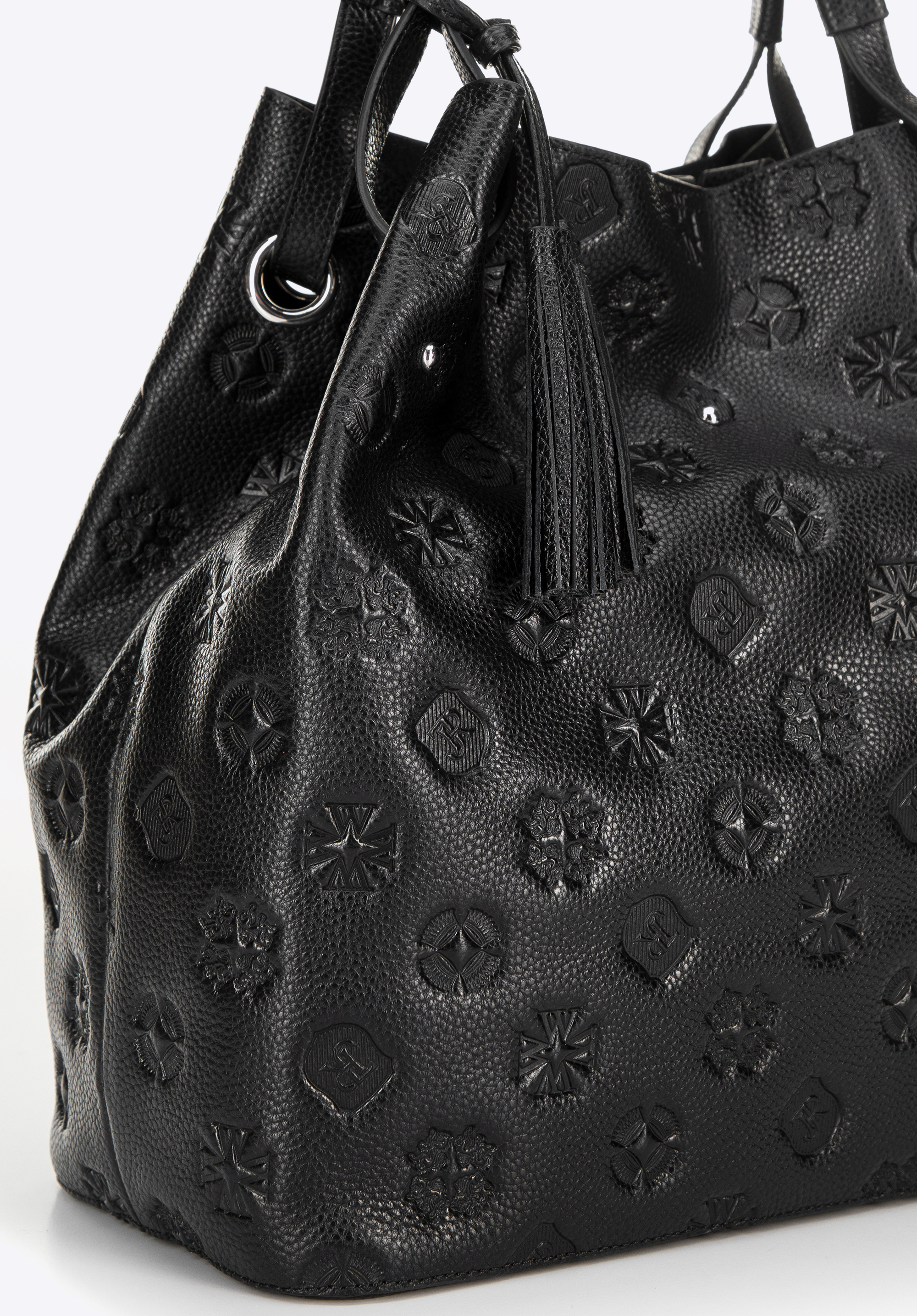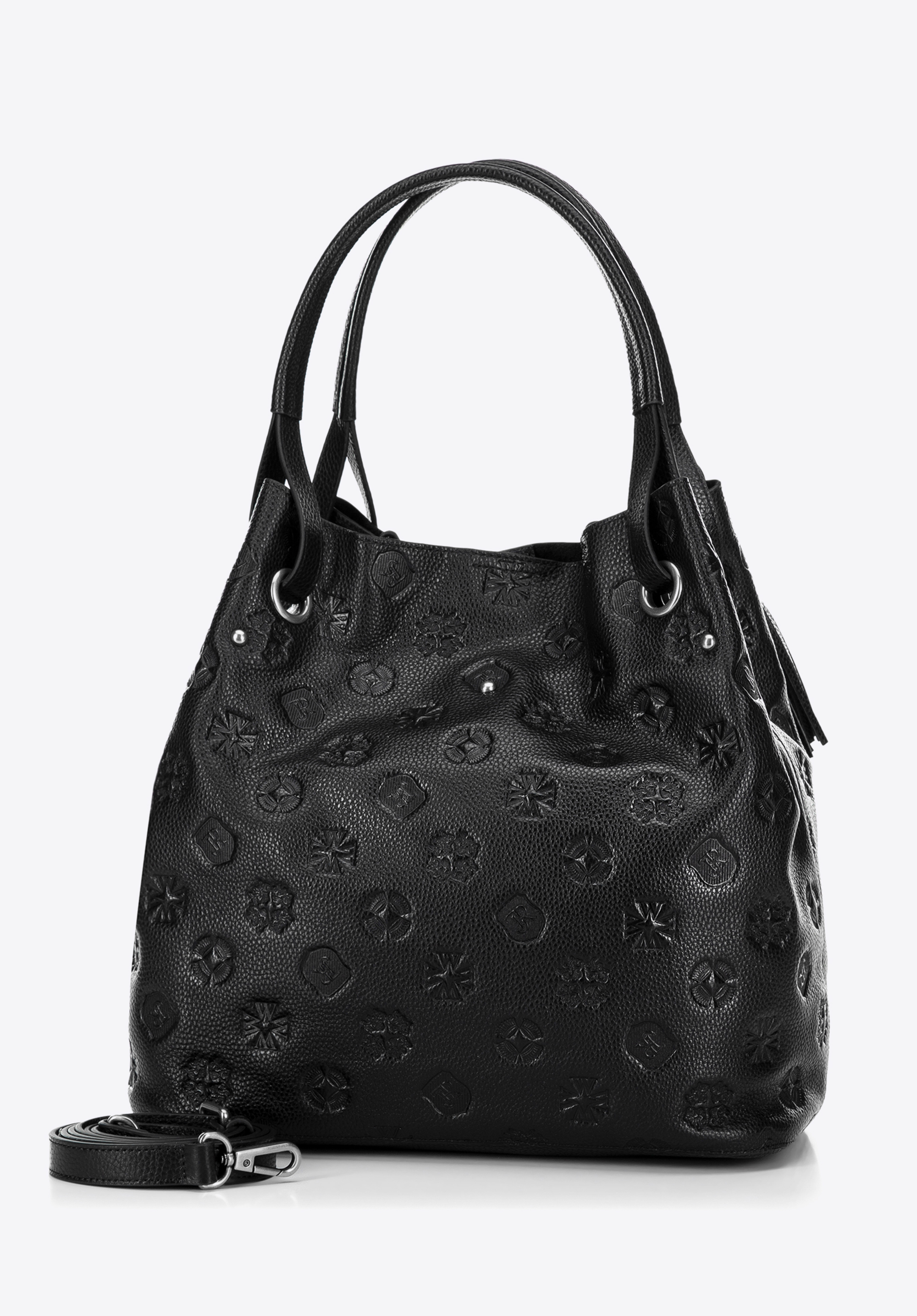 Nasza torebka typu worek to połączenie luksusowego designu i funkcjonalności. Wykonana z wysokiej jakości skóry naturalnej, zachwyca trwałością oraz eleganckim wykończeniem. Model sygnowany tłoczonym monogramem producenta nadaje prestiżowego charakteru, a regulowany, odpinany pasek pozwala dopasować torebkę do Twojego stylu i potrzeb. Dodatkowym atutem jest możliwość zmiany fasonu – wewnętrzne paski na zatrzaski umożliwiają dostosowanie kształtu torebki do Twojej stylizacji.