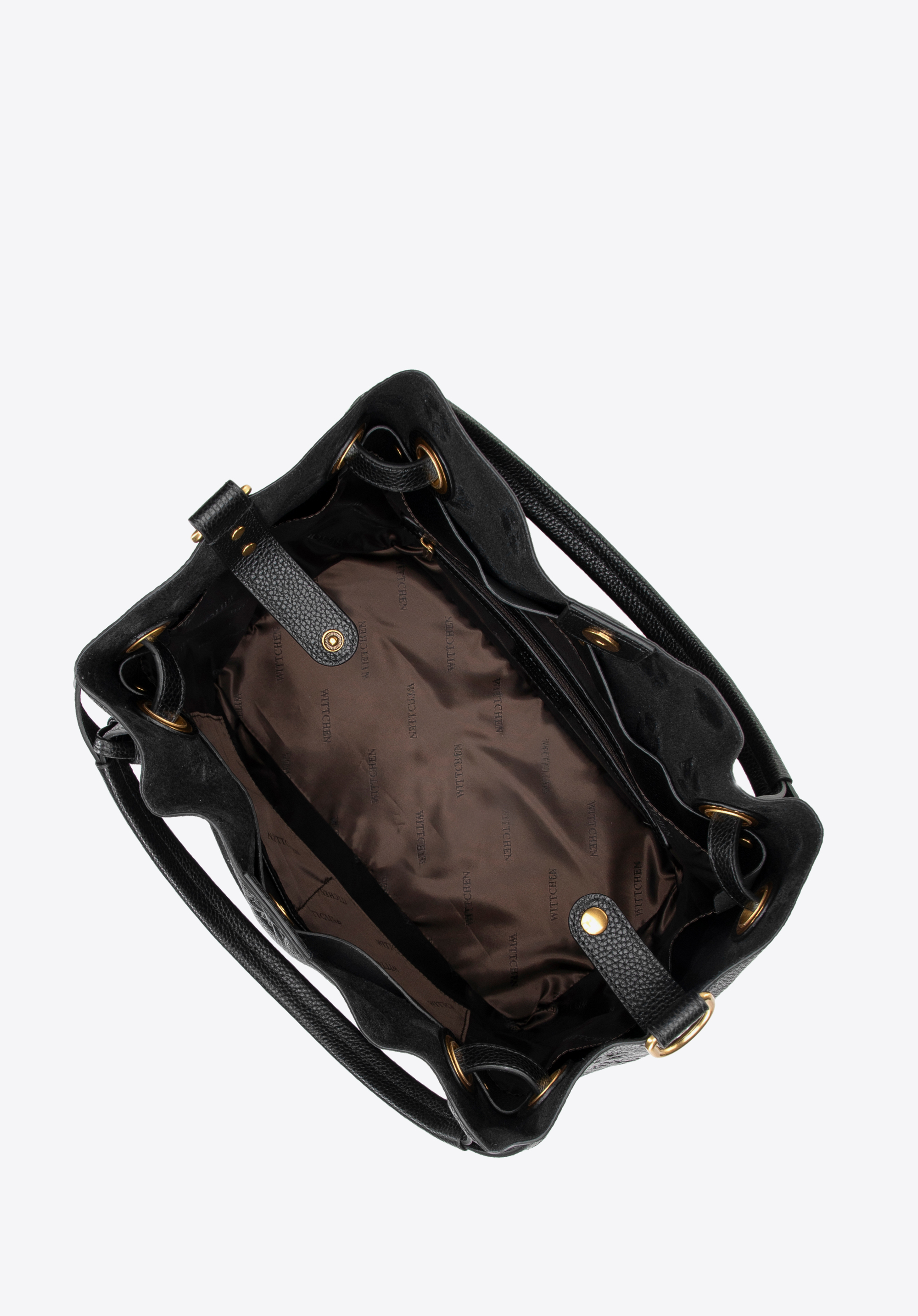 - Możliwość zmiany fasonu: Wewnętrzne paski zapinane na zatrzask pozwalają na zmianę kształtu torebki, dostosowując ją do okazji lub nastroju.
