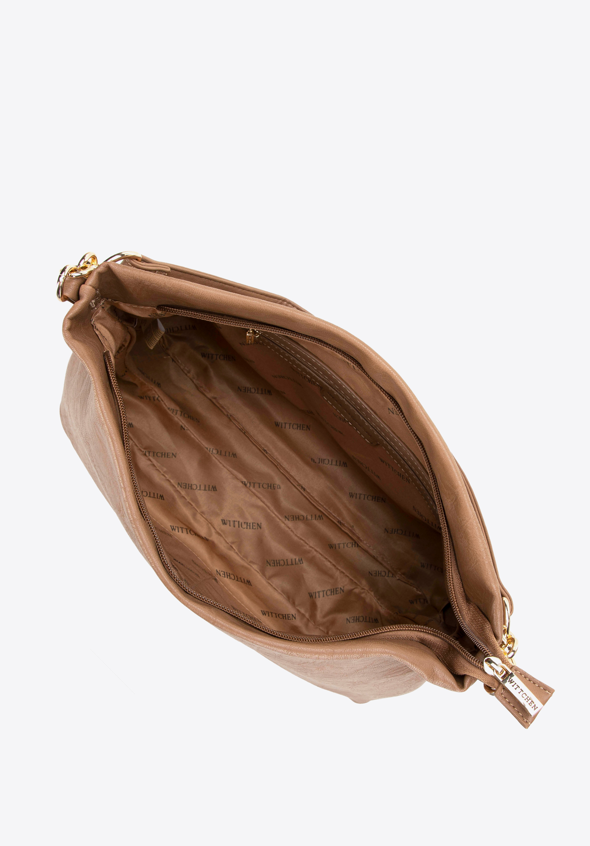 - Przestronne wnętrze: Kieszeń na zamek oraz dwie otwarte przegródki pozwalają na uporządkowanie drobiazgów, dzięki czemu klucze, telefon czy portfel są zawsze na swoim miejscu, co zapewnia wygodę i porządek.