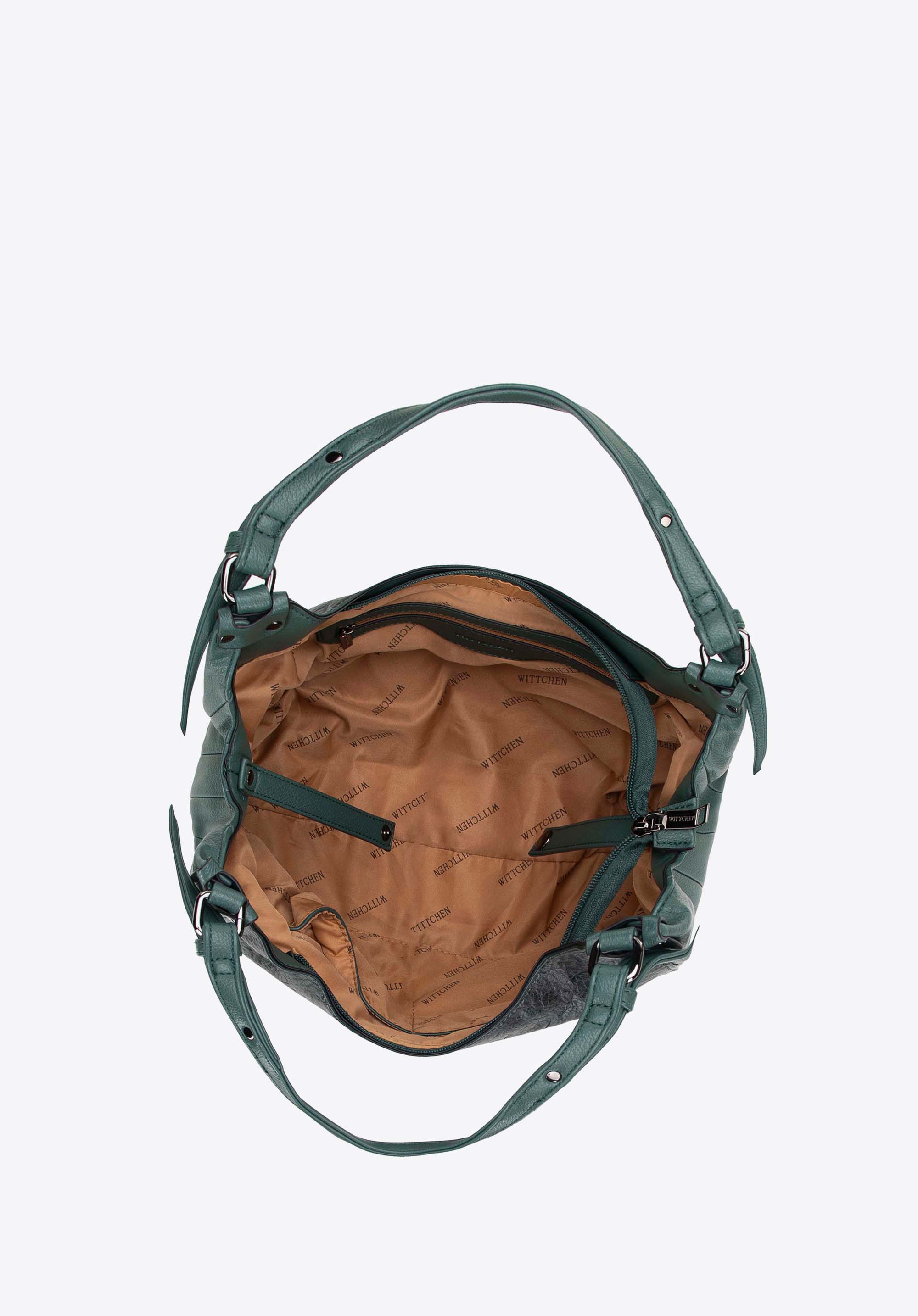 - Detale: Stylowe nity na rączkach oraz przeszycia na bokach dodają torebce wyjątkowego charakteru.