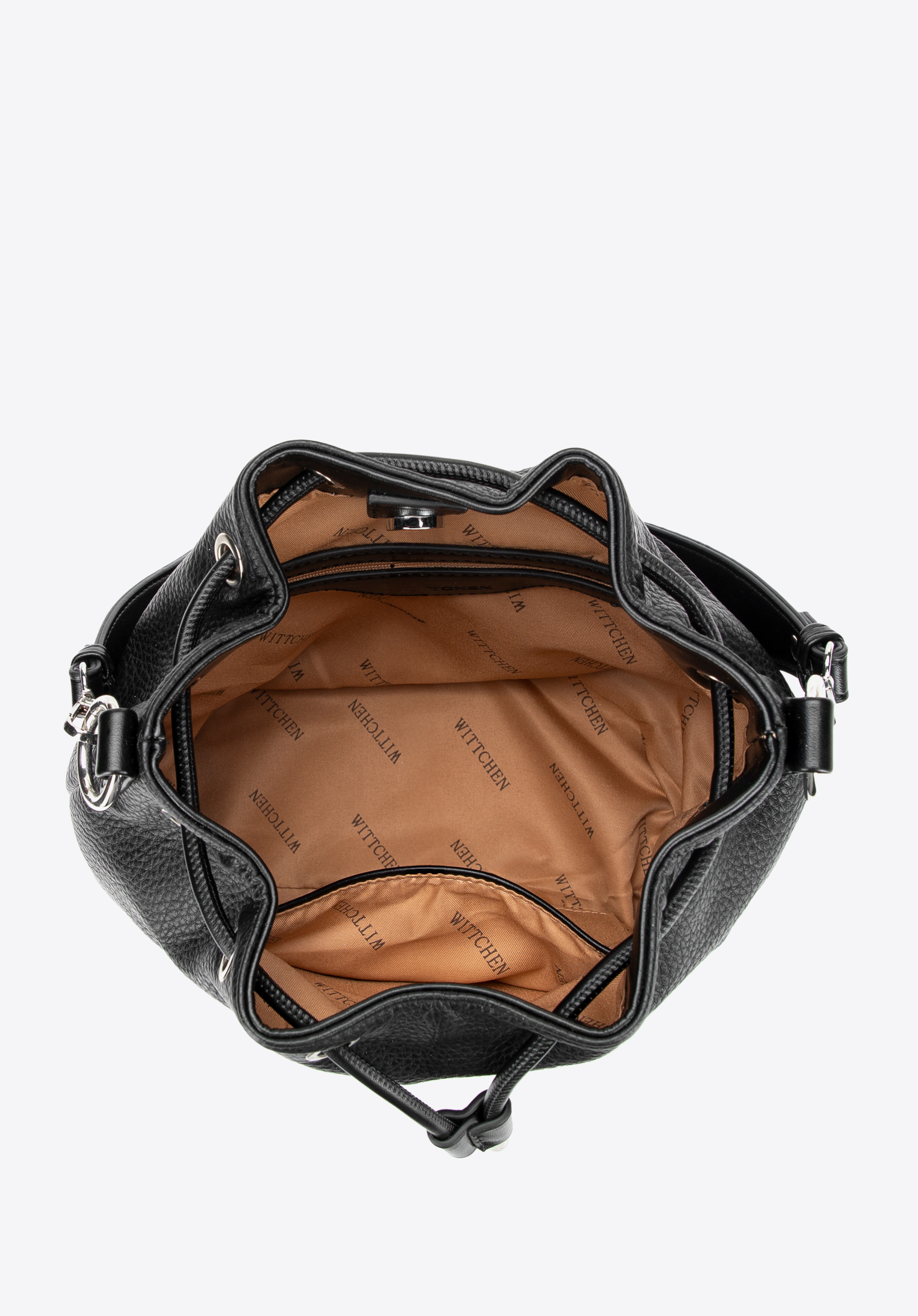 Połącz stylowy wygląd z praktycznością dzięki tej wyjątkowej torebce typu worek. Jej charakterystyczny kształt przyciąga wzrok, a odpinana rączka pozwala wygodnie nosić torbę w dłoni. Zapięcie na magnes i ściągacz chroni zawartość, a wnętrze z dwiema kieszeniami, w tym jedną na zamek, pomaga utrzymać porządek i szybki dostęp do najważniejszych drobiazgów.