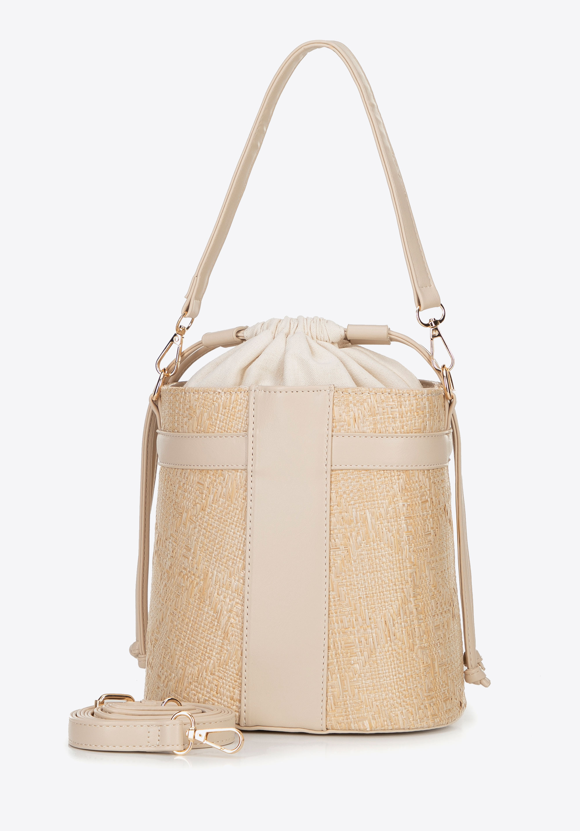 Nasza torebka worek to połączenie nowoczesnego designu z praktycznymi rozwiązaniami. Wykonana z plecionki (polipropylen) i ekoskóry, charakteryzuje się wyjątkową trwałością oraz lekkością. Zapinana na troczek, zapewnia łatwy dostęp do wnętrza, a jej kształt sprawia, że jest wygodna w użytkowaniu. Wewnątrz znajdują się dwie kieszenie, w tym jedna na zamek, co pozwala na wygodne przechowywanie drobnych przedmiotów. Z przodu torebki znajduje się subtelne logo producenta, a odpinany i regulowany pasek umożliwia dostosowanie długości do Twoich potrzeb.