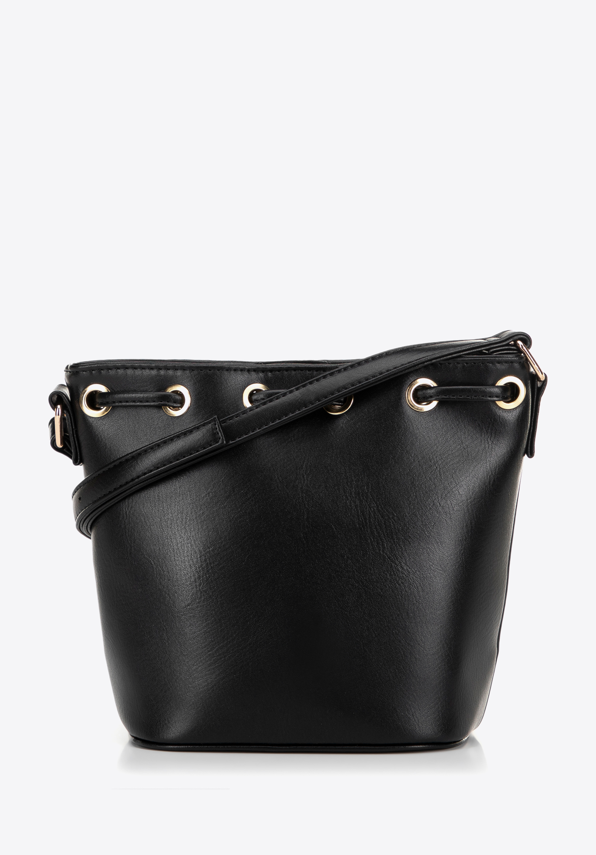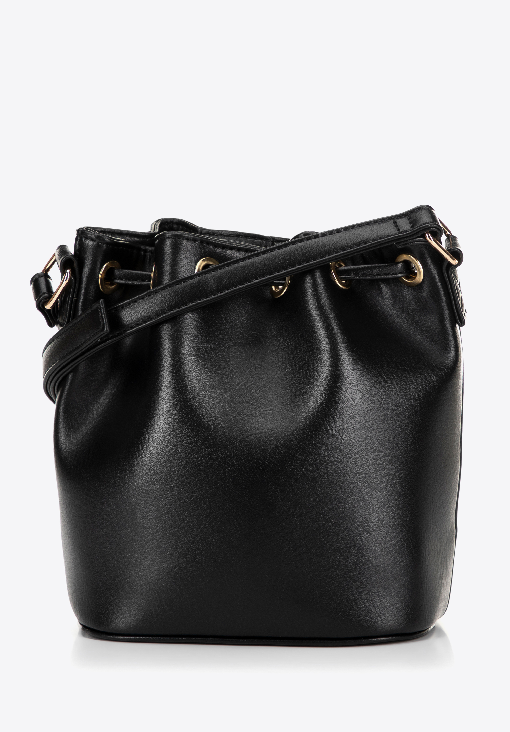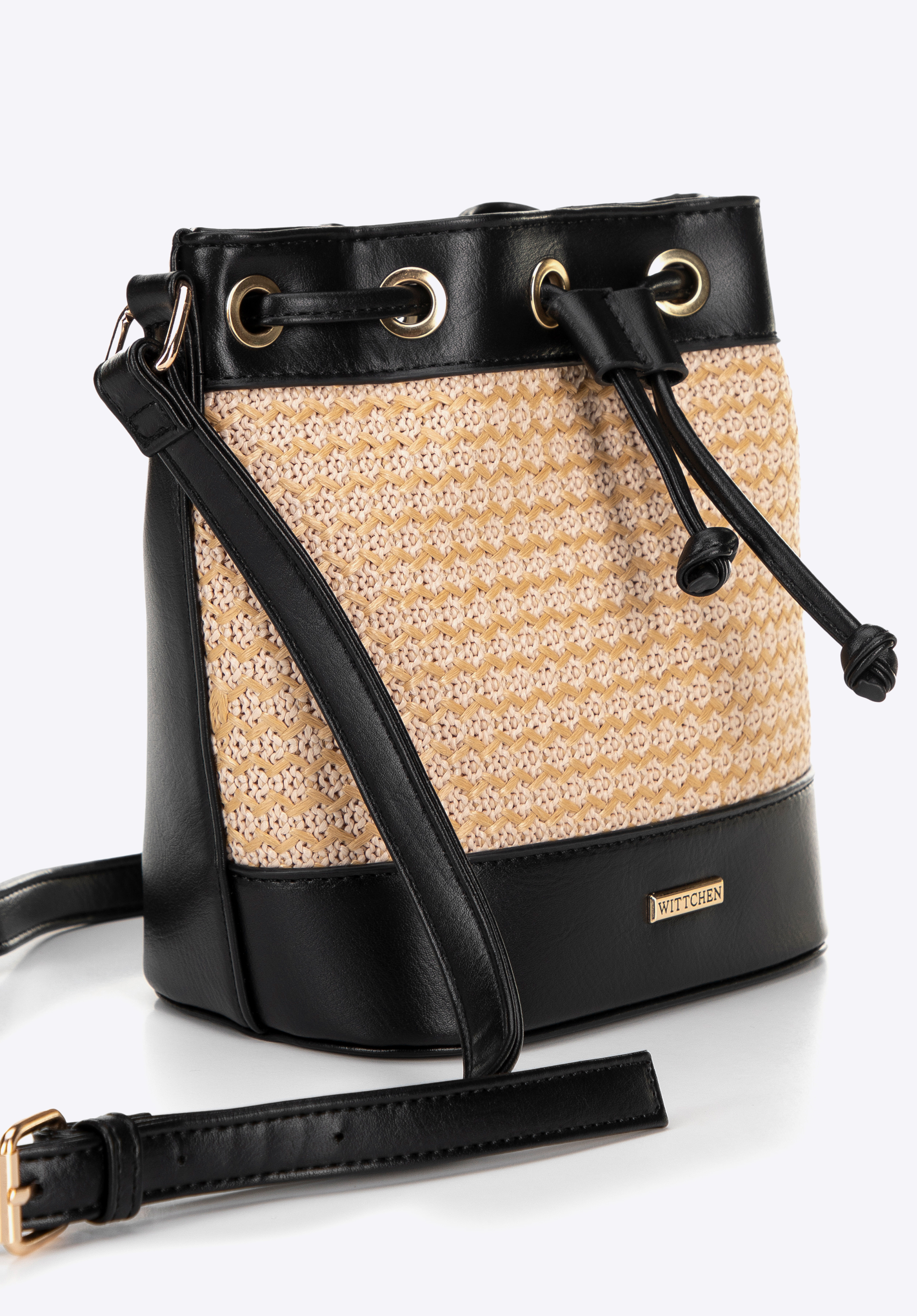 Damska torebka worek z plecionki czarno - beżowa