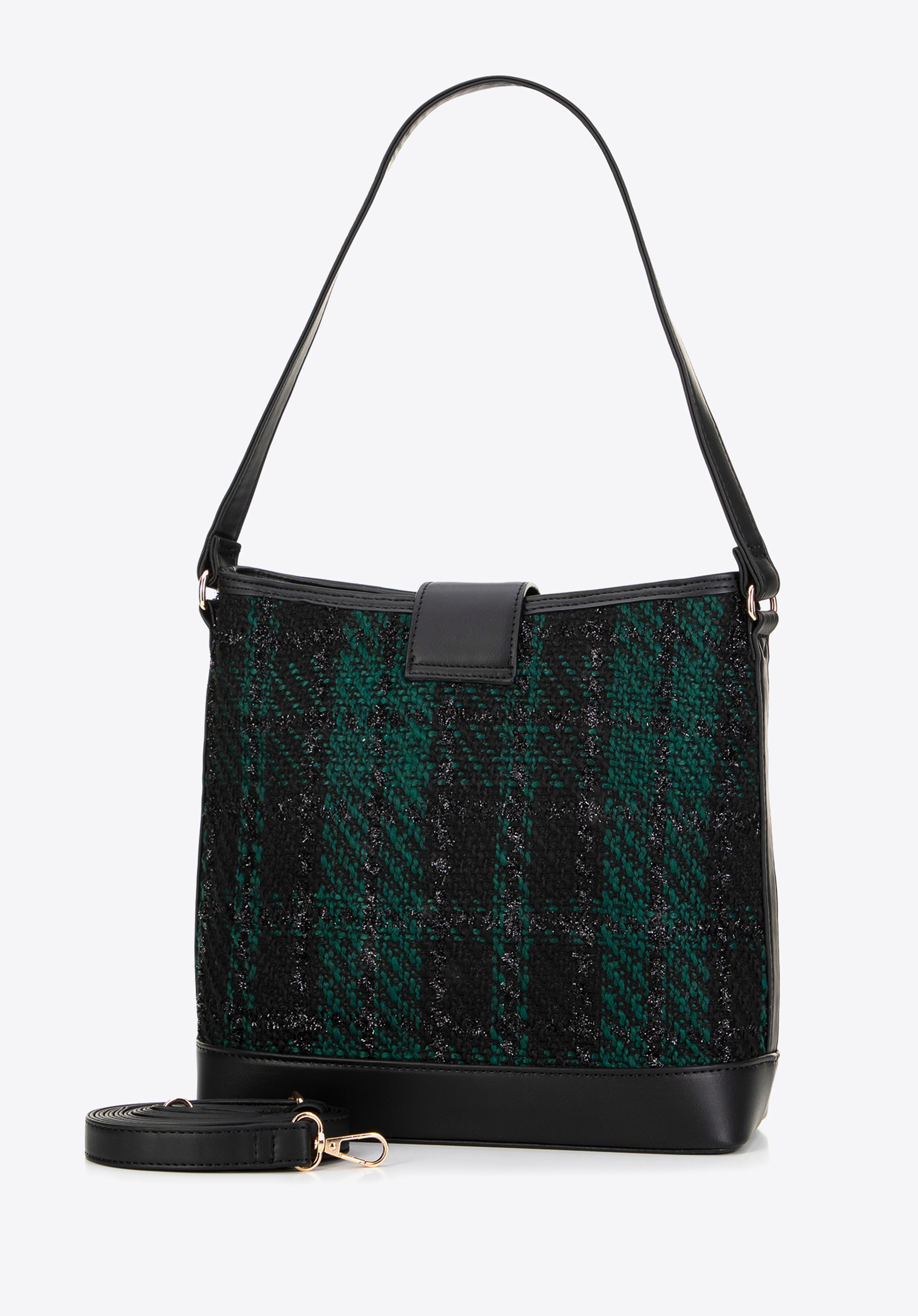 Ta jednokomorowa torebka worek zachwyca swoją strukturą i ciekawym designem, łącząc klasykę z nowoczesnością. Wyróżnia się dekoracyjnym paskiem z klamrą, który nadaje jej wyjątkowy charakter. Rączka wykonana z ekoskóry, zapewnia trwałość i styl, a odpinany i regulowany pasek pozwala na dopasowanie długości do indywidualnych potrzeb. Usztywniane dno, gwarantuje stabilność i zachowanie kształtu torebki, a dyskretne logo producenta umieszczone na przodzie i podszewce podkreśla wysoką jakość wykonania.
