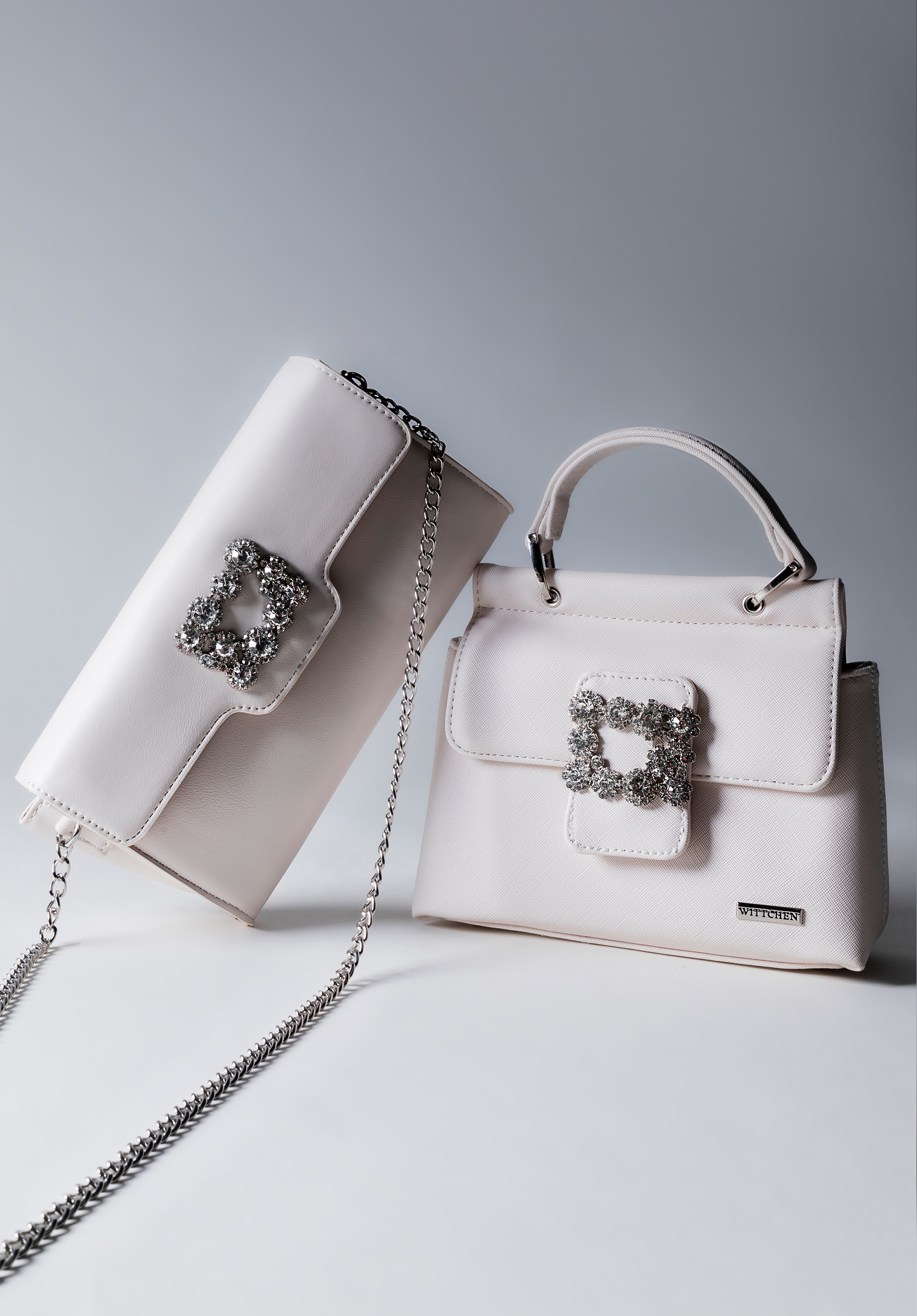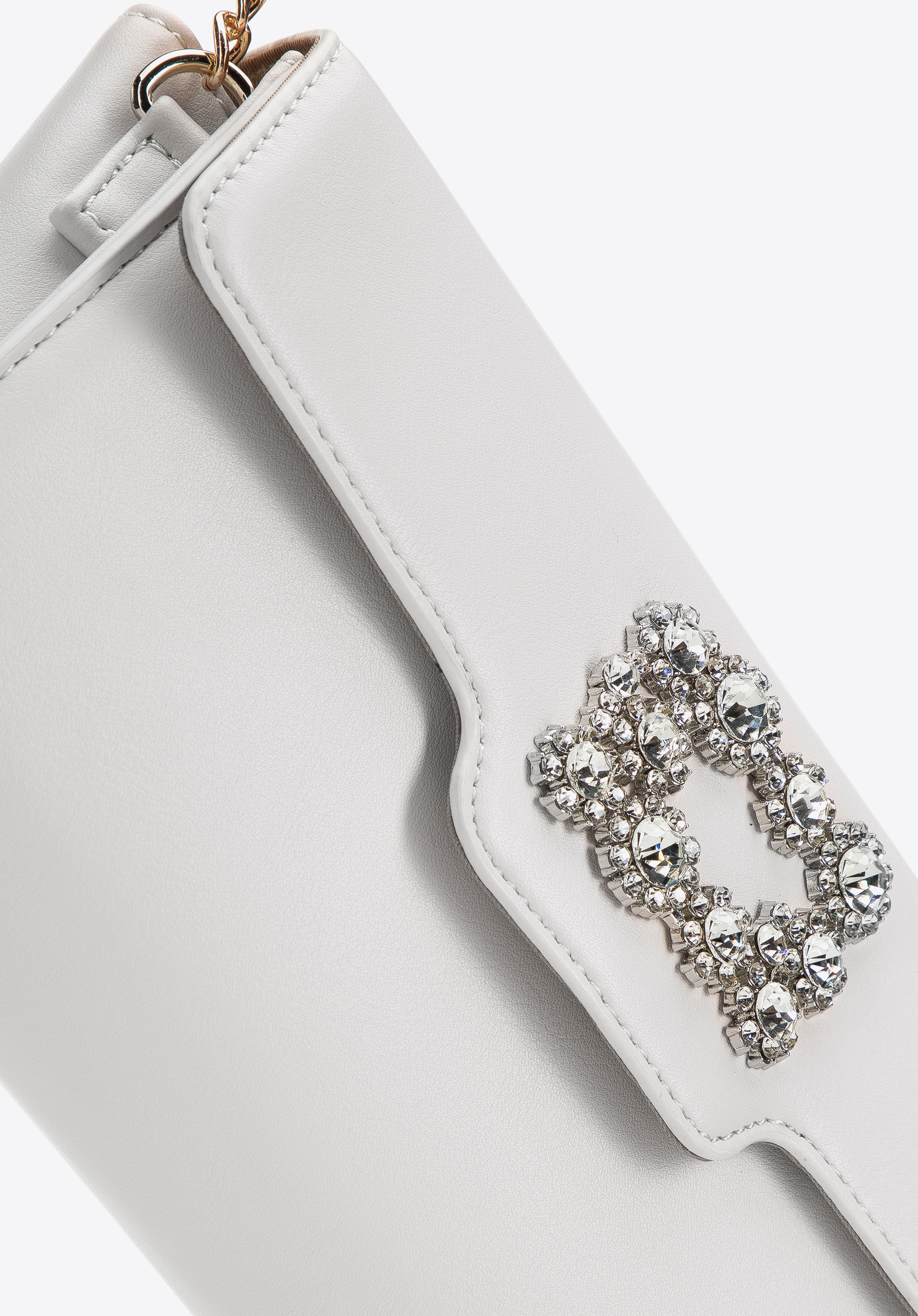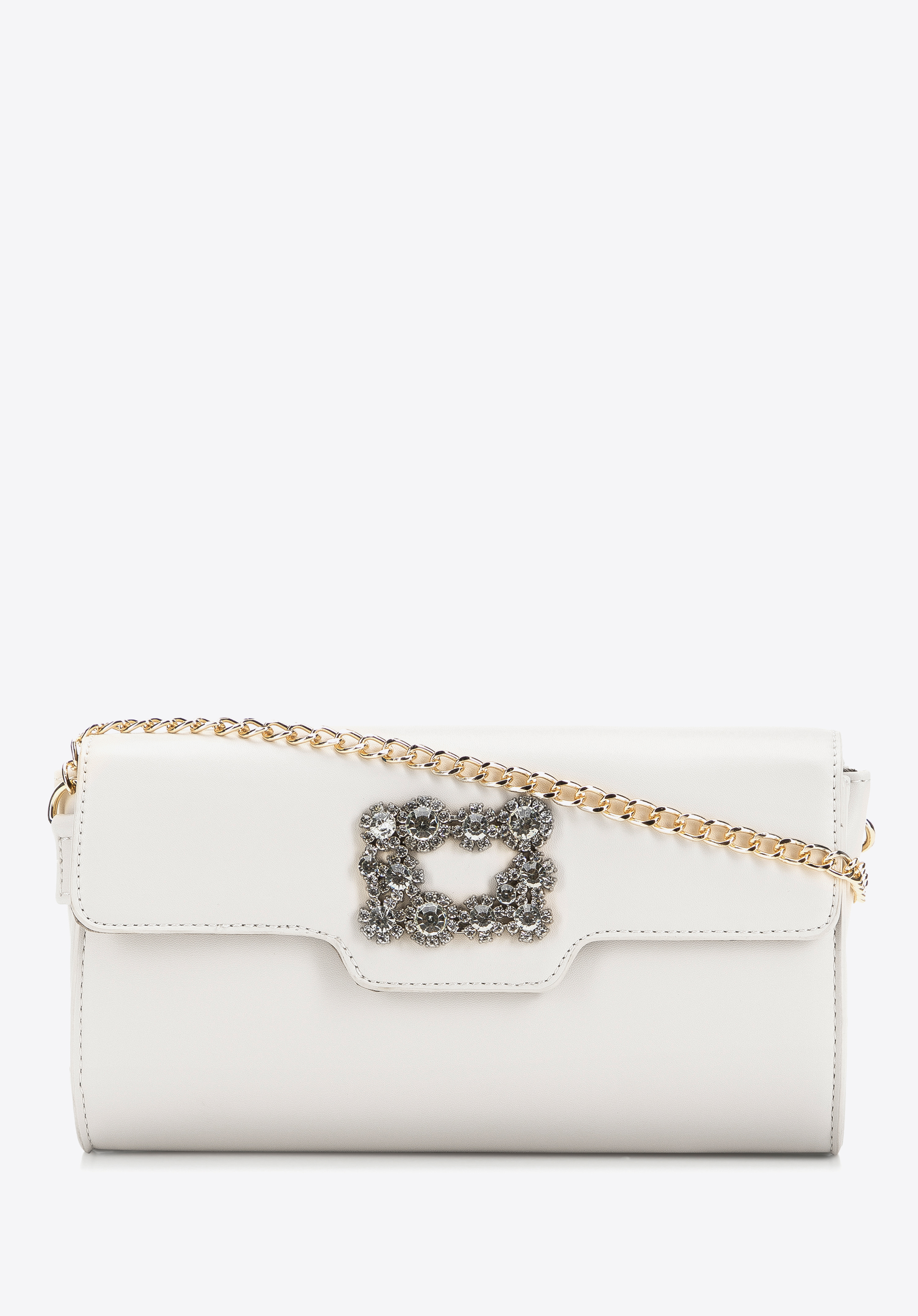 Damska torebka z gładkiej ekoskóry z klamrą z kryształkami to ponadczasowy dodatek, który przyciągnie niejedno spojrzenie.