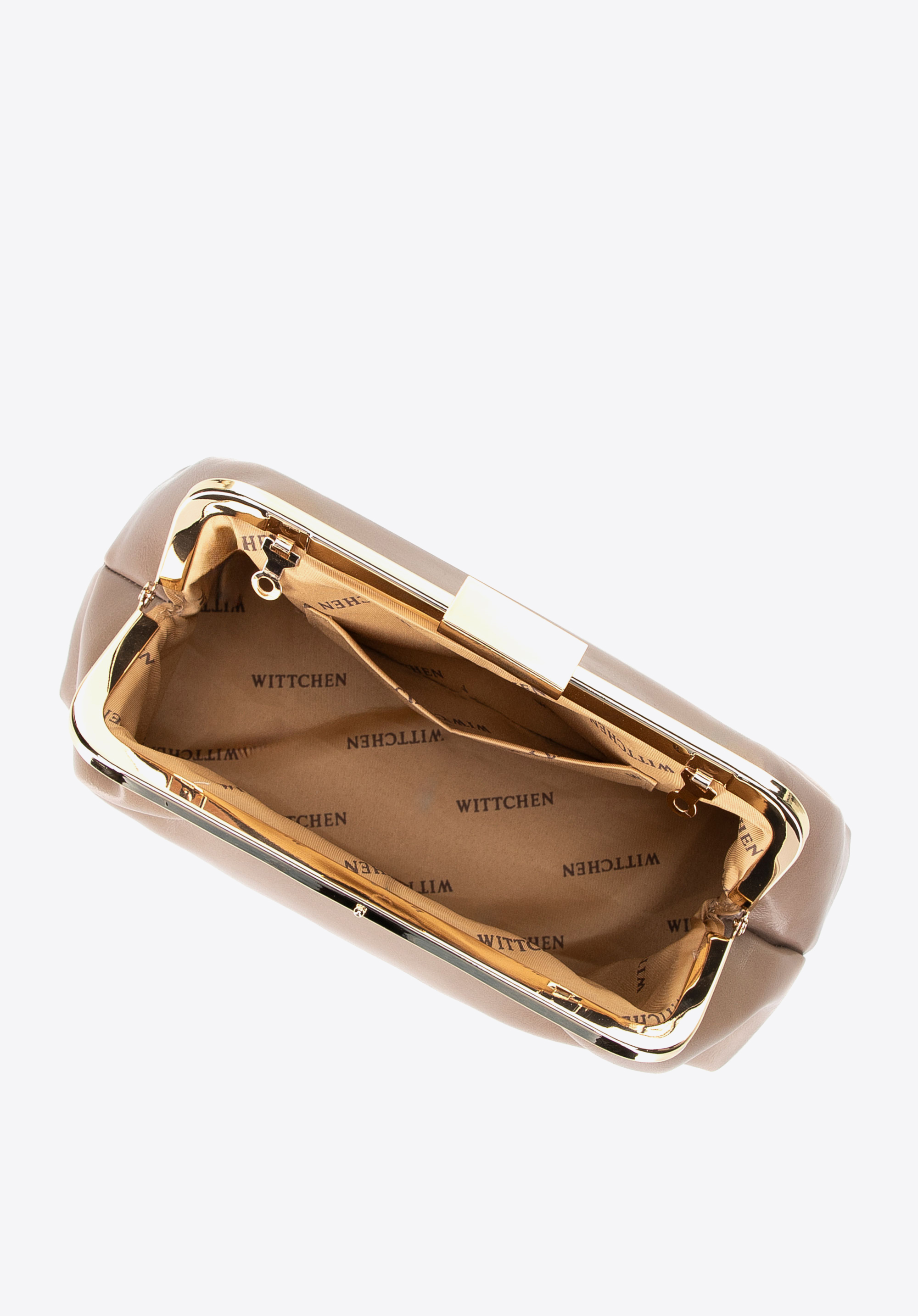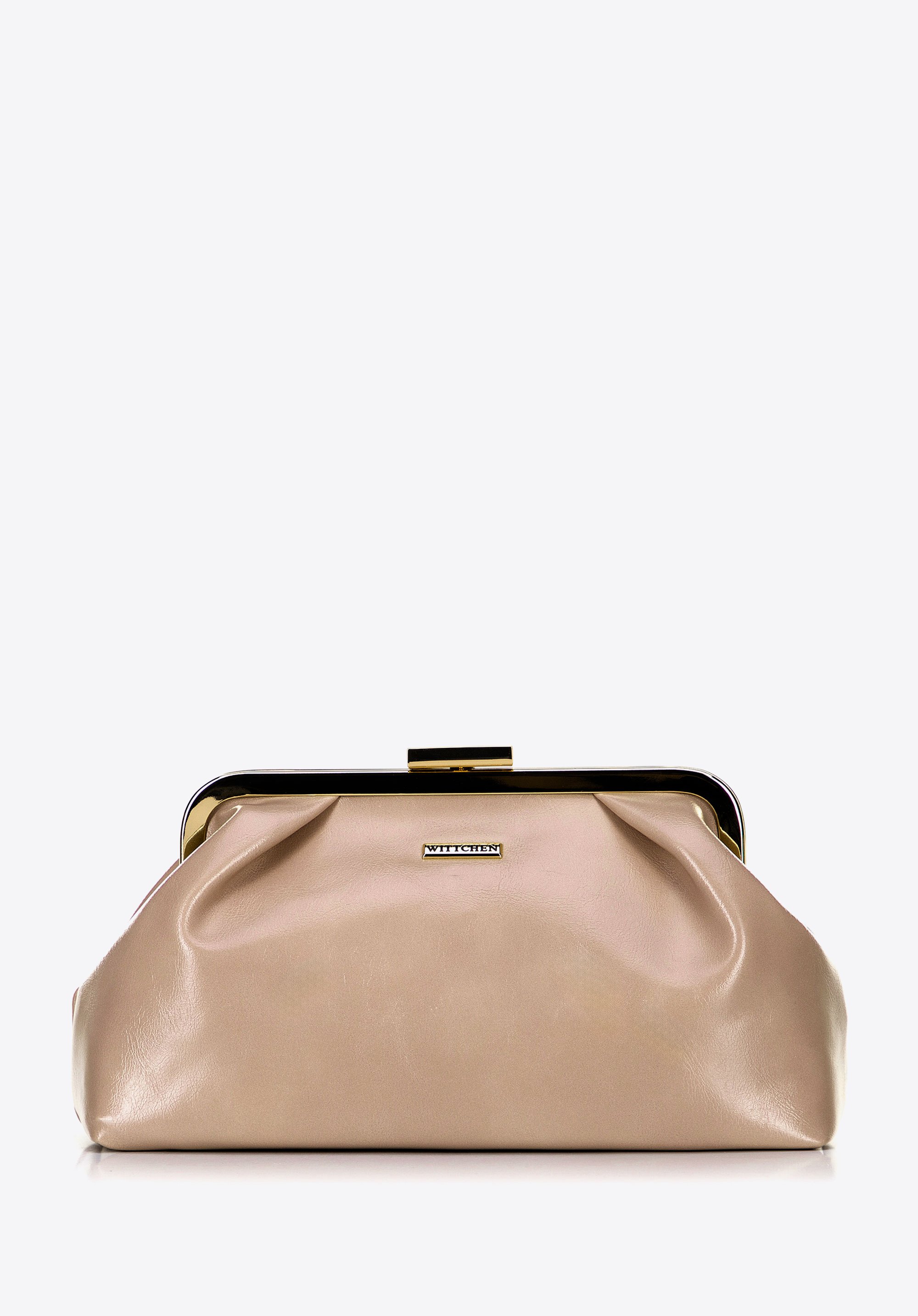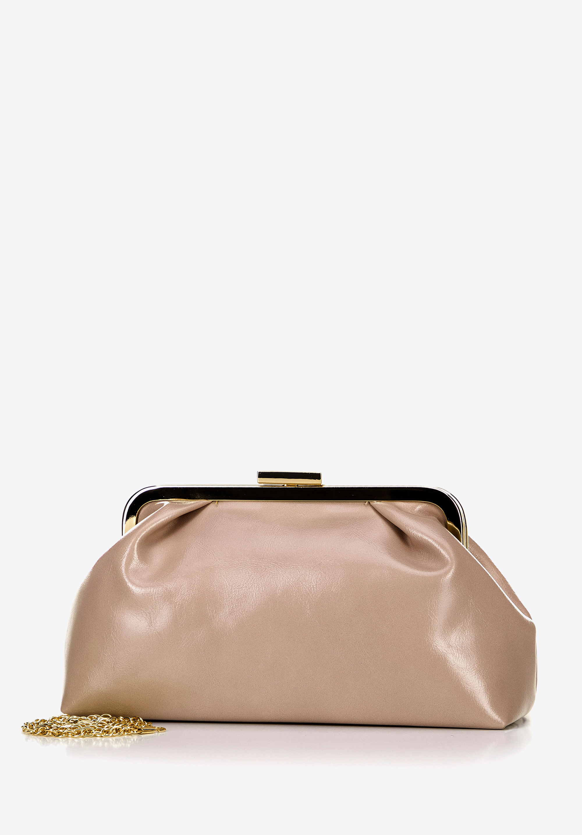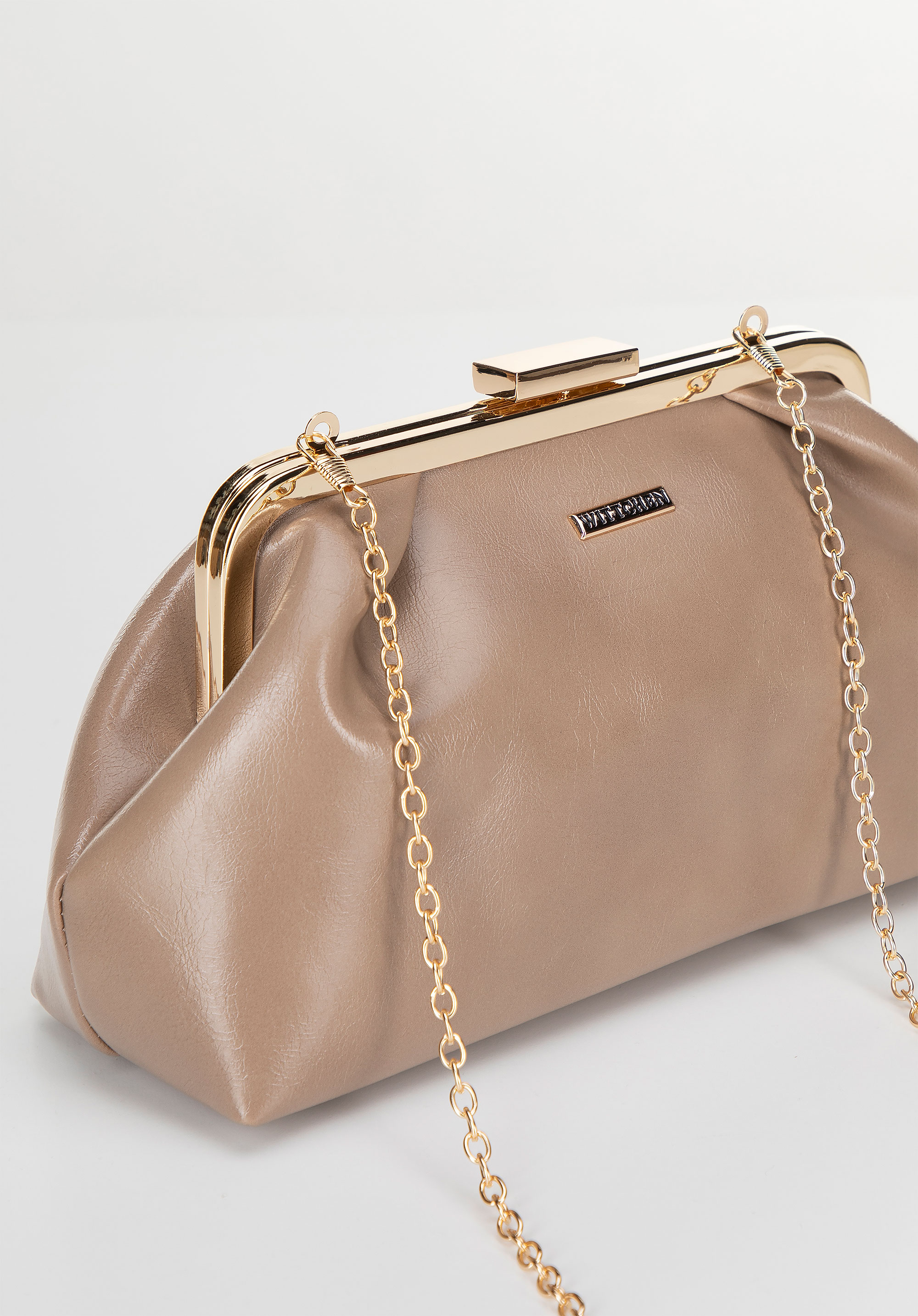 Damska torebka z imitacji skóry z zapięciem na bigiel beżowa