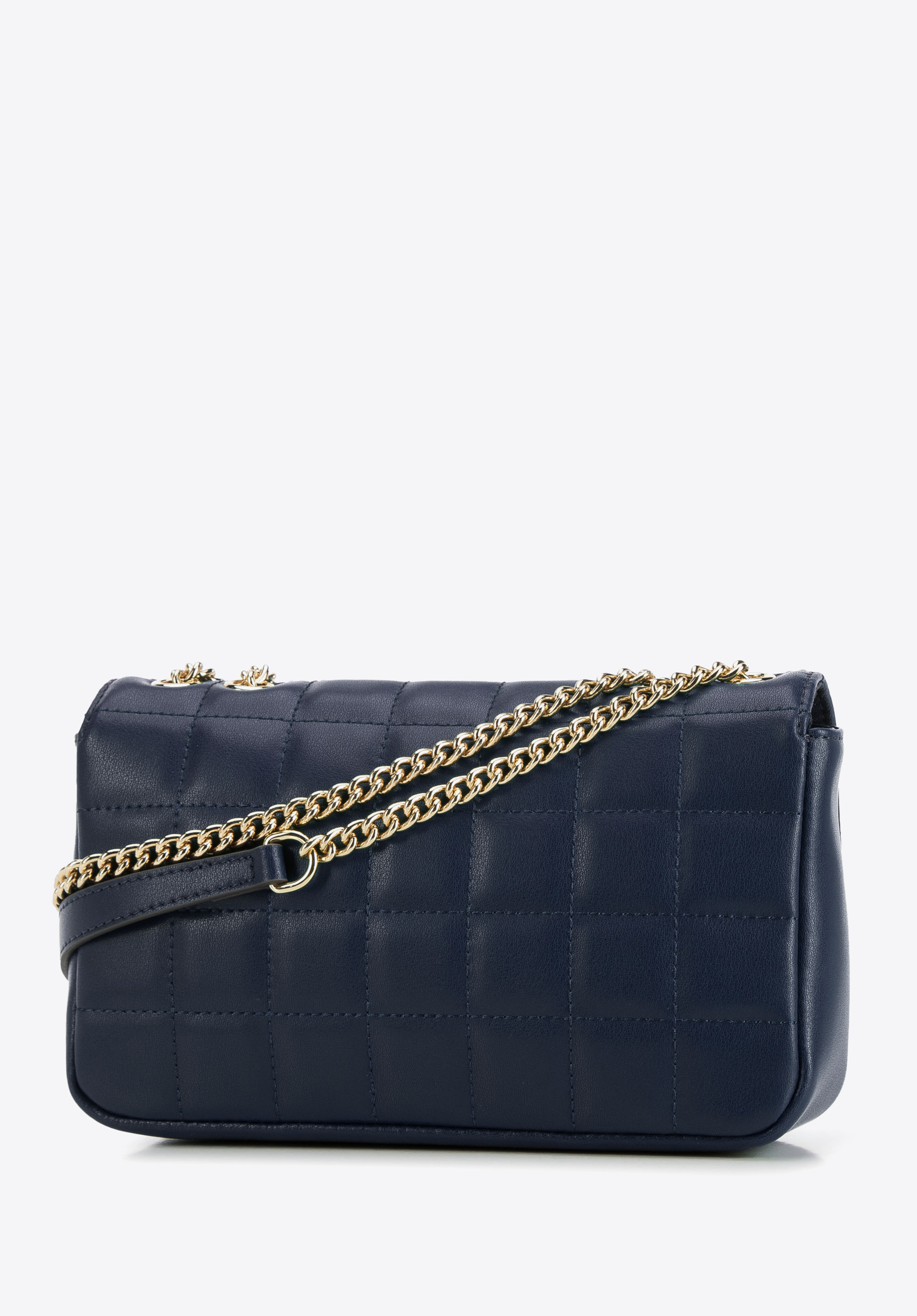 Łańcuszek jest dość długi i regulowany: możesz złożyć go na pół i zawiesić torebkę na ramieniu lub wykorzystać pełną długość łańcuszka i przerzucić torebkę na ukos. W środku zmieścisz portfel, telefon, zapasowe rękawiczki, mały kalendarz i kilka drobiazgów. Torebka świetnie dopełni elegancką sukienkę, a stylizacji z dżinsami i koszulą doda szyku. Podłużna