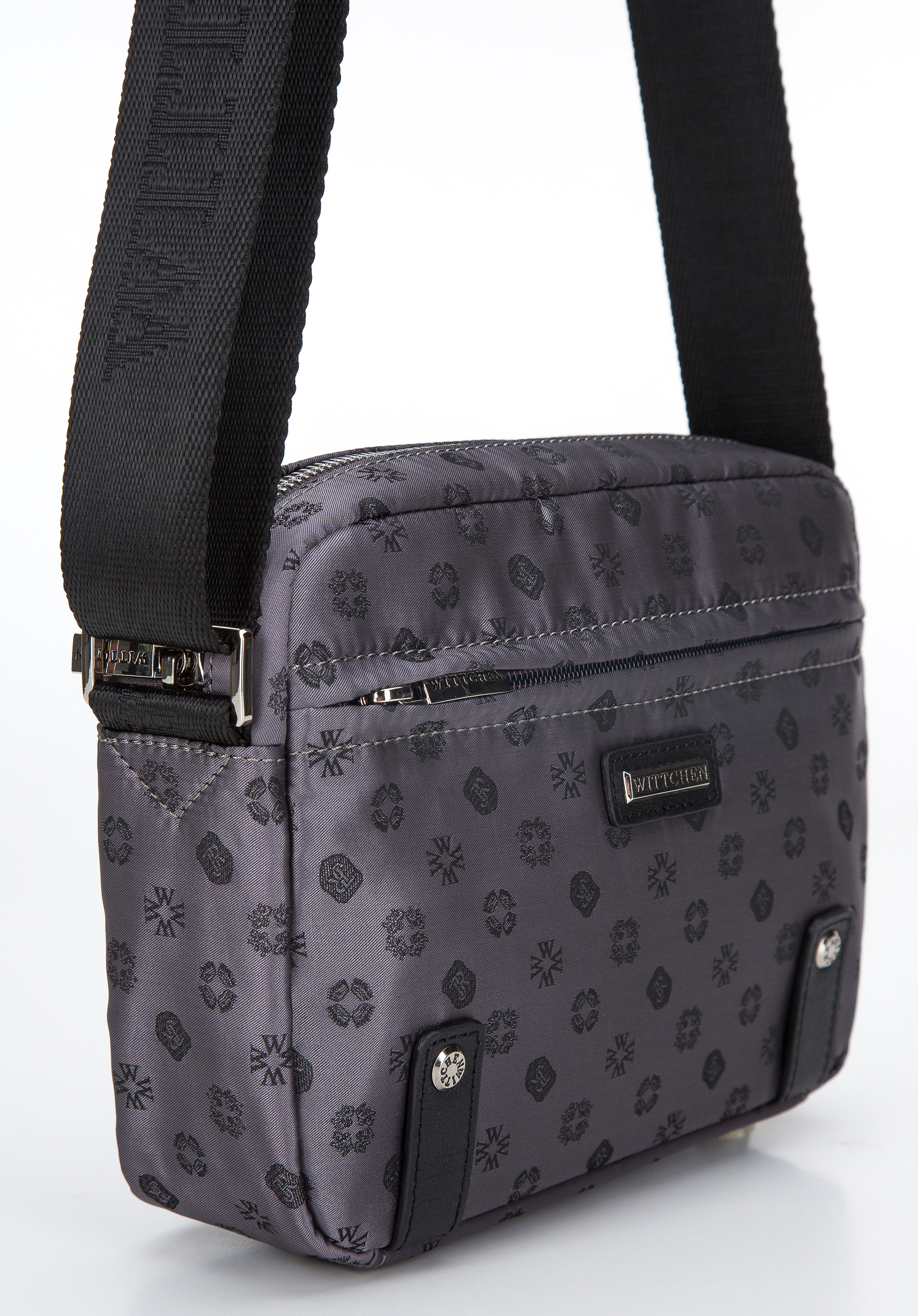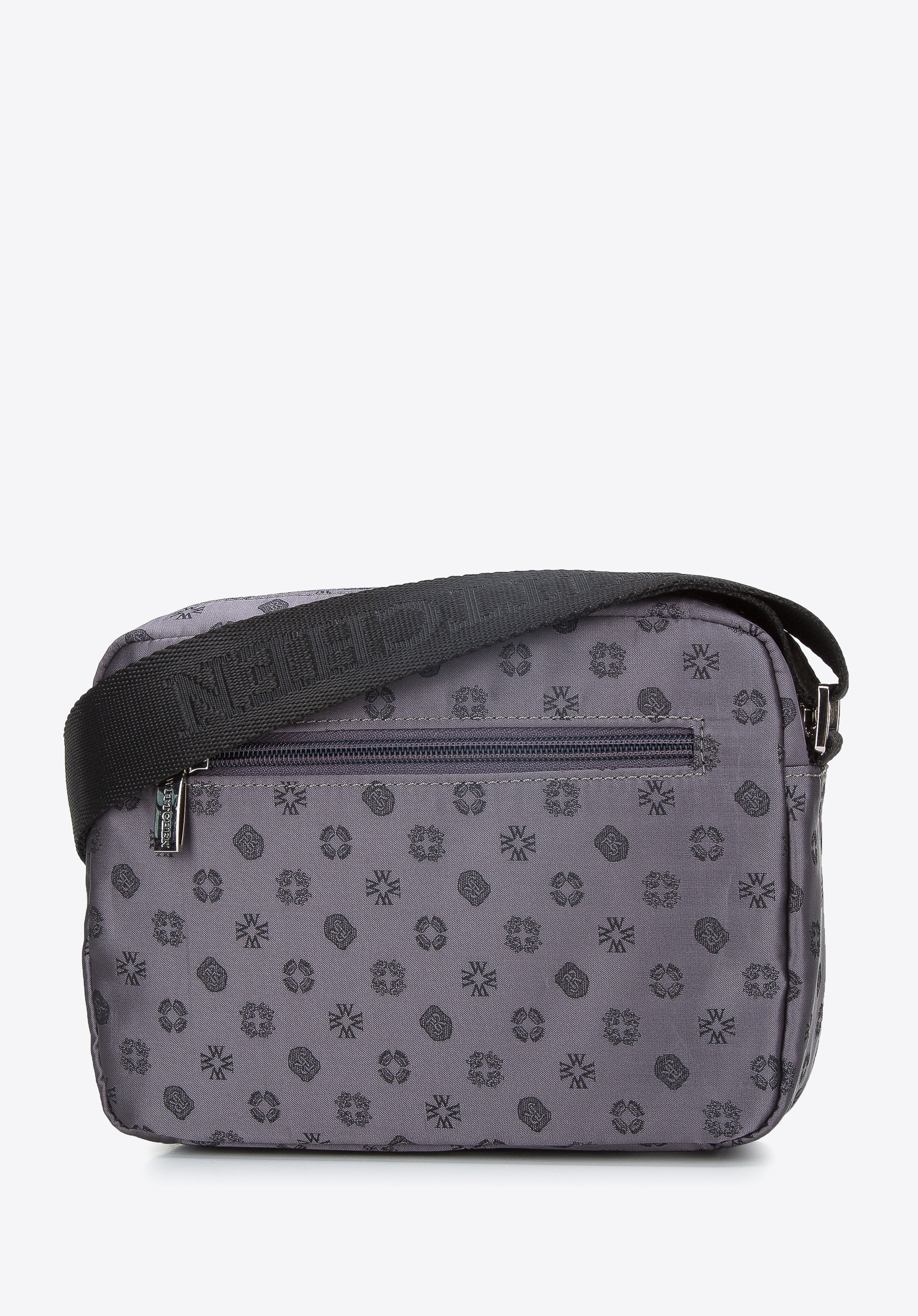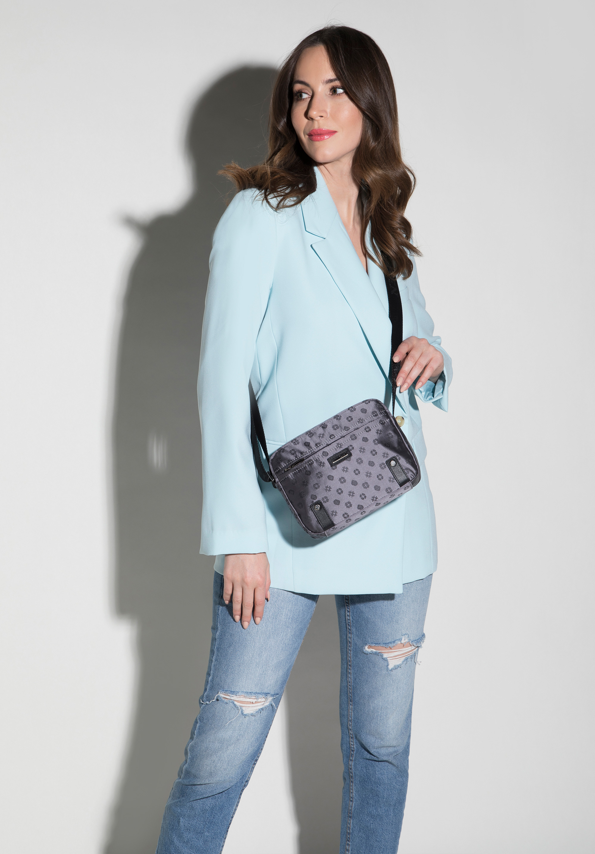 wykonana z wysokiej jakości, lekko mieniącej się tkaniny ze wzorem w monogram. Wstawki ze skóry naturalnej oraz