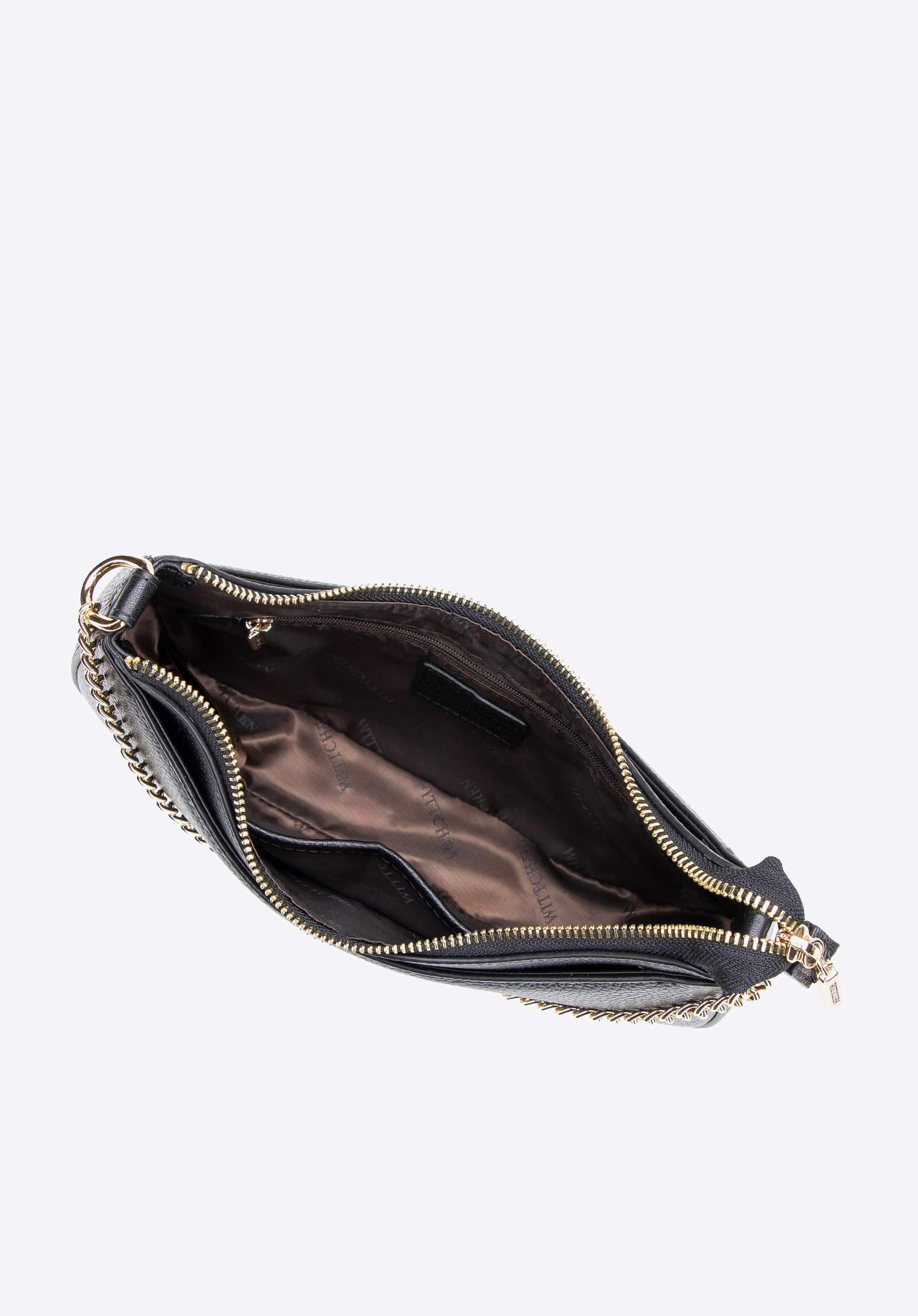 - Przemyślane wnętrze: Wewnątrz znajdziesz kieszeń na zamek oraz otwartą kieszonkę, które ułatwiają organizację drobiazgów i szybki dostęp do najpotrzebniejszych rzeczy.