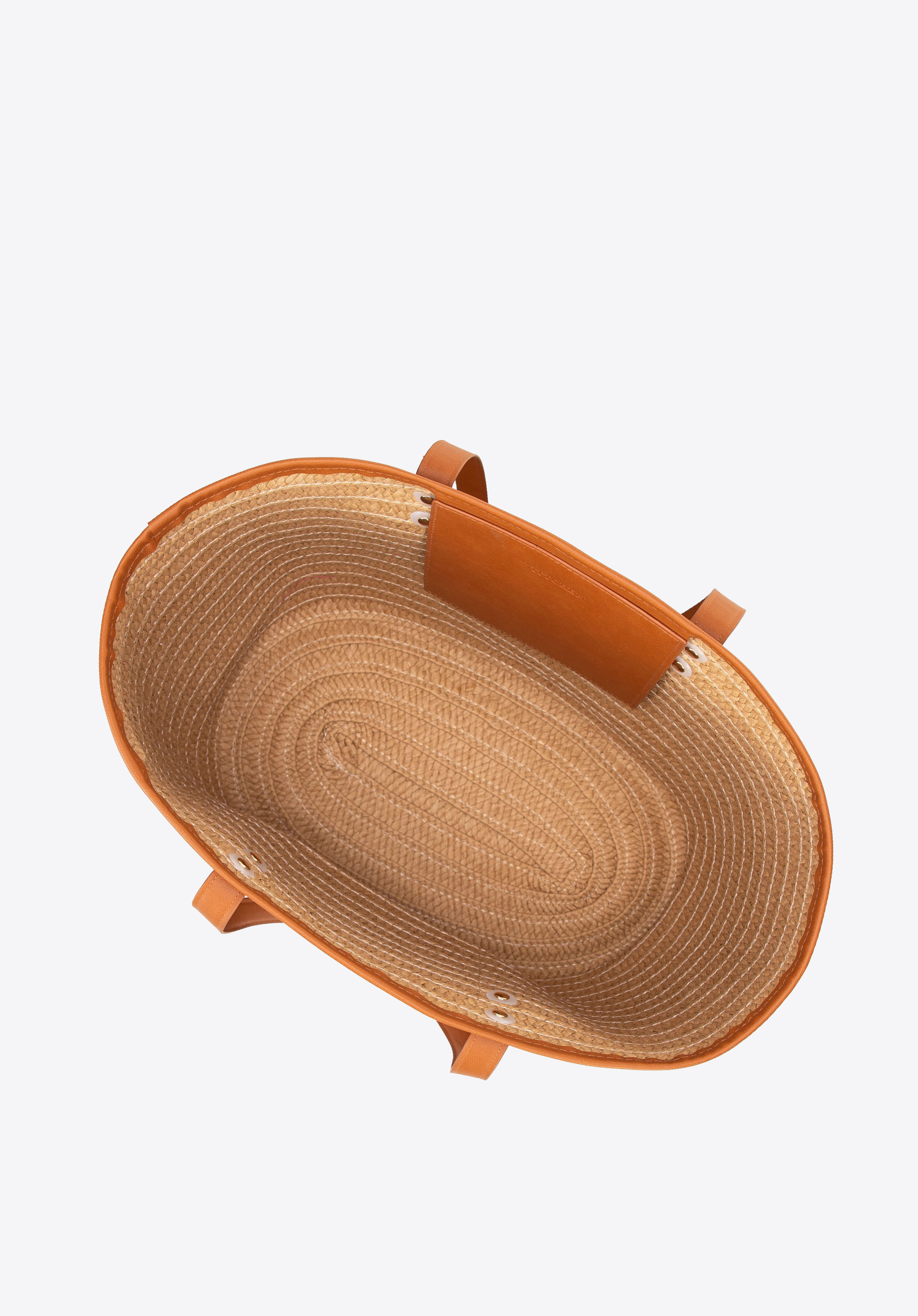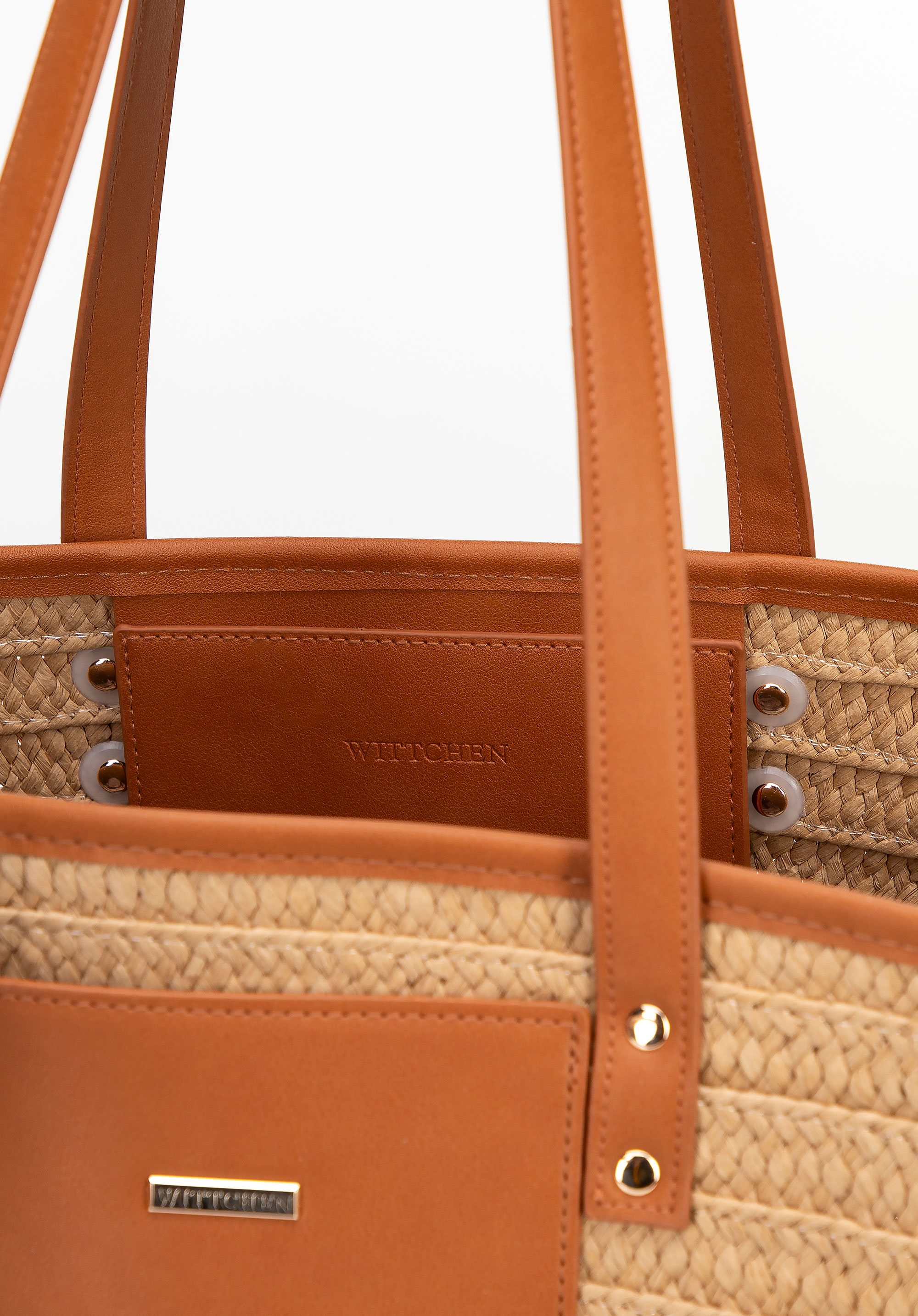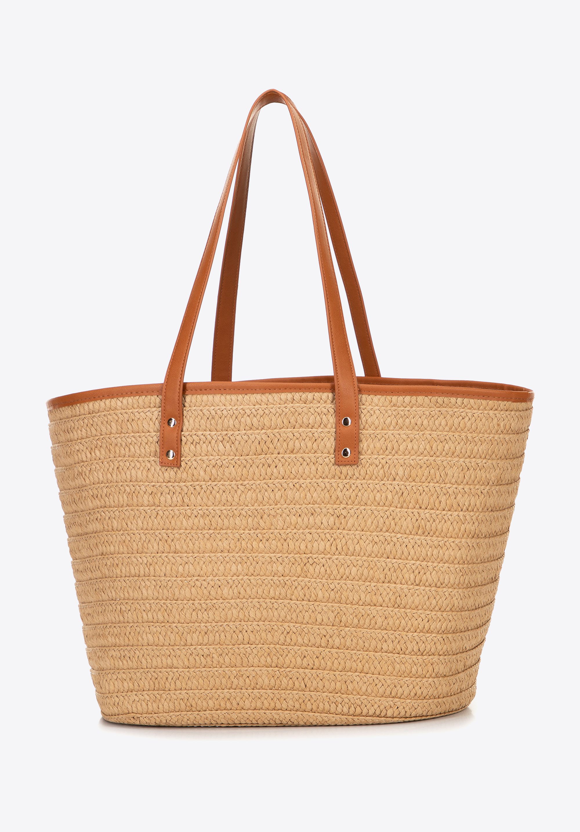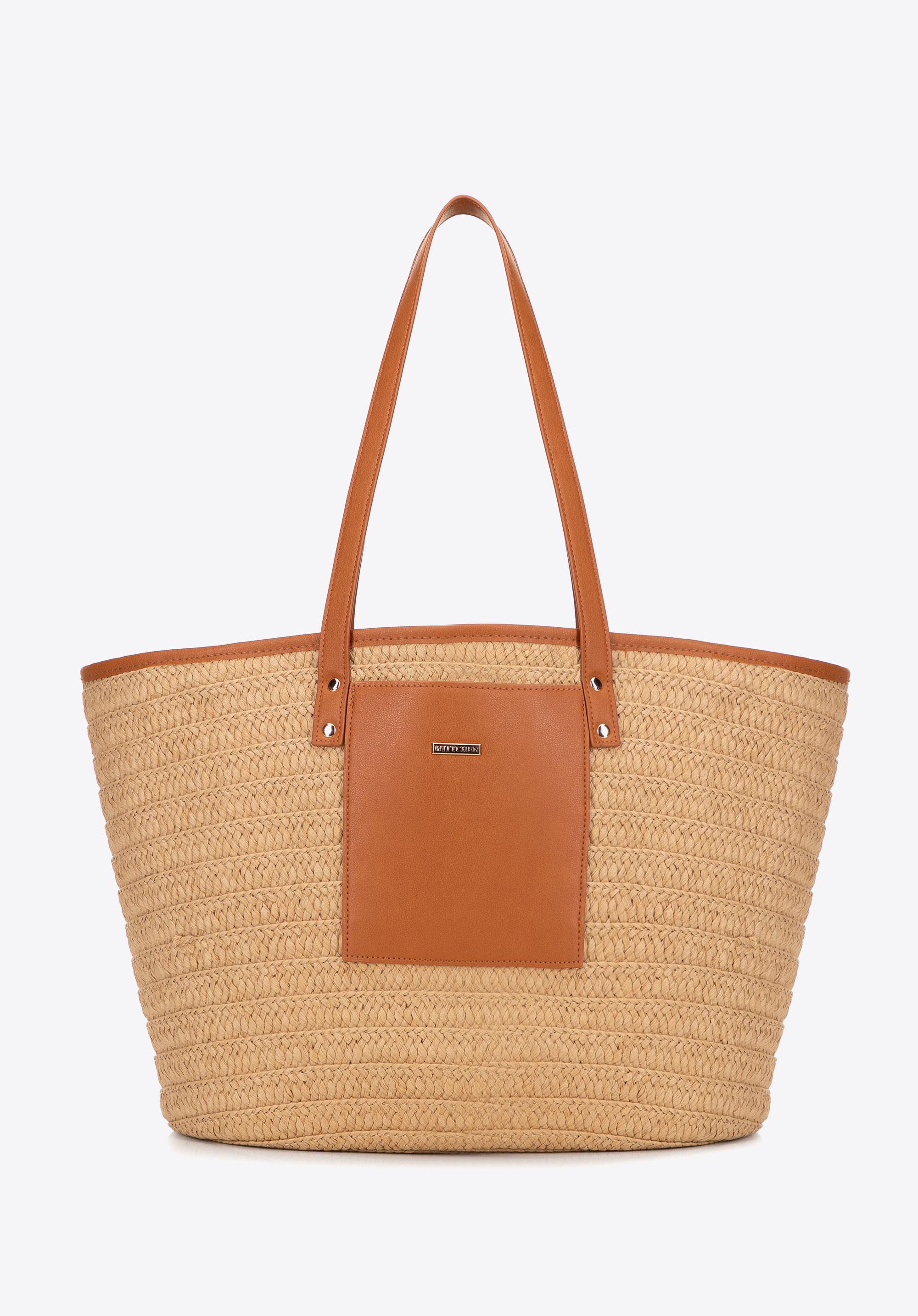 Damski koszyk z plecionki i ekoskóry beżowo - brązowy