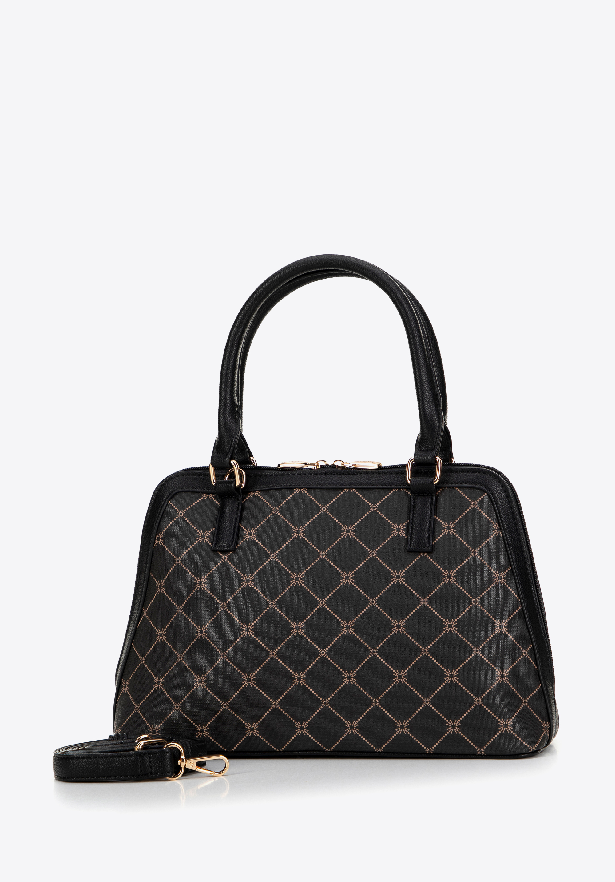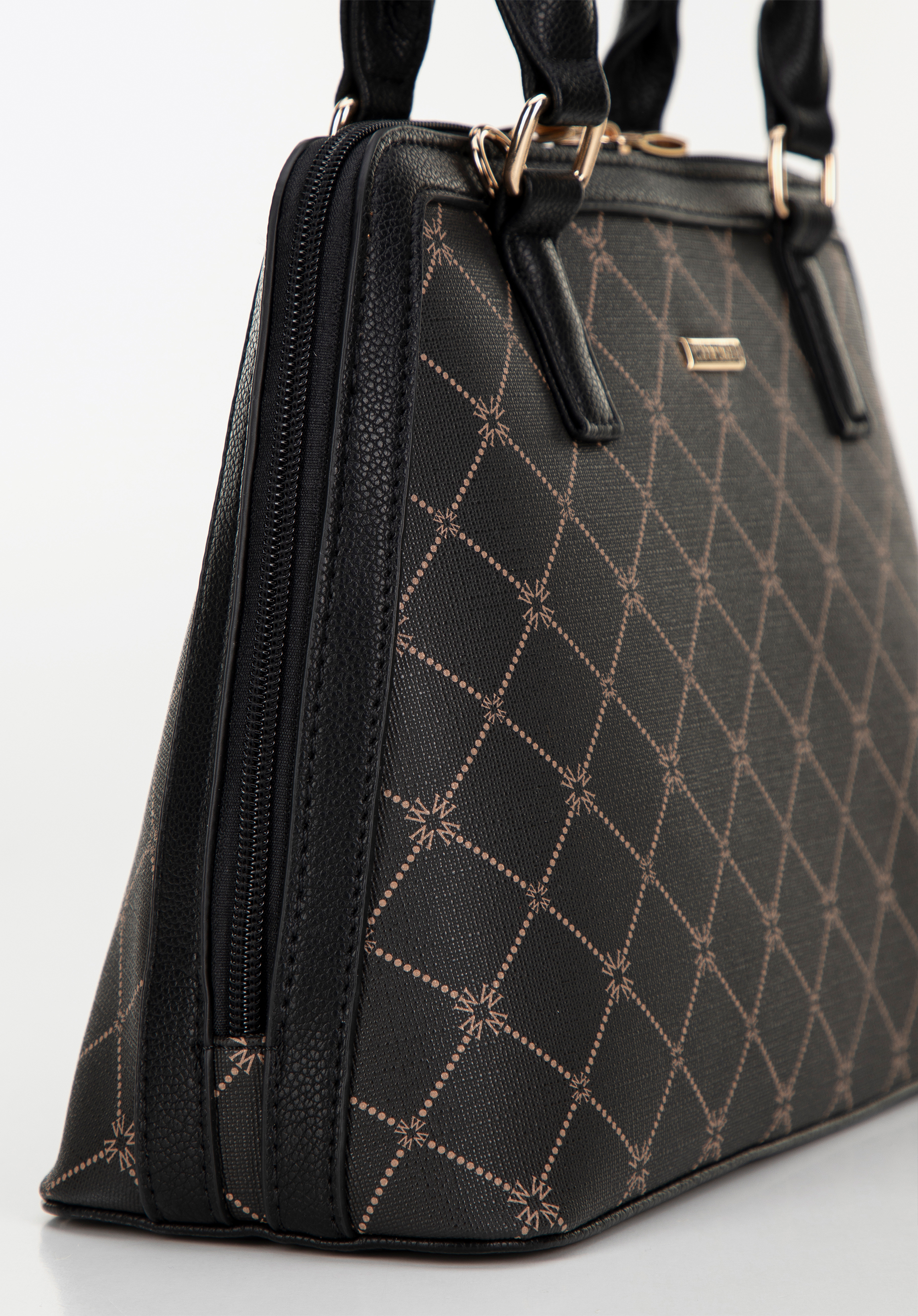 - Design: Wyjątkowy wzór w monogram oraz subtelne logo producenta na przodzie nadają torebce unikalny charakter i sprawiają, że wyróżnia się ona na tle innych akcesoriów.