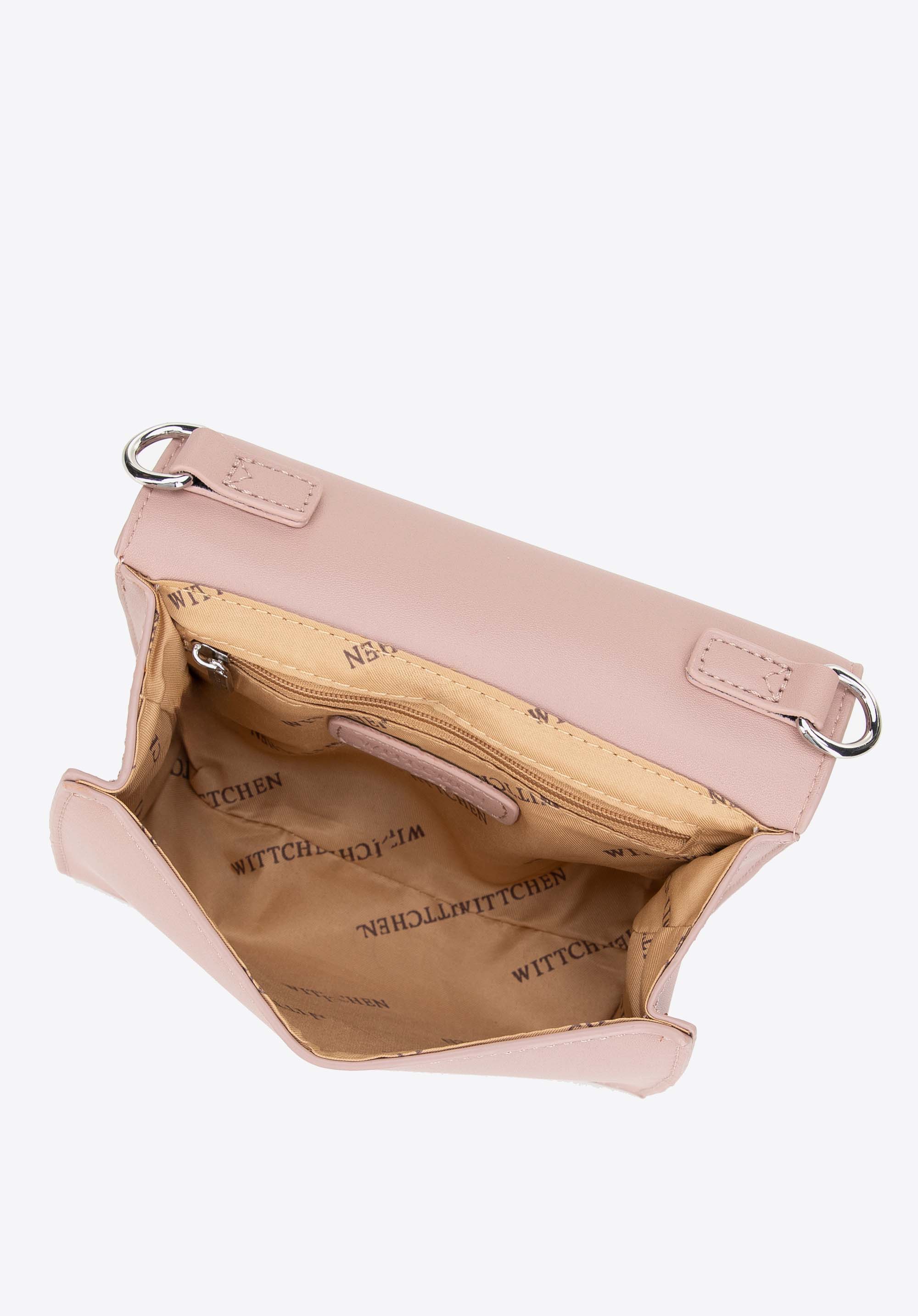 - Wnętrze: Torebka posiada jedną kieszeń na zamek, która jest idealna na przechowywanie drobnych przedmiotów, takich jak klucze czy portfel.