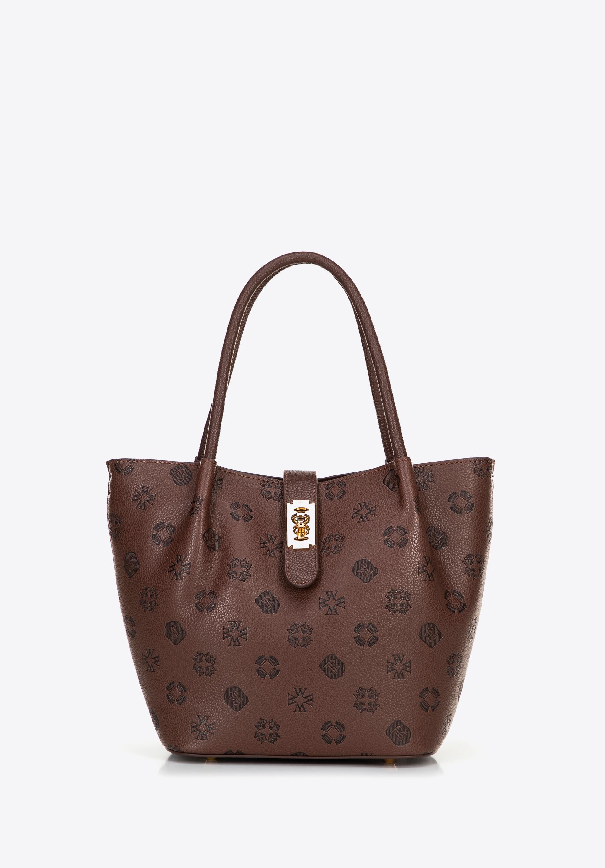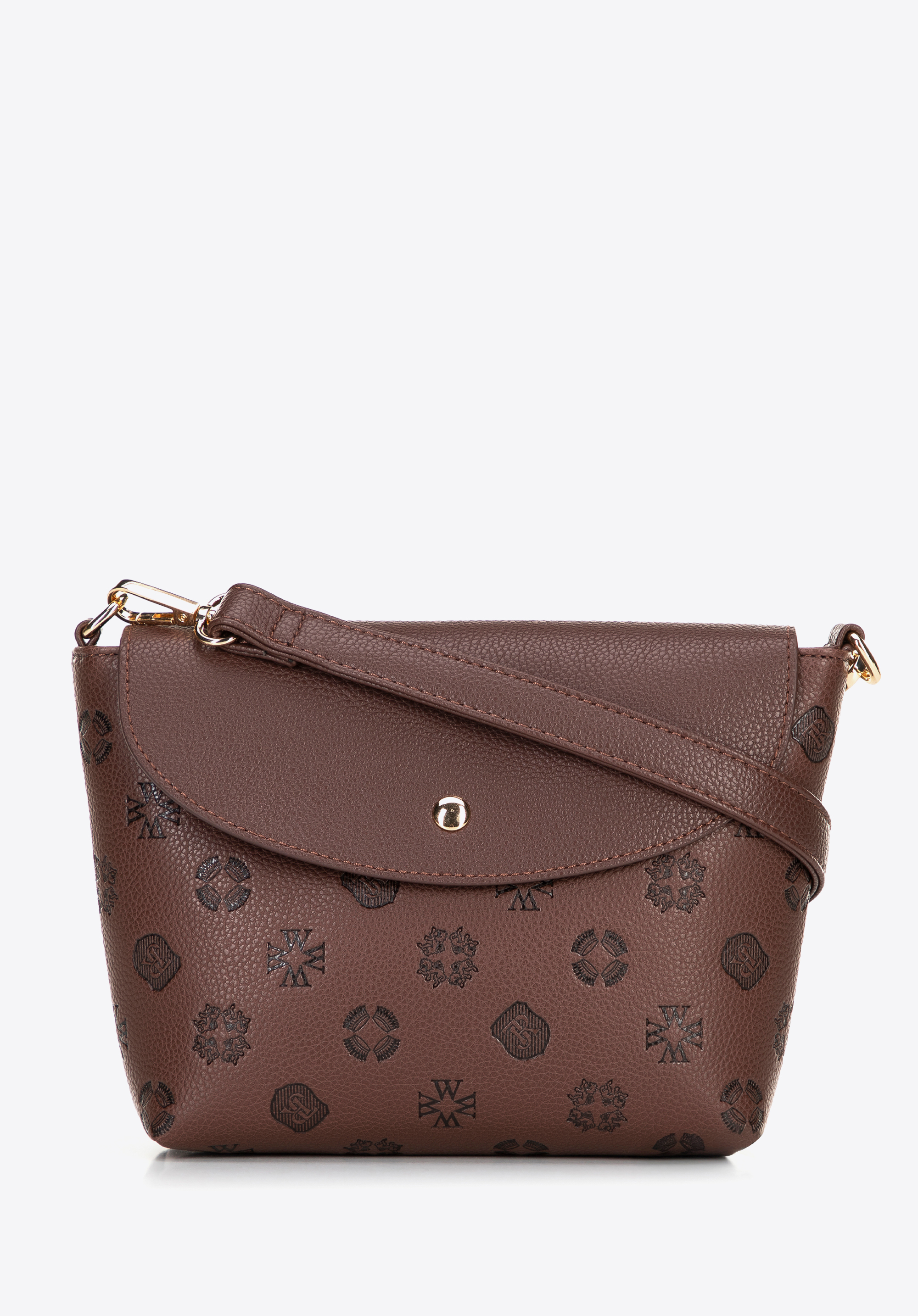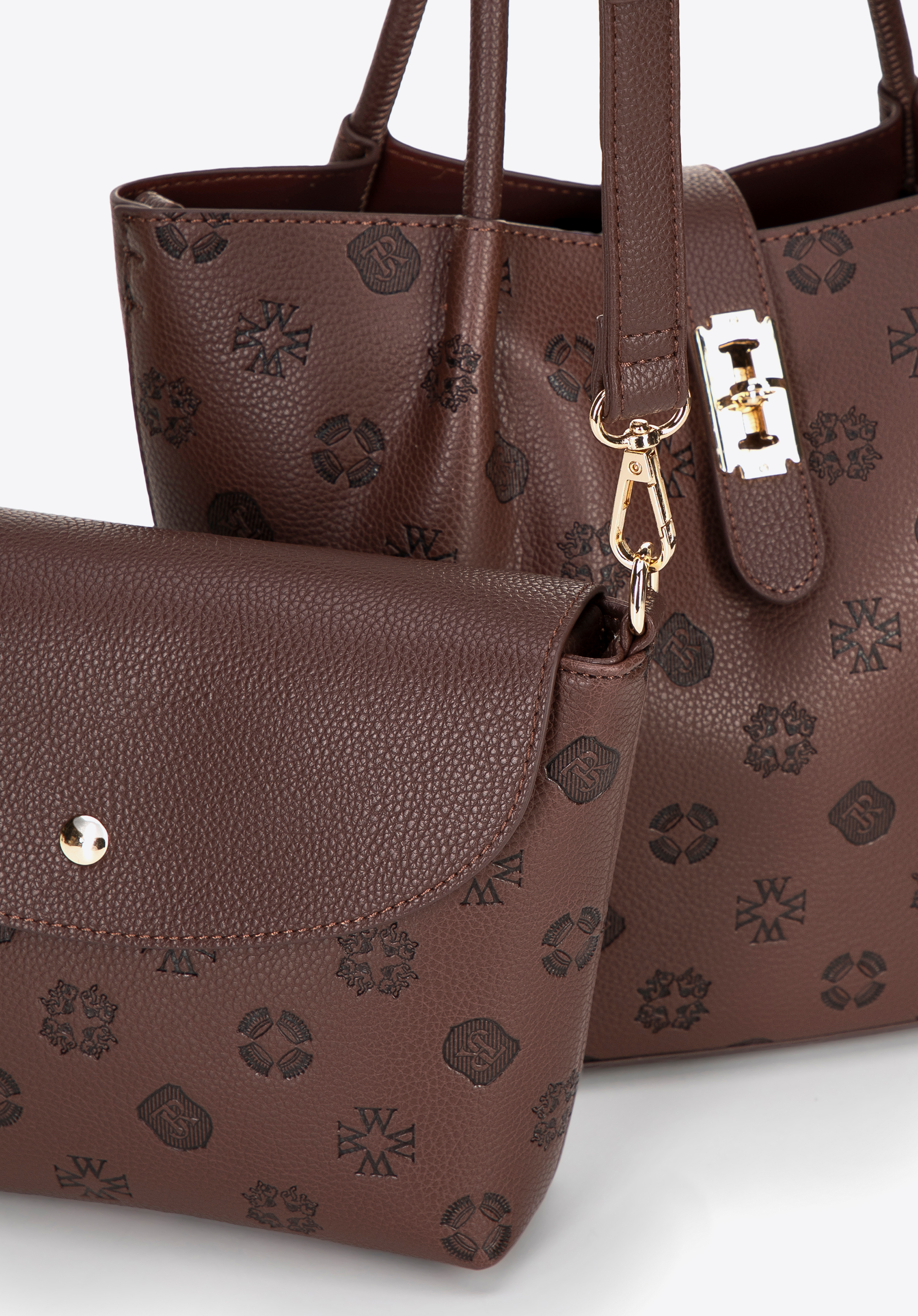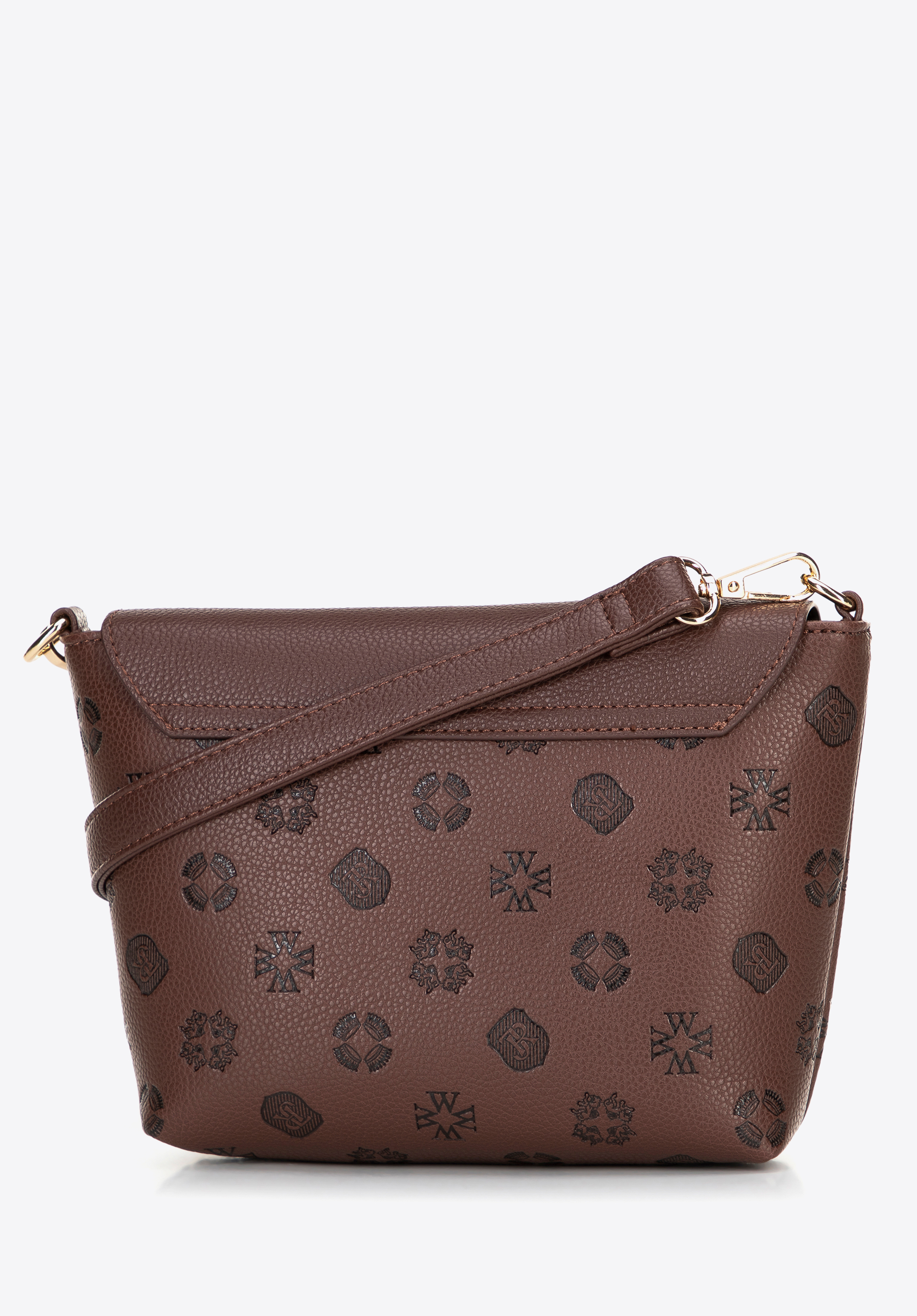 Damski kuferek z ekoskóry z tłoczoną sygnaturą ciemny brąz