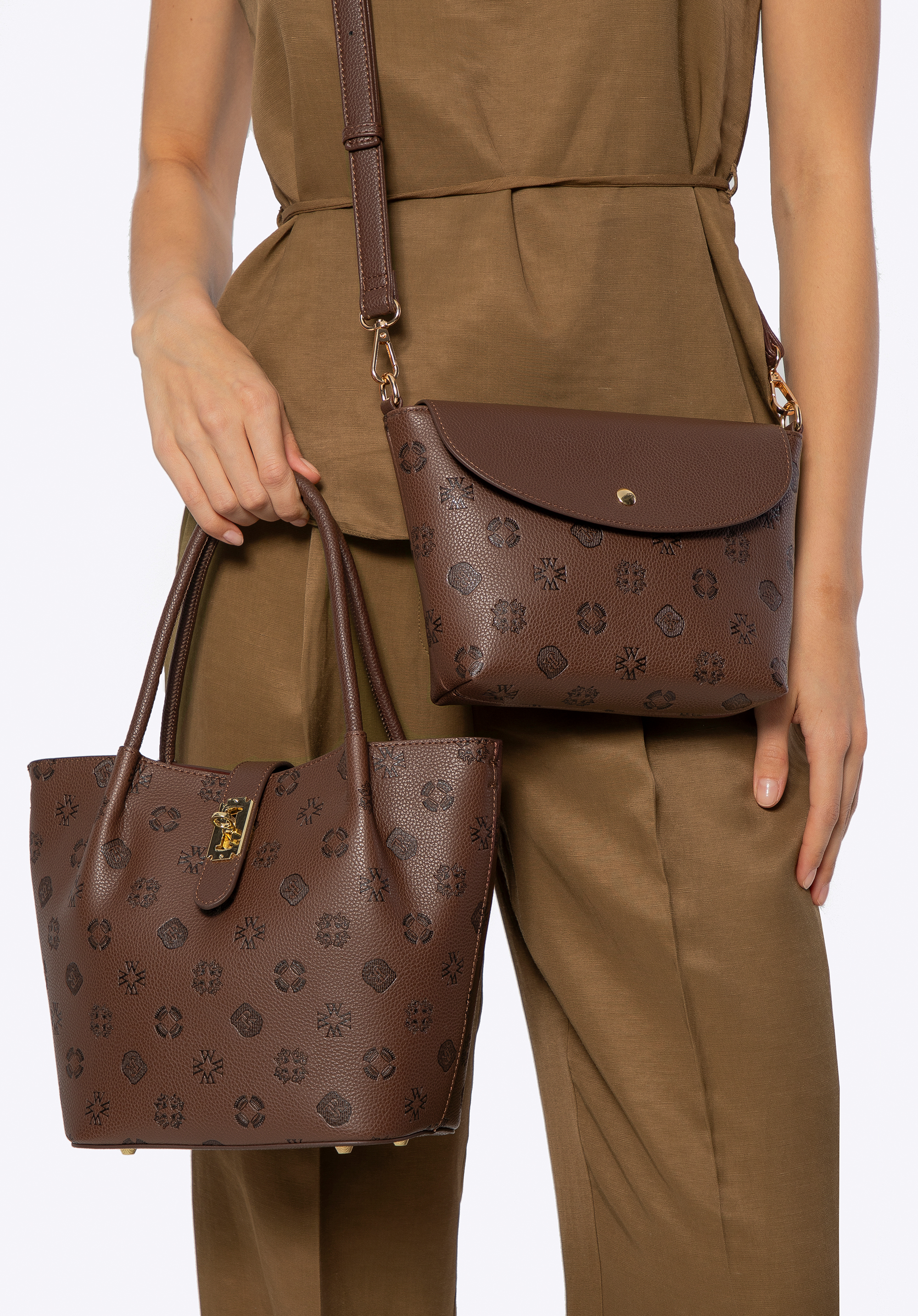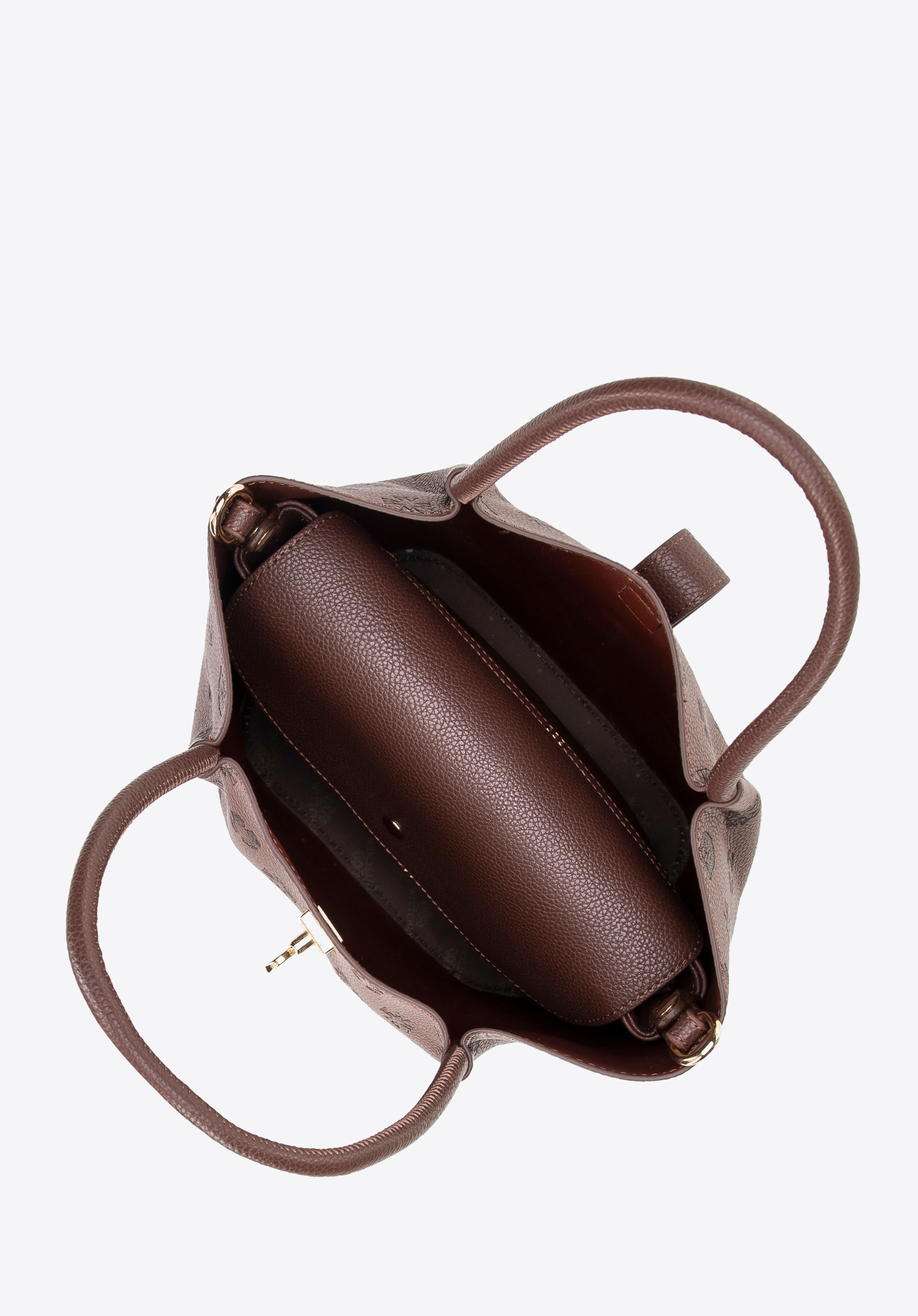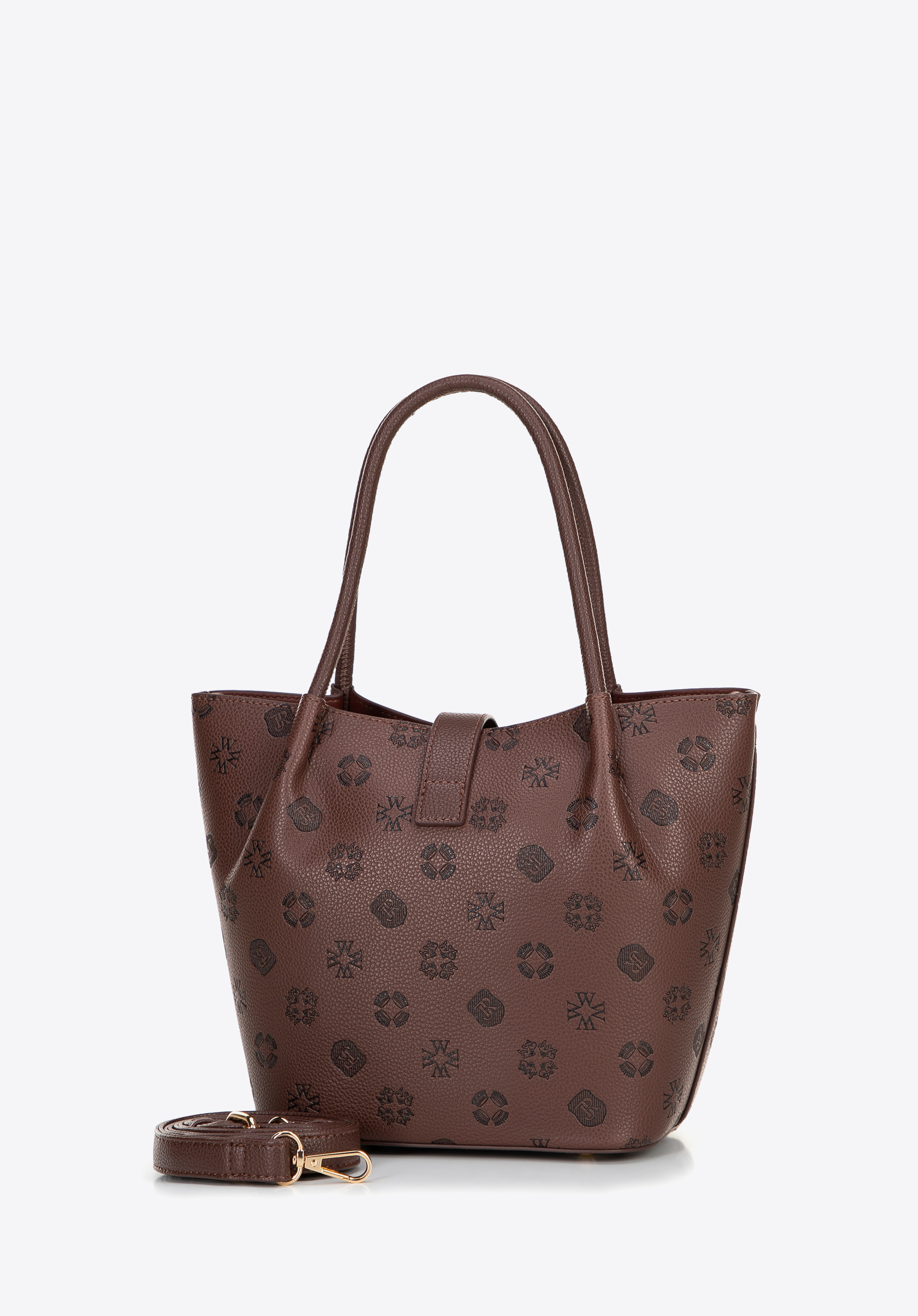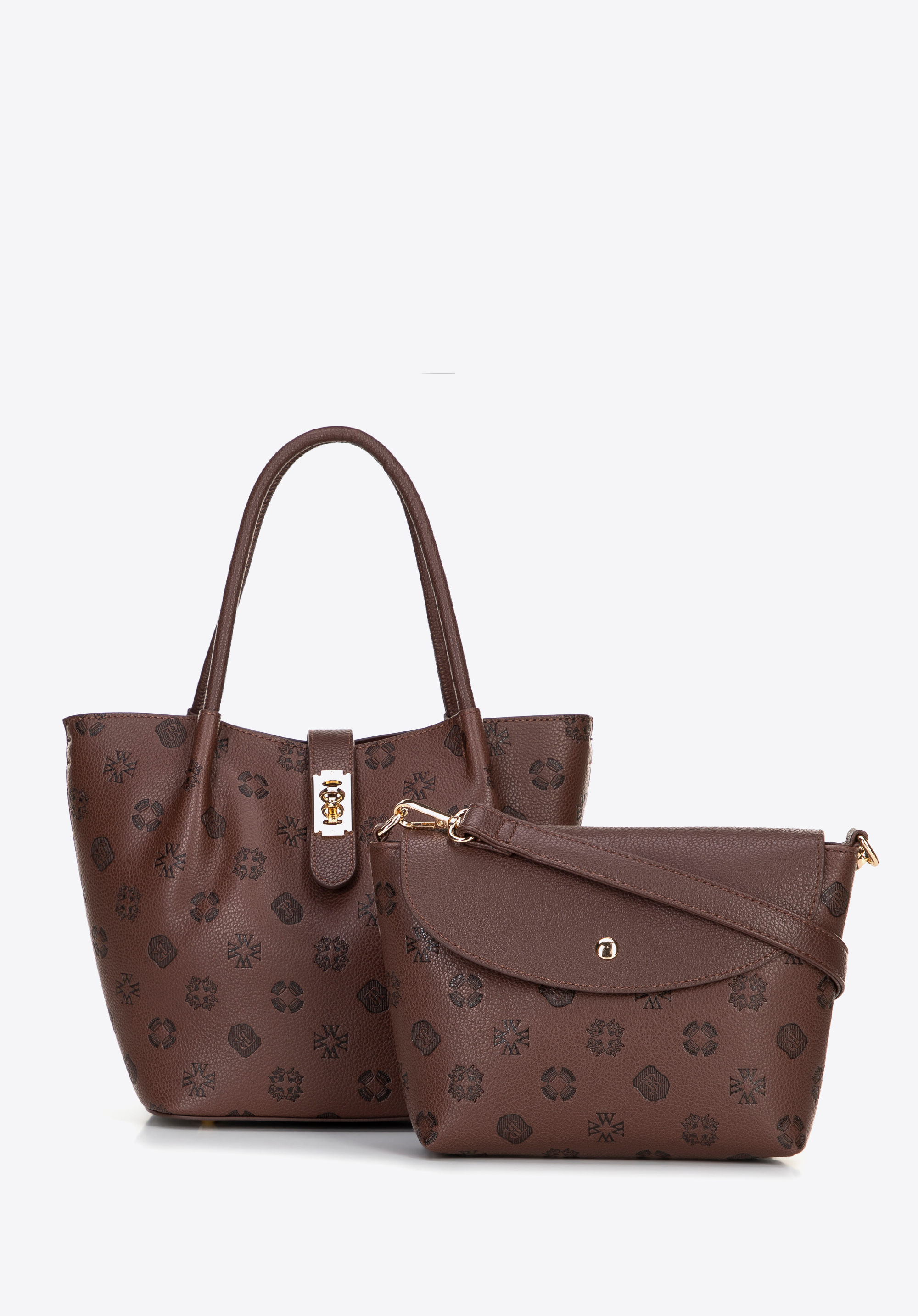 Damski kuferek z ekoskóry z tłoczoną sygnaturą ciemny brąz