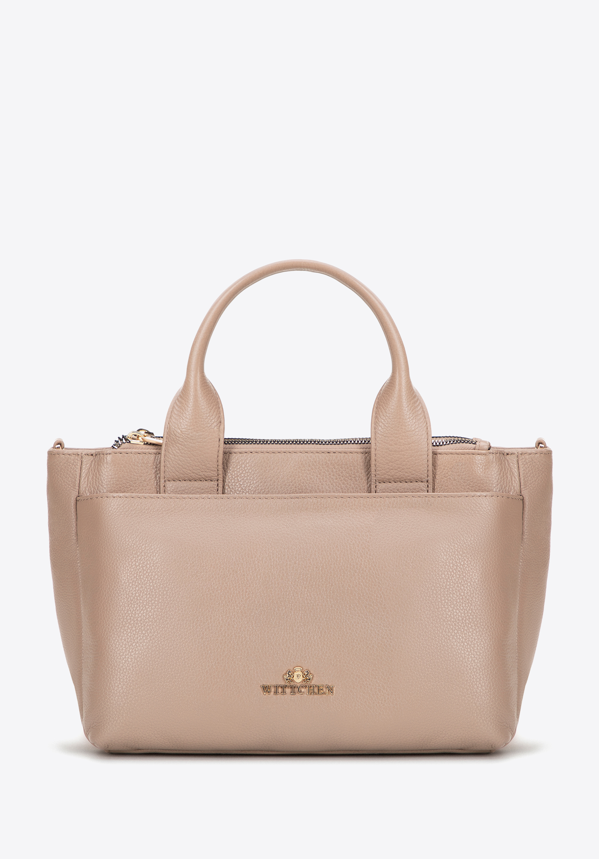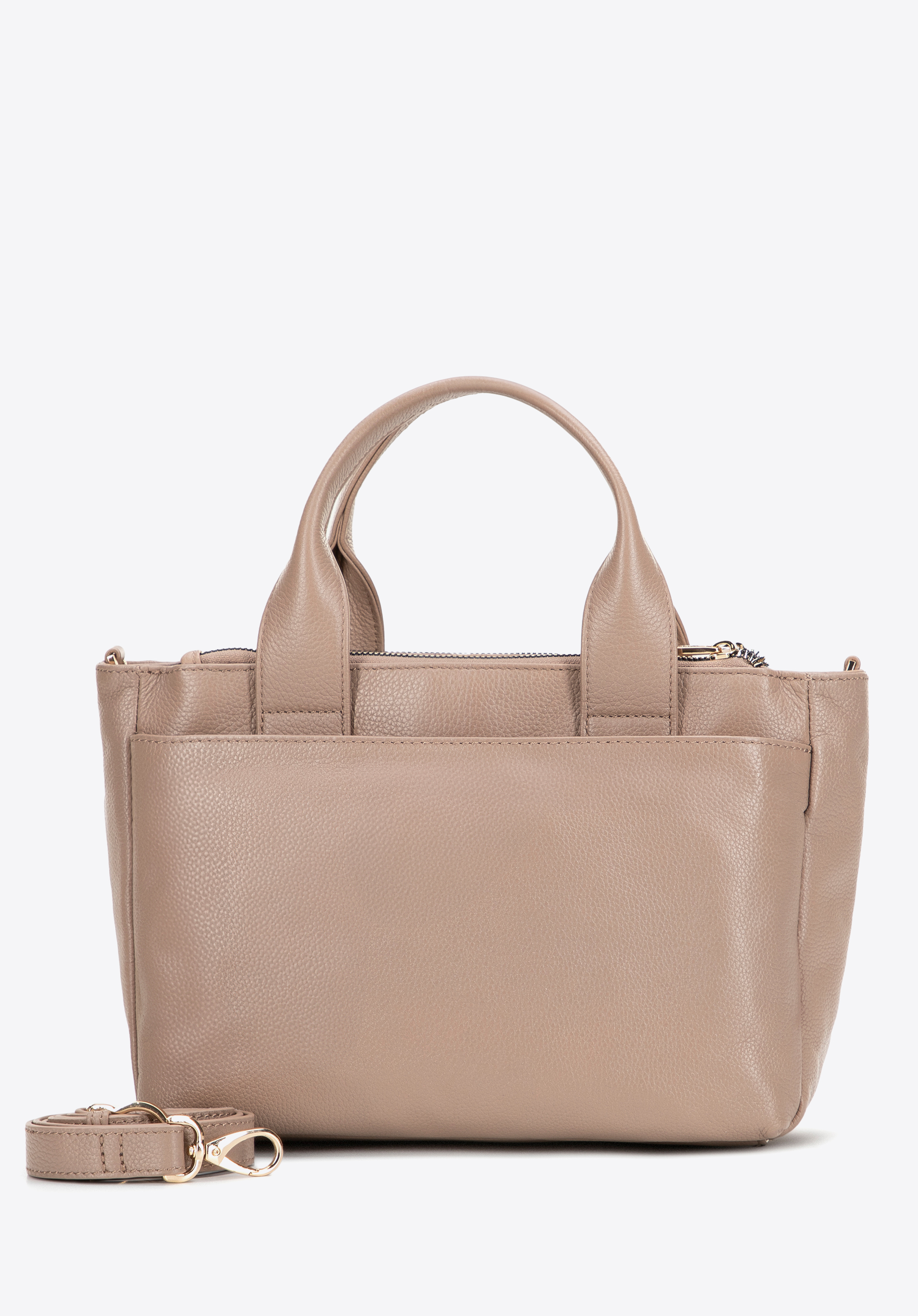 Wzbogać swoją garderobę o ponadczasowy dodatek, który doskonale łączy klasyczną elegancję z funkcjonalnością. Kuferek wykonany ze skóry naturalnej o groszkowej fakturze wyróżnia się solidnym wykonaniem i szykownym designem. Dzięki rączkom oraz odpinanemu, regulowanemu paskowi możesz nosić go tak, jak lubisz. Pojemna komora główna z trzema kieszeniami (w tym jedną na zamek) oraz cztery praktyczne kieszenie zewnętrzne zapewniają świetną organizację i szybki dostęp do najpotrzebniejszych drobiazgów.