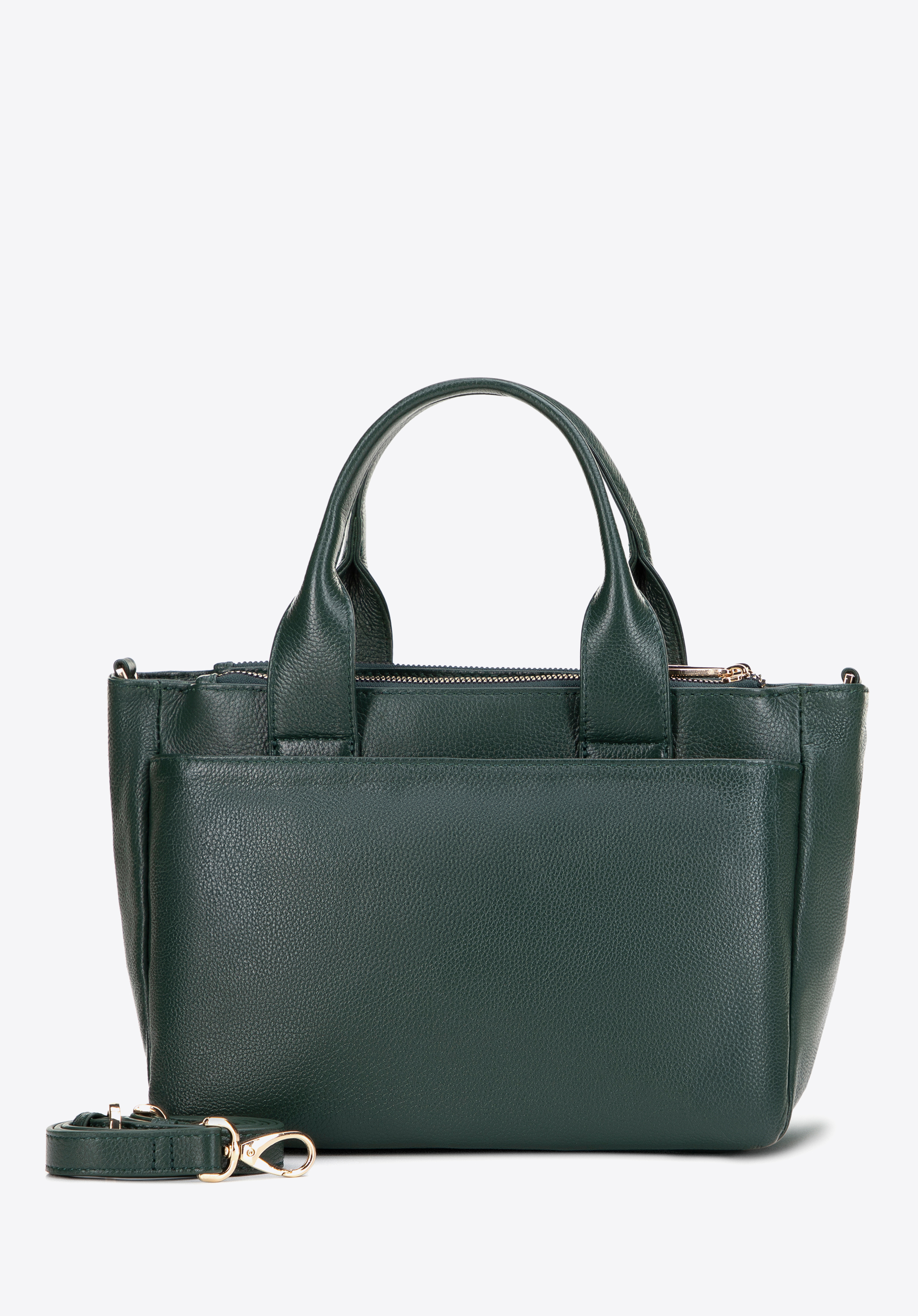 Wzbogać swoją garderobę o ponadczasowy dodatek, który doskonale łączy klasyczną elegancję z funkcjonalnością. Kuferek wykonany ze skóry naturalnej o groszkowej fakturze wyróżnia się solidnym wykonaniem i szykownym designem. Dzięki rączkom oraz odpinanemu, regulowanemu paskowi możesz nosić go tak, jak lubisz. Pojemna komora główna z trzema kieszeniami (w tym jedną na zamek) oraz cztery praktyczne kieszenie zewnętrzne zapewniają świetną organizację i szybki dostęp do najpotrzebniejszych drobiazgów.