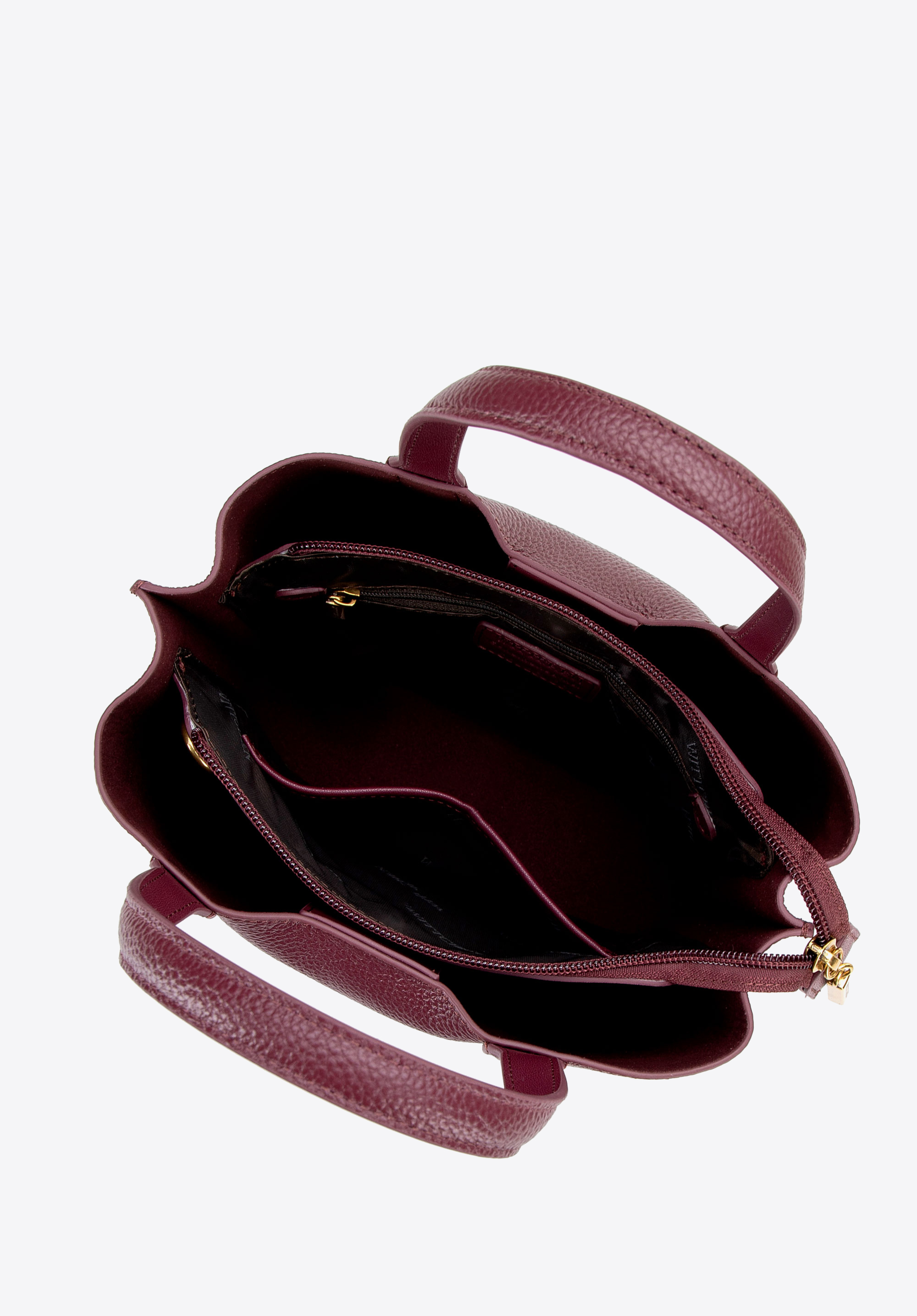 - Materiał: Naturalna skóra korpusu torebki zapewnia trwałość i elegancję, a pasek z mikrofibry imitującej skórę łączy lekkość z funkcjonalnością.
