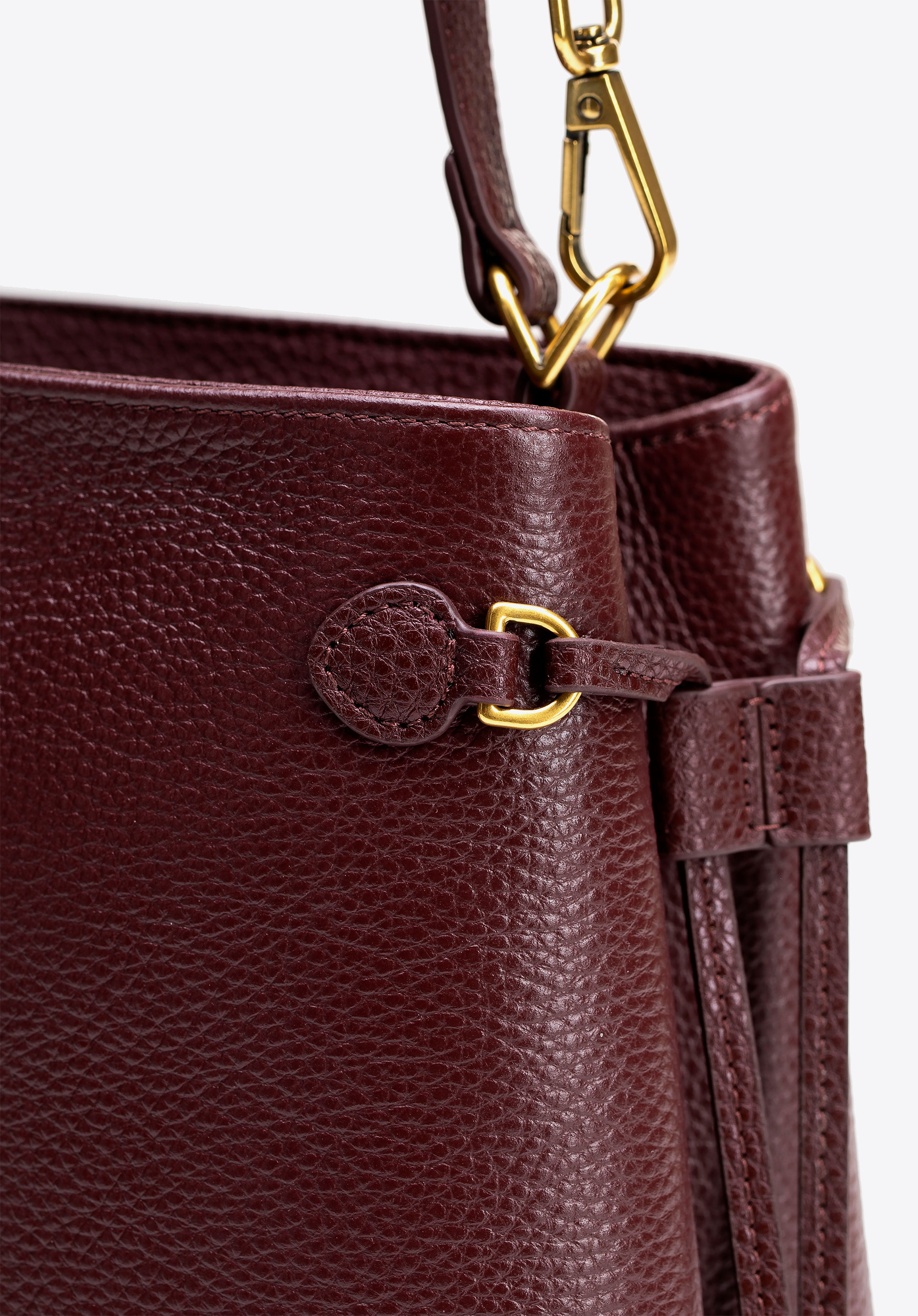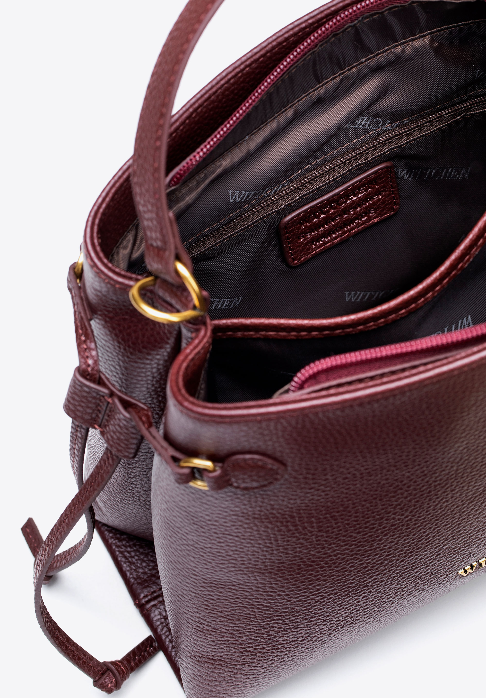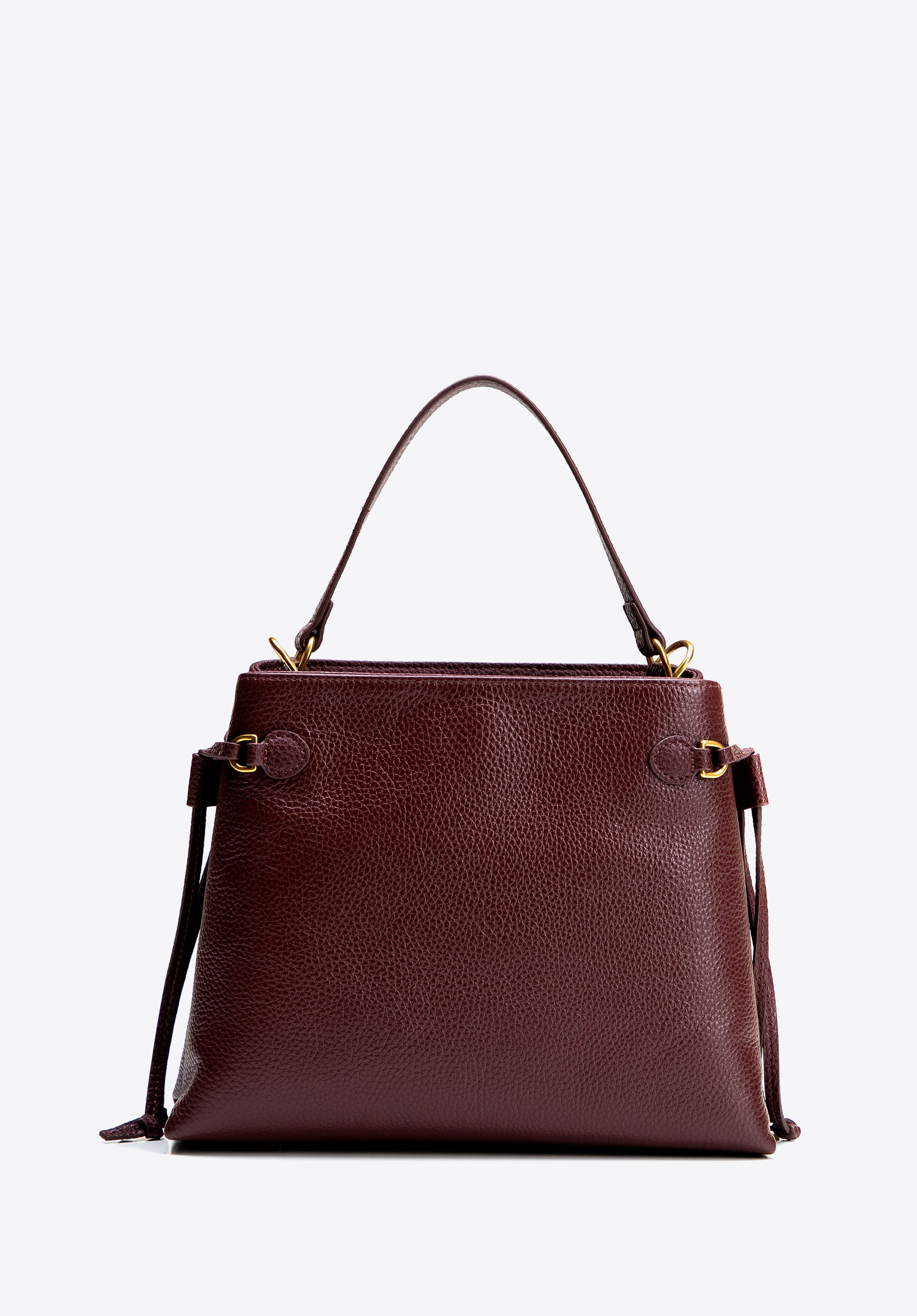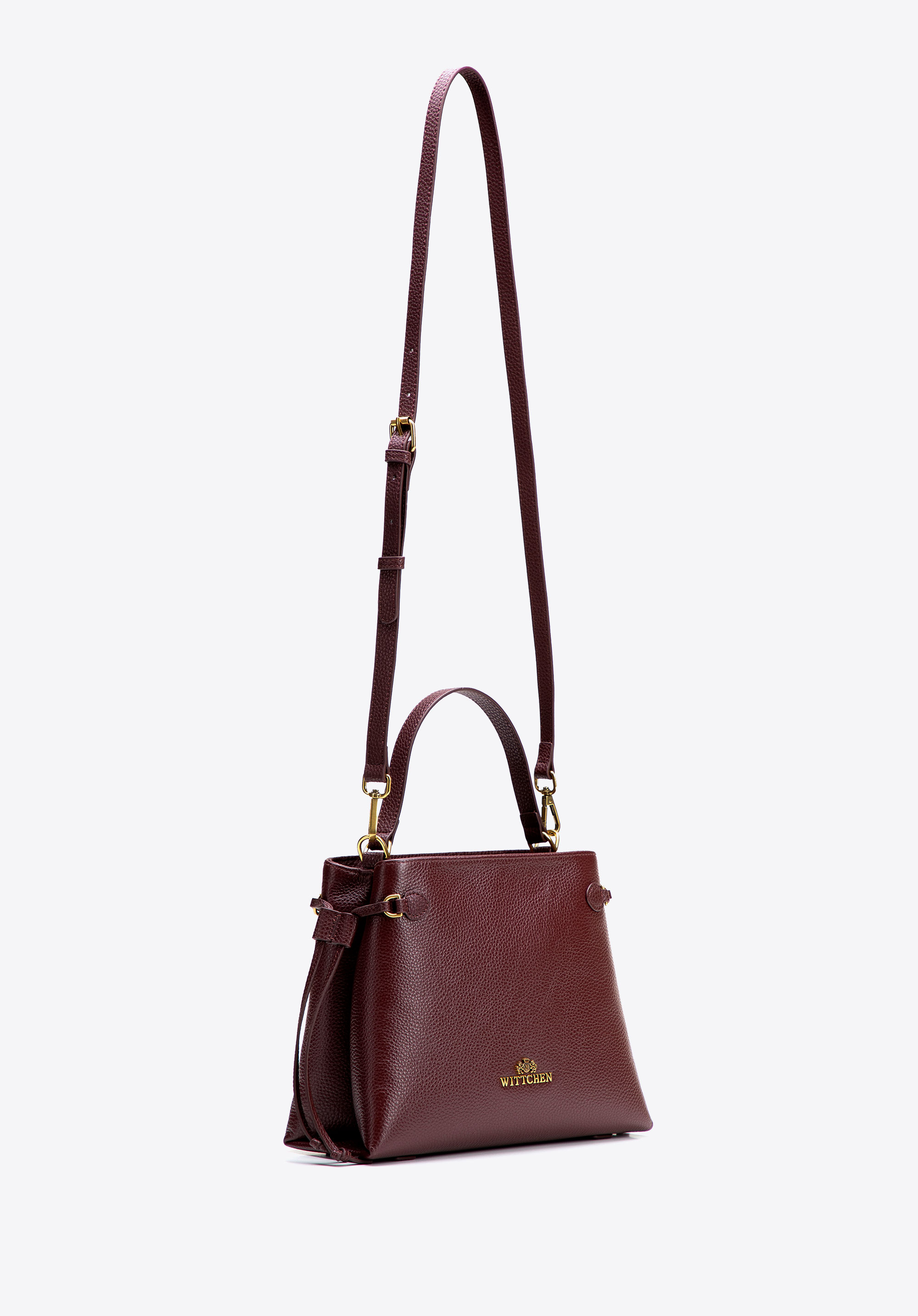 Damski kuferek ze skóry naturalnej z troczkami bordowy